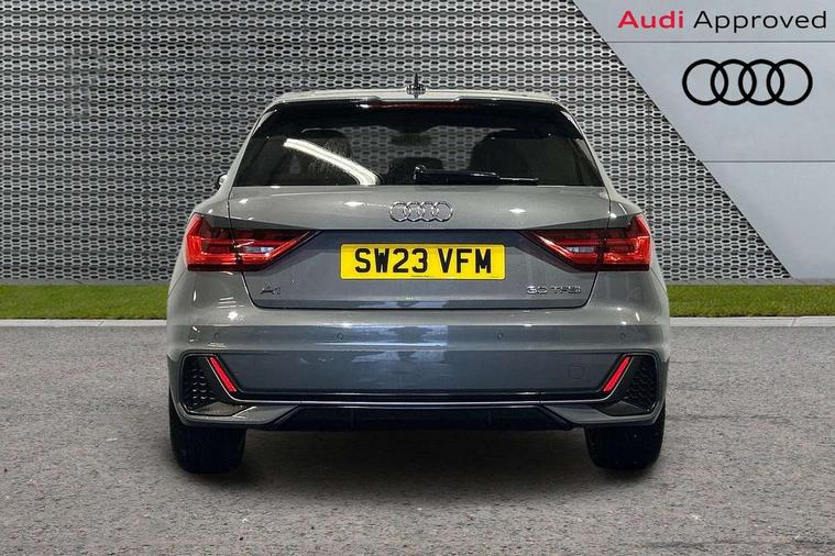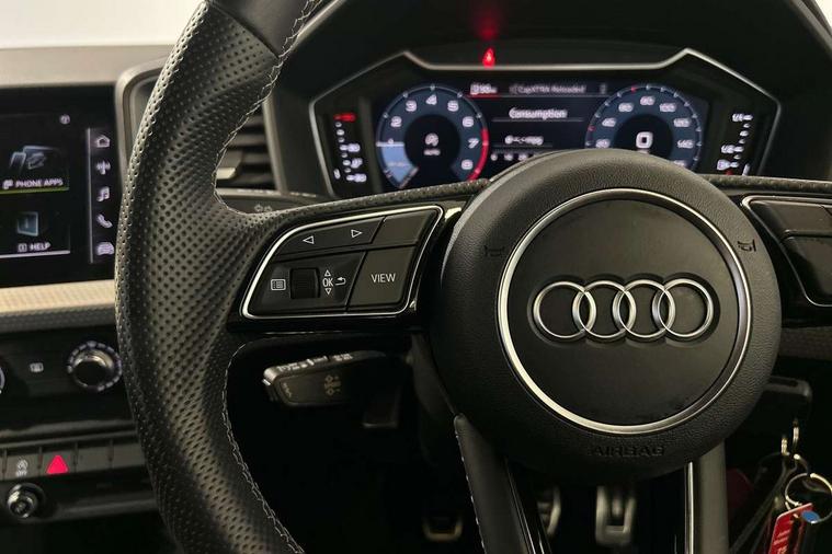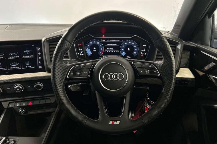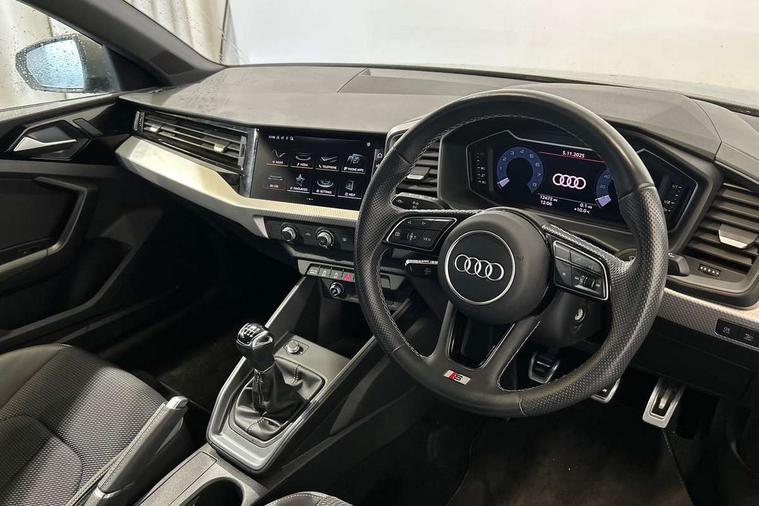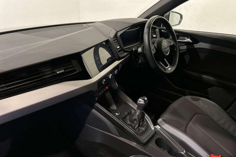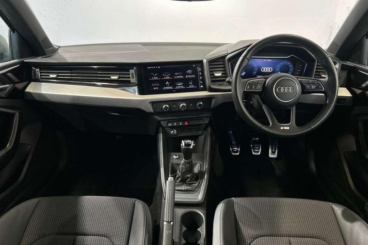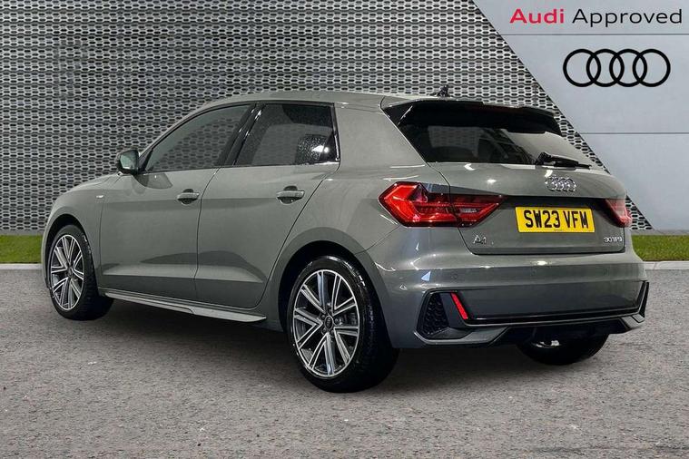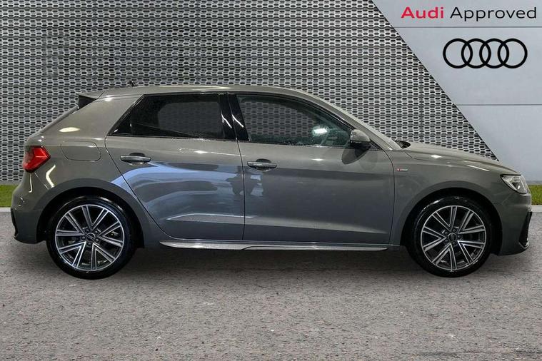 Audi drive select - power steering assistance + engine, Audi smartphone interface, Automatic start/stop system, Cruise control, Driver's information system, Electromechanical power steering, Emergency e-call, Lane departure warning system, Service interval indicator, Speed limiter, Voice control system, Washer fluid level indicator, Sports suspension, 2 x USB type C connection points, DAB Digital radio, Auto dimming rear view mirror, Body coloured door mirrors, Door sills with aluminium inlays and S Line logo, Electric front and rear windows, Electrically adjustable, heated, folding door mirrors with integrated LED side indicator, Front side air inlets in grained matt black and C frame in anthracite black, Heat insulating glass windscreen and side windows, Heated rear windscreen, High level LED brake light, LED headlights with LED rear lights + dynamic rear indicators + headlight adjustment and high beam, turning light + LED daytime running lights, Privacy glass, Radiator grille and rear diffuser in matt anthracite black, Radiator protective grille frame in matt aluminium silver, Rain and light sensors, Rear fog lights, Rear side wing doors, Rear wiper, S line badges on front wings, Side front spoiler lips in grained matt black, 12V socket in centre console with two cup holders, 3 rear seats with headrests, 3 seat bench in 2nd row, 3 spoke leather multi-function plus steering wheel features S badging and grips in perforated leather with contrast stitching, 40:60 Split folding rear seat or folded fully, Black cloth headlining, Driver and passenger seat with manual height adjust with forward and backwards adjustment, Front and rear black floor mats with contrast stitching in fine silver, Front head restraints, Front passenger seat, Height and reach adjustable steering wheel, ISOFIX child seat mounting for front passenger and outer rear seats including top tether attachment point of outer rear seats, Leather gear knob with aluminium trim, Leather handbrake grip, Luggage compartment light with front and rear reading lights, Manually adjustable lumbar support in front seats, Stainless steel pedals, LED interior lighting pack - A1, Luggage compartment pack - A1, S line exterior styling pack - A1 Sportback, Technology pro pack - A1, 3x3 point rear seatbelts, Audi pre-sense front with pedestrain and cyclist recognition, Brake assist function, Driver and front passenger airbag with front side and head airbags, Electronic Stability Control including ABS, EBD, ASR and EDL, Front passenger airbag deactivation switch, Hill hold assist, Manual rear child locks, Seatbelt height adjustment for front seats, Seatbelt monitoring, Tyre pressure warning light, Warning triangle and first aid kit, Anti theft alarm, Anti theft wheel bolts and loose wheel warning, Immobiliser, Aluminium trim for control switches, air vents and digital instrument cluster, Black dashboard, Silver grey inlays polygon structure in diamond paint finish, Structured grey accent areas including air vents, door handle recesses and centre console in quartz paint finish,
