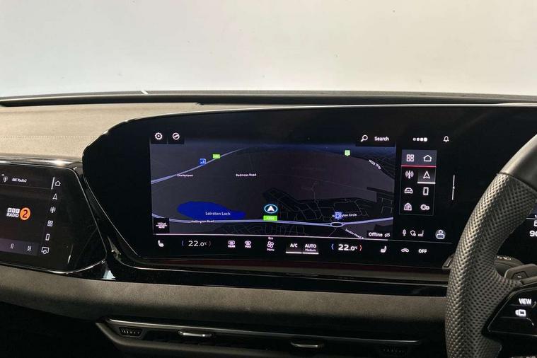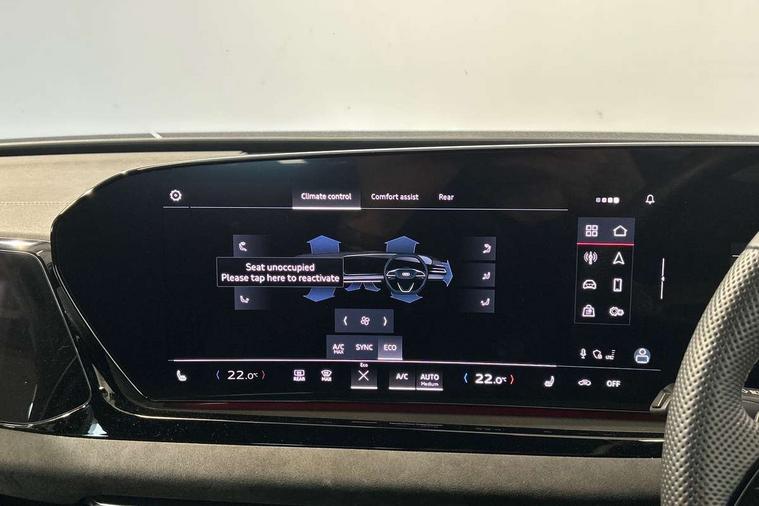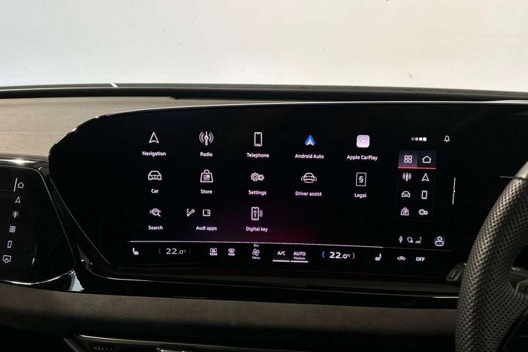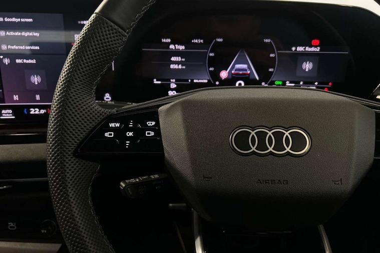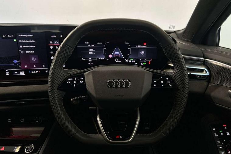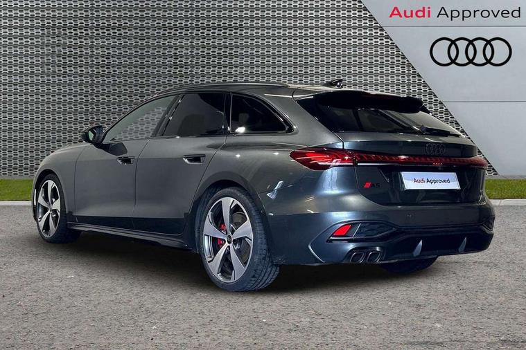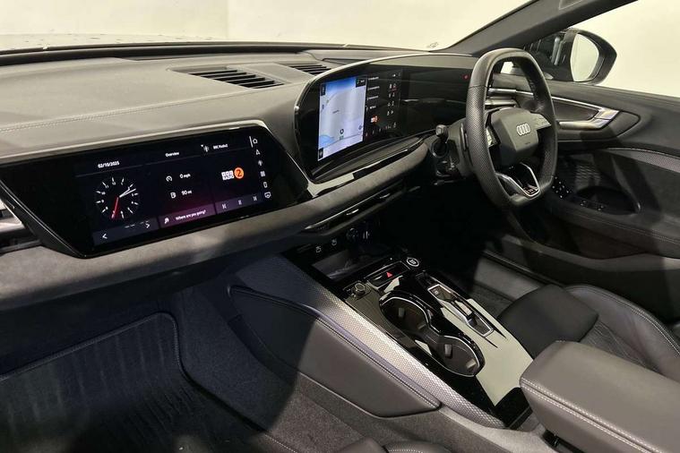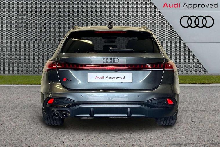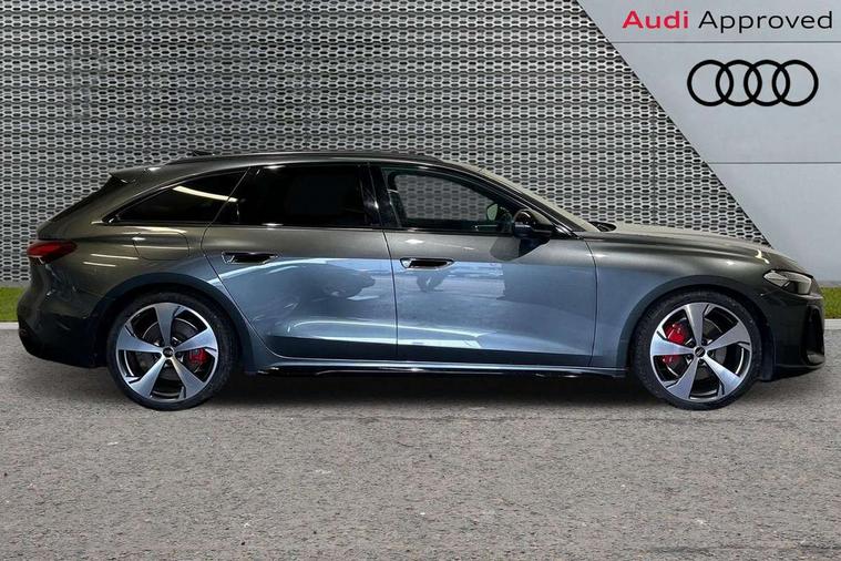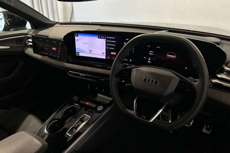 Adaptive cruise control, Advanced driver attention and fatigue montior, Audi application store, Audi assistant, Audi connect emergency call and service, Audi digital key, Audi drive select, Audi smartphone interface, Audi virtual cockpit plus with 11.9" OLED colour display, Automatic start/stop system with coasting functionality, Camera based traffic sign recognition, Intersection assist, Lane change assistant with exit warning system, rear cross traffic alert and rear turn assist, Lane departure warning with emergency assist, MMI 10.9" front passenger touch display, MMI navigation plus with high resolution 14.5" OLED touchscreen colour display, Park assist plus, Parking system plus with 360 display, Progressive steering with servotronic, Swerve assist and turn assist, Top view camera, Traffic sign based speed limiter, Sports suspension lowered by 20mm, 2 USB-C ports in both the front and rear, Audi sound system impressive sound with 10 loudspeakers including centre speaker and subwoofer, 6-channel amplifier with a total output of 180 watts, DAB digital radio reception, Smartphone compartment with wireless charging, Aluminium window trims, Auto dimming rear view mirror, Black door handles, Black roof rails, Dark chrome-plated tailpipe trims, Door mirrors - electrically adjustable, heated, folding and auto dimming on both sides, Front and rear electric windows, Front door sill trims with aluminium inlays, illuminated with 'S' logo, Headlight cleaning system, High beam assist, LED daytime running lights, LED rear lights pro incl. dynamic rear indicators and illuminated light strip with animated coming and leaving home function, LED third brake light, Matrix LED headlights with eight light signatures selectable via the MMI or the myAudi app, Privacy glass, Rear and side windows with heat insulating glass, Rear side wing doors, Rear wash/wipe, Red S line rhombus badging on rear, S line bumpers, radiator grille and diffuser in phantom black and diffuser insert in matt anthracite, White rhombus logo projection light in exterior mirrors, Windscreen with acoustic glazing, 3 rear headrests, 3 seat rear bench, 3 spoke leather steering wheel with multi-function buttons with touch control, flattened on top and bottom, with S badging and contrast stitching, 3-zone automatic climate control, 40:20:40 split folding rear seat bench with centre armrest and cup holders, Comfort front centre armrest, Electrically adjustable front seats, Front and rear floor mats, Front sport seats with integrated headrest and S embossed logo, Headlining in black cloth, Heated front seats, i-Size child seat mounting on the front passenger side and outer rear seats, i-Size and top tether on the outer rear seats, Luggage compartment lid, electrically opening and closing, Manual steering column height and depth adjustment, Memory function for driver seat, Single front passenger seat, Stainless steel pedals and footrest, Steering wheel grips in perforated leather and shift paddles, Ambient lighting package plus - A5, Black styling package plus - A5, 3x3 point rear seat belts, Acoustic vehicle alerting system, Convenience key with safelock, Driver airbag, Electric child safety locks, First aid kit with warning triangle and vests, Front emergency brake assist, Front passenger airbag, Front passenger airbag deactivation, Hill hold assist, Occupant detection in rear seat area, Proactive passenger protection system for front, sides and rear, Red brake calipers, Seat belt monitoring with rear seat occupant reminder, Side airbags in front and rear with head airbag system and front interaction airbag, Tyre pressure loss indicator, Anti theft alarm, Anti-theft wheel bolts, Keyless Go, Accent surfaces and control buttons in gloss black, Black dashboard with contrast stitching, Softwrap in Dinamica with contrast stitching, Upper and lower interior elements in dinamica microfiber, 20" 5 arm fold design Audi sport alloy wheels in silk matt grey and gloss turned finish, Tyre repair kit,