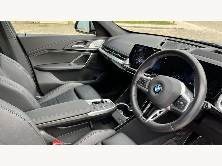 Active Guard + lane departure warning, speed limiting, front collision warning, Left turn warning with brake function and evasion assist, Attentiveness assist, Bluetooth / Wi-Fi interface with hands free system, BMW Intelligent Personal Assistant (natural voice control by voice command "Hey BMW"), BMW Online services, BMW Teleservices, Brake pad wear indicator, Drive off assistant, Electrically opening/closing tailgate with opening/closing with remote control and contactless opening and closing, Head up Display, Language version English, My Modes, Personal Profile - automatic lock when driving away selectable, Servotronic PAS, Tyre puncture warning system, Widescreen display, M Adaptive suspension, Performance Control, Steptronic transmission with double clutch and gear shift paddles, Stop/start function, xDrive intelligent four wheel drive system, DAB Digital radio, Tuner with diversity reception and RDS, AM radio and FM radio, Badge on engine compartment lid and tailgate, Body colour door mirrors, Body coloured bumpers, Contoured rear roof spoiler in vehicle colour with side aeroblades in black high-gloss, Dynamic brake lights, Electric adjustable heated door mirrors, Electric windows - front and rear, with open/close fingertip control, anti-trap facility and comfort closing, Folding door handles integrated flush with surface, Front and rear bumper panel with M specific design, in body colour with inserts in black high gloss, Front bumper panel with air inlet in matt black, Front door exit lights, Front entry sills aluminium inserts with M inscription, Heated rear window, High gloss shadow line roof rails, Invisible exhaust tailpipe, Key with M identification, LED 3rd brake light integrated in rear spoiler, LED number plate light, M specific radiator grille in satinated aluminium, Mirror caps painted in contrasting colour dark grey, Model inscription on right tailgate, Radiator grille struts in aluminium matt, Rain sensor including auto headlights activation, Rear bumper panel with two L-shaped trims In pearl chrome, Rear side wing doors, Rear wiper, Roof trim strips painted in body colour, Side sill covers with M specific design in body colour, Trailer stabilisation logic, Windscreen washer nozzle for rear view camera, Windscreen wipers with front and rear heated washer nozzles, 2 cup holders in front, 2 x 12 V (in luggage compartment and front centre console), 2 x USB Type C ports for charging and data transmission (front centre console) and 2 x USB Type C ports for charging (rear centre console), 3 rear headrests, 3 seat bench in 2nd row, 3 upper retaining strap clips integrated into rear panels of seat backrests, 40:20:40 split folding rear bench seat, Ambient interior lighting, Anthracite headlining, Anthracite Velour front and rear floormats, Bottle trays in all doors, Child seat ISOFIX attachment for two outer rear seats and front passenger seat with anchorage points, Clothes hook rear, Driver and front passenger heated seats, Dual zone automatic air conditioning, Front and rear door pockets, Front centre console storage compartment, Front sports seats, Front/rear adjustable head restraints, Glove compartment, M Sport nappa leather 3-spoke steering wheel, Manual steering column height and depth adjustment, Map pockets, Middle centre console storage compartment, Rear armrest in door trim panel, Single front passenger seat, Sliding rear seats - Mechanical fore and aft adjustment 130mm, Sport leather multifunction steering wheel with thumbrests and operation of instrument display, audio, telephone and driver assistance, Storage compartment with folding cover under centre console armrest cushion, Connected Package Professional - X1, Premier pro pack - X1, Technology plus pack - X1, ABS/EBD, Automatic hold function, Automatic Stability Control (ASC), Black belt painted in contrasting colour dark grey, BMW emergency call, Braking readiness, Cornering brake control (CBC), Crash Sensor - activates hazard/interior lighting + unlocks doors, Driver/Front Passenger airbags, Driver/front passenger side airbags, Dynamic stability control + (DSC+), Electromechanical parking brake, Energy recovery system, Front and rear brake discs, Front and rear head airbags, Front passenger airbag deactivation, Integrated brake system, PC iBrake PostCrash approach control warning with light braking function, Rear door child safety locks, Three point seat belt with belt buckle pre loading and belt force limiter, Three point seat belts in all seats, Tyre pressure monitor, Warning triangle and first aid kit, Alarm system with interruption of battery voltage, acoustic alarm, activation of hazard warning lights, Closing system with central locking including 2 vehicle keys with integrated emergency key, Immobiliser, Locking wheel bolts, Luxury instrument panel, Tyre repair kit (including Tyre sealant and 12V Compressor),