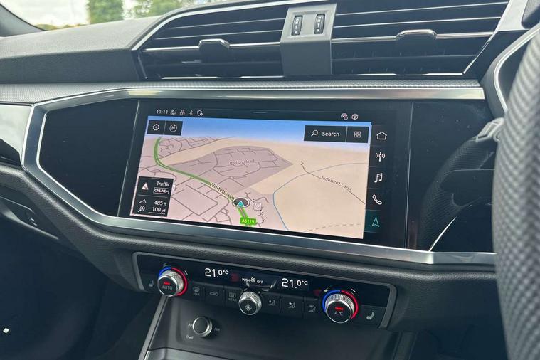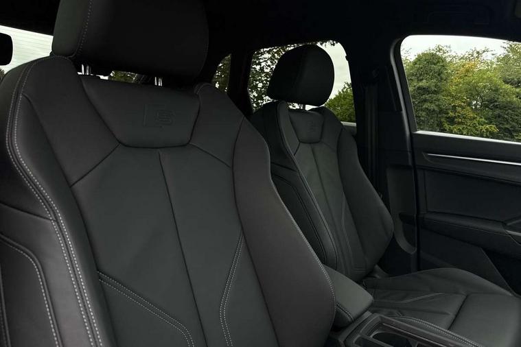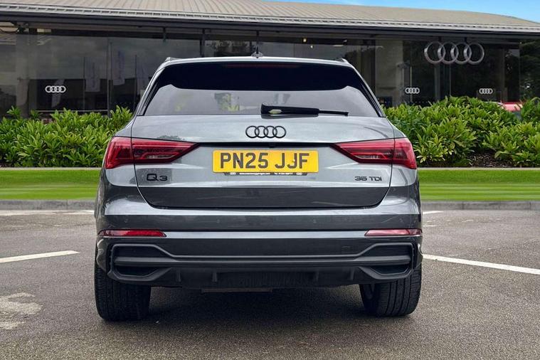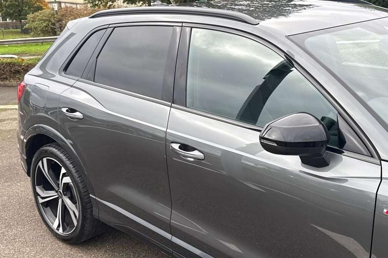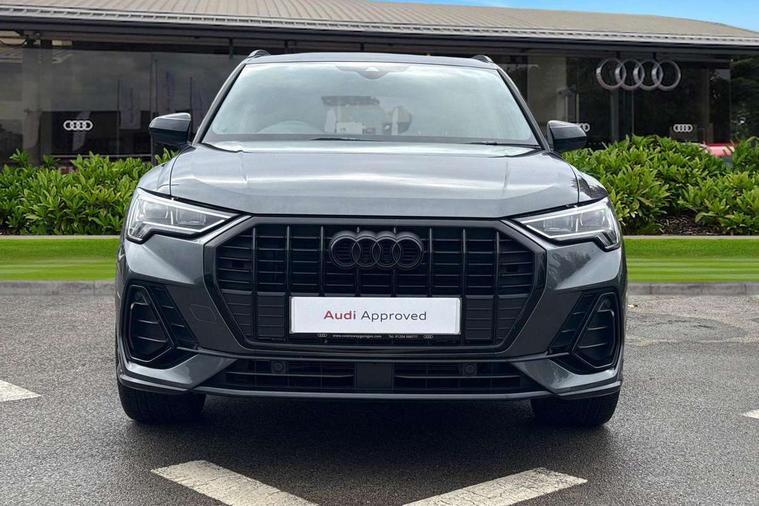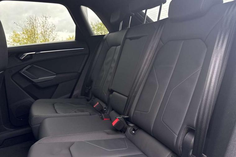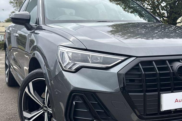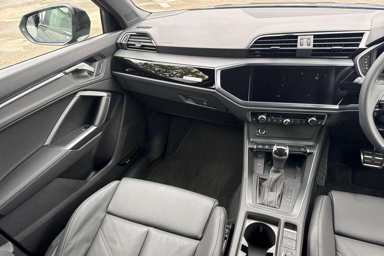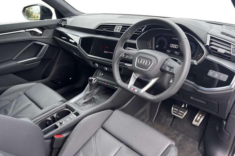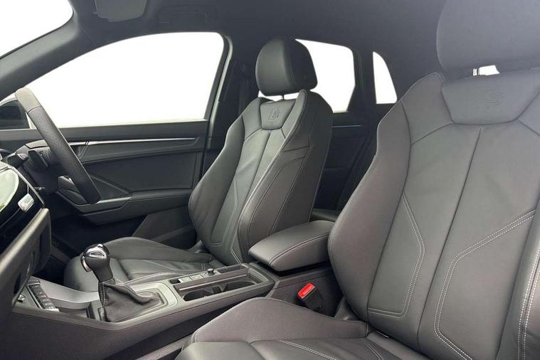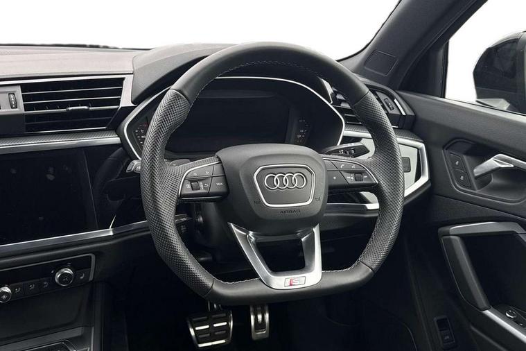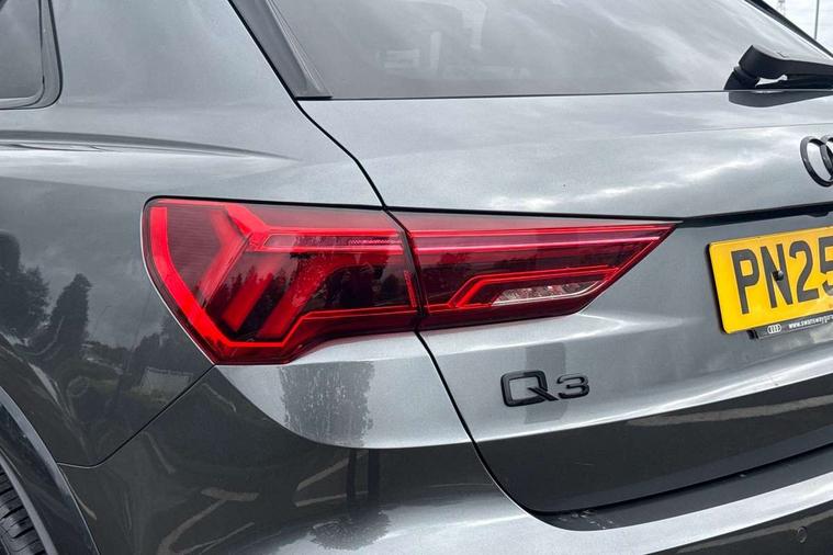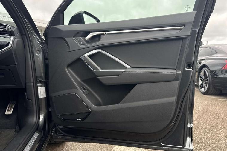 Amazon alexa Integration, Audi connect safety and service, Audi drive select, Audi lane departure warning, Audi Virtual Cockpit - 10.25" display, Bluetooth interface, Camera based traffic sign recognition, Distraction and Fatigue warning, Legal emergency call, MMI Navigation Plus with high resolution 10.1 inch touchscreen colour display, Power operated tailgate, Progressive steering, Service interval indicator, Smartphone interface includes wireless Apple carplay/Android Auto, Start stop system with recuperation, Voice control system with natural language interaction, Diesel particulate filter, Sports suspension, 2 USB-C ports with charge and data functions, 6 passive loudspeakers, DAB digital radio module, Acoustic windscreen, Audi Beam uses LEDs to project the Audi logo onto the ground as you exit your Q3, Auto dimming door mirrors, Auto dimming frameless rear view mirror, Black roof rails, Electrically folding, adjustable and heated door mirrors with integrated LED side indicators and kerb view function for passenger side, Front and rear electric windows, Front fog lights, Grille vertical bars in aluminium silver/Matt, High gloss black finish B and C pillars, LED Dynamic rear indicators, LED headlights with LED daytime running lights, LED rear lights, LED third brake light, Privacy glass dark tinted rear and rear-side windows (from B-pillar backwards), Rain and light sensors, Rear diffuser grille in grained matt black, Rear diffuser strip in matt anthracite black, Rear side wing doors, Rear wiper, S line bumpers in contrasting Manhattan grey, Variable front intermittent wipers, 12V socket in rear centre console, 3 seat bench in 2nd row, 40:20:40 folding with manual adjustment for 60:40 forwards/backwards position and backrest angle, Adjustable rear seat bench/backrest with centre armrest and cupholder, Black cloth headlining, Dual zone electronic climate control, Electric lumbar support, Front and rear black floor mats with contrast stitching in rock grey, Front and rear headrests, Front centre armrest, Height and reach adjustable steering wheel, Illuminated door sill trims with S logo, ISOFIX child seat mounting for front passenger with airbag deactivation and outer rear seat including top tether attachment point for outer rear seats, Manual front seats with height adjustment, Perforated leather gearknob, Single front passenger seat, Stainless steel luggage compartment sill finisher, Stainless steel pedals, Twin leather upholstery with front sport seats + S embossing, Black styling pack - Q3, Non smoking pack - Q3, 3x3 point rear seatbelts, 6 airbags - Driver, front passenger, curtain and side windows, Audi pre-sense front with pedestrain and cyclist recognition, Electrically operated child locks on rear doors, Electromechanical parking brake, Electronic stabilisation control including ABS, ASR and EDL, Front seatbelt reminder, Hill descent control, Hill hold assist, Pre sense basic, Seatbelt monitoring, Tyre pressure warning, Warning triangle and first aid kit, Anti theft wheel bolts, Immobiliser, Remote central locking, Thatcham approved category 1 anti theft alarm, Aluminium look interior elements, Detail dashboard around MMI touch colour display in glass look, black with surround in aluminium look, Leatherette door armrest, Piano black inlay,