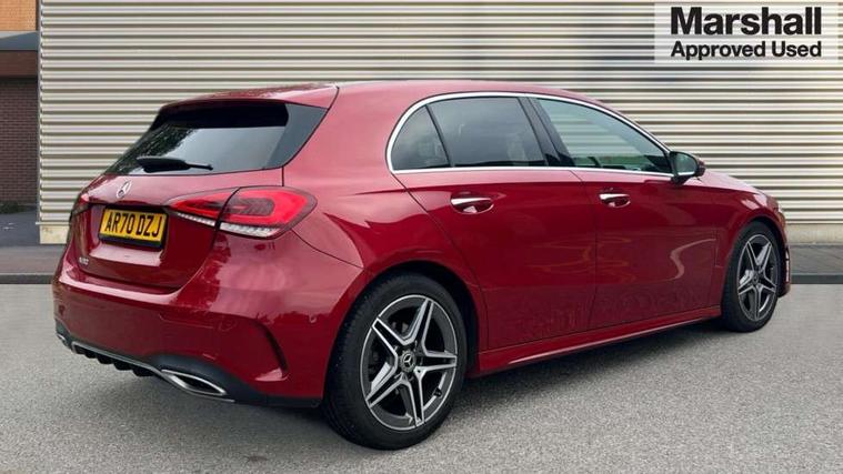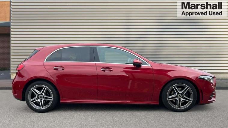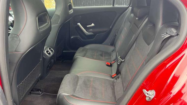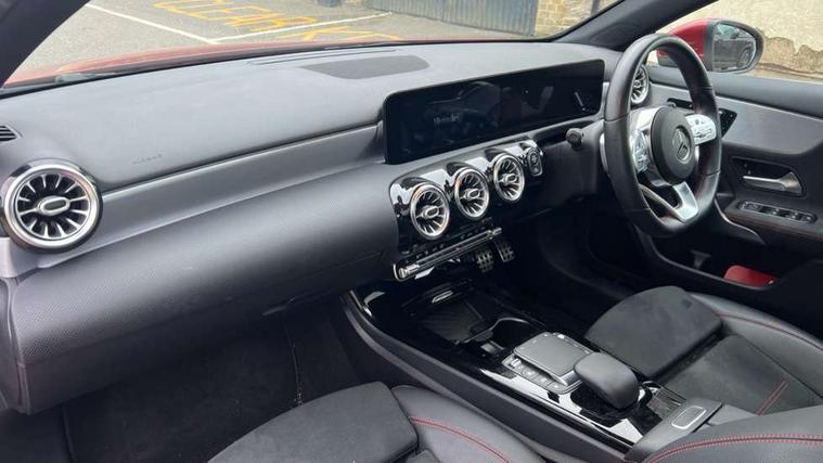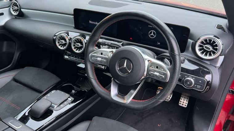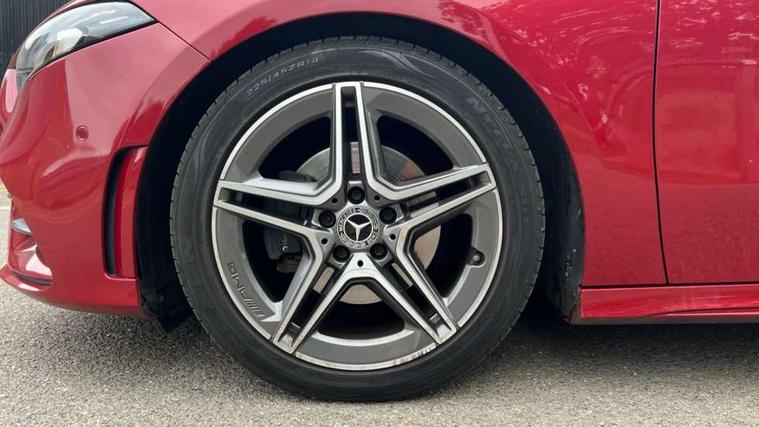 10.25" Digital instrument cluster display screen, 10.25" media display, 180 degree rear view camera with parking guidelines, Active parking assist with visual and audible warning of detected obstacles, Attention assist, Brake pad wear indicator warning light, Car wash mode, Direct steering, Dual bluetooth interfaces, DYNAMIC SELECT with a choice of driving modes (ECO, Comfort, Sport and Individual), ECO start/stop function, Fluid level warning indicator for fuel, oil, coolant and washer fluid, Hard-disk navigation, Hey Mercedes Voice activation, Lamp failure indicator, MBUX augmented reality for navigation, Mercedes me connect including emergency call system, accident recovery, breakdown and maintenance management, Mercedes me remote services, Outside temperature gauge, Owners manual in English, Pre-installation for private car sharing, Preinstallation for Mercedes Benz link, Service indicator (ASSYST), Smartphone integration with Apple CarPlay and Android auto, Traffic sign assist, Trip computer, Ultrasonic sensors positioned in the front and rear bumpers, Wireless charging, Lowered comfort suspension, Rear axle torsion beam, 10 speakers, 2 USB ports (type C) in rear stowage compartment and one in front of center console, DAB Digital radio, MBUX multimedia system with DAB digital radio and touchpad including satellite navigation, Mercedes-Benz advanced sound system - 225W, 4 Electric Front and Rear windows, Adaptive brake lights, AMG bodystyling - Front apron with splitter in chrome, rear apron with chrome trim and chrome visible trim elements in tailpipe, Black weather strip, Body colour bumpers, Body colour door handles, Body colour side skirt, Body coloured door mirrors, Chrome beltline trim, Diamond radiator grille with chrome pins and silver louvre + chrome insert, Electric adjustable and heated door mirrors with integrated LED side indicators, Exhaust system - Twin visible tailpipes in polished stainless steel, Headlamp assist automatic headlamp activation, Heated glass rear windscreen + timer control, LED high performance headlamps with integrated LED daytime running lights, LED tail lamp, LED third brake light, Multibeam LED with adaptive highbeam assist plus, Panoramic sliding sunroof, Privacy glass, Radio aerial, Rain sensing windscreen wipers with two sensitivity settings, Rear fog lights, Rear wiper, Window line trim strip in chrome, 3 Spoke flat bottom leather multi function steering wheel with perforated leather in grip area, 40:20:40 split folding rear seats, Artico man-made leather/Microfibre Dinamica upholstery with red contrast stitching, Auto Mercedes-Benz child seat recognition sensor, Black air vents with surround in silver chrome, Black roof lining, Brushed stainless steel sports pedals with rubber studs, Controller on centre console with chrome surround, Electrically adjustable front memory seats including lumbar support, Floor mats with stitched edging and AMG lettering, Front centre armrest with storage compartment, Front seat backs luggage nets, Front seat cushion length adjustment, Galvanished gear shift paddles on steering wheel, Heated front seats, Height/reach adjustable steering column, Illuminated front door sills with changeable cover, Interior lighting - 64 colour Ambient lighting, Interior mirror with reading lamps in black and frameless, Rear armrest with 2 cupholders, Rear head restraints, Seat occupancy sensor for front passenger seat, Sports seats with integrated headrests, Stowage compartment in centre console with retractable cover, Sunvisors with illuminated vanity mirrors, Touchpad on center console, Twin front cupholders, Two zone thermotronic luxury automatic climate control, Light and sight pack - A Class, Mirror package - A Class, Seat comfort pack - A Class, 3 rear 3 point seatbelts, ABS with Brake Assist, Active bonnet, Adaptive brake assist with hold function and hill start assist, Black seatbelts, Childproof locks manually operated for rear doors and electrically operated for rear power windows, Crash responsive emergency lighting, Driver and passenger head and side airbags, Drivers knee airbag, Dual stage driver/passenger airbags, Electronic parking brake, ESP curve dynamic assist, ESP with ASR, Front and rear seatbelt reminder, Front brake callipers with Mercedes Benz lettering, ISOFIX and top tether child seat fixing points in two outer rear seats, Tyre pressure monitoring system, Warning triangle and first aid kit, Window airbags, Alarm system/interior protection/immobiliser, Keyless entry lock/unlock, Keyless Go, Remote central locking and crash sensor with emergency opening function, Urban guard vehicle protection system with immobiliser and interior protection, Light aluminium with longitudinal grain interior trim, 18" AMG 5 twin spoke light alloy wheels in titanium grey with highsheen finish, Summer tyres, Tirefit sealant kit,