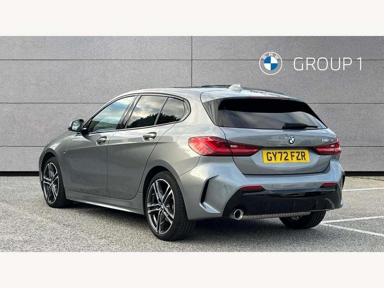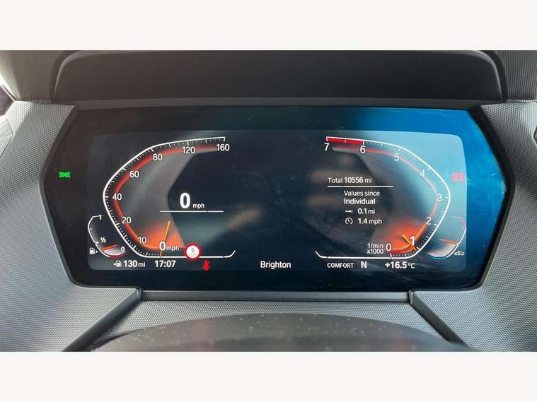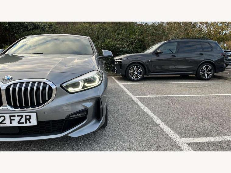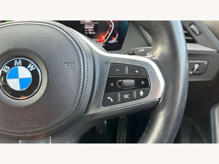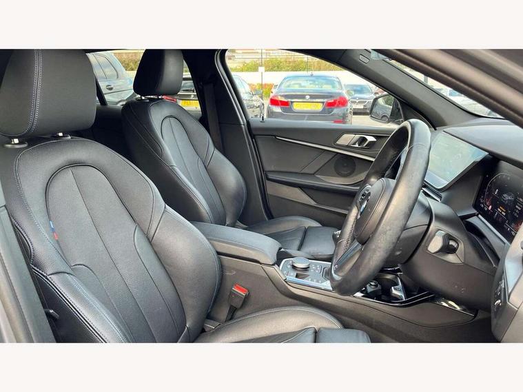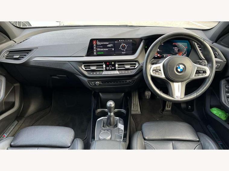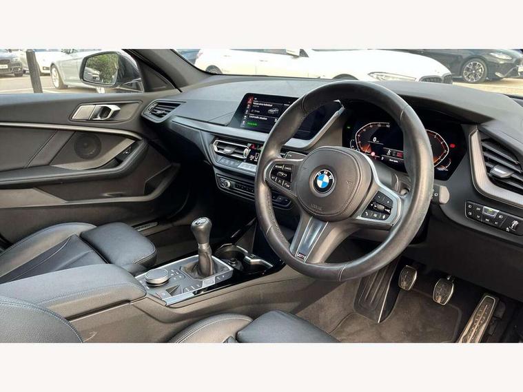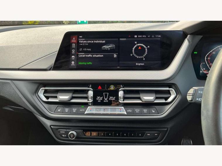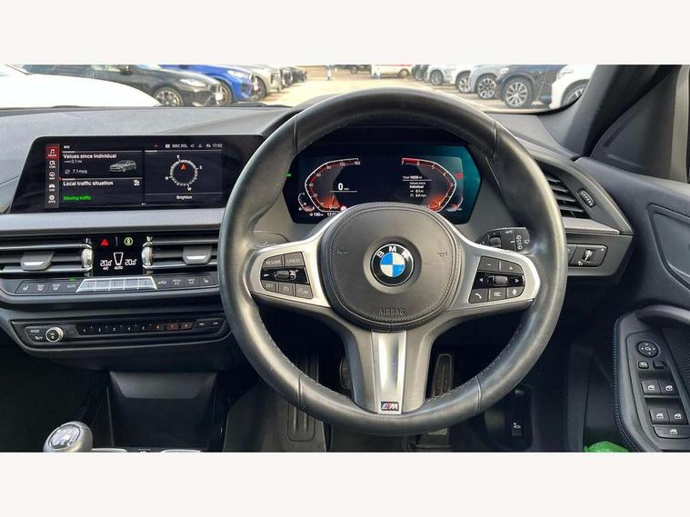 Active guard plus, Attentiveness assist, BMW ConnectedDrive online services, BMW Teleservices, Check Control warning system for monitoring of lights and door/luggage compartment open warning, Cruise control with brake assist, Eco pro mode, Front axle single joint with specific axle kinematics to minimise drive influences on steering + provide increased rigidity agile driving behaviour, Integrated owners handbook, Lane departure warning system, Oil sensor for level and grade, On board computer, Optimum shift indicator, Personal Profile, Pull away assistant, Rigidly mounted rear subframe - Multi link construction with separate spring / damper configuration and excellent driving characteristics, Speed limit Info including no-overtaking indicator, Speed limiter, Aluminium lightweight construction, Anti roll bar front and rear, Balancer shaft, Double VANOS twin scroll turbocharging system, Drive Performance Control, Electronic differential lock, High precision injection, M sport suspension, Petrol Particulate Filter, Twin tube gas filled shock absorbers with degressive characteristic curve, VALVETRONIC engine management, DAB Digital radio, Auto dimming rear view mirror, Automatic headlight beam throw control, Automatic windscreen wipers and automatic headlight, Body colour door handles, Body colour mirror caps, Body colour roof trims, Chrome 'M' logo side designation, Chrome exhaust twin tailpipes round 90mm in left, Chrome kidney grille frame with Satin Aluminium struts, Direction indicator side lights in exterior mirrors, Fading support, Folding side mirrors with auto dimming/folding wing mirrors with auto dimming, Follow me home headlights, Front and rear bumper system with replaceable deformation elements, Front and rear electric windows with open and close fingertip control, anti trap facility and comfort closing, Front door sill finishers in black plastic with M designation in metallic look, Green tinted heat protection glazing, Heated, electrically adjustable exterior mirror aspheric on driver side, convex on passenger side, High gloss shadowline window frame, Recess cover mirror frames and B/C pillar embelisher trim, High level third brake light, Integrated front windscreen with washer jets, LED daytime running lights, LED eyebrow turn indicators, LED front fog lights, LED Headlights, Lightweight engineering, Matt black air guide grilles, Matt black wheel arch trim, Model designation on electric bootlid, Nearside reverse light in rear light cluster, Preparation for high beam assistant, Rear fog lights, Rear side wing doors, Rear window wiper, Shark fin antenna, Trailer stabilisation logic, Visible VIN plate, Welcome lighting, 12V power socket in front centre console with blanking plug, 3 rear seat head restraints, 3 seat bench in 2nd row, 3 spoke sports leather steering wheel in black leather with black stitching and decorative finisher in pearl chrome, specific M badge + leather knob, Anthracite headlining, Black boot net with lashing eyes, Cargo function on 2nd seat row, Child seat ISOFIX attachment for two outer rear seats and front passenger seat with anchorage points, Conditioned based service, Driver and front passenger seat heating, Folding rear clothes hook, Four grab handles integrated in roof lining, Front and rear door pockets with bottle holders, Front and rear side armrest integrated into door trim, Front armrest, Front sports seats, Gearshift lever with M designation, Glove compartment, Height adjustable front head restraints, Luggage compartment for bag hooks on left and right, foldable luggage compartment liner and four lashing eyelets, Manual adjust steering wheel, Multi-function controls for steering wheel, Single front passenger seat, Storage compartment in centre console, Sun visors with vanity mirrors and insert tab, Two front centre console cupholders, Two zone automatic air conditioning, Velour floor mats, Additional interior lighting pack - 1 Series, BMW live cockpit professional pack- 1 Series, Connected pack professional - 1 Series, Interior lights pack - 1 Series, M Sport exterior styling aerodynamics pack - 1 Series, 2 tone horn, 3 point seatbelts on all seats, front pyrotechnic belt tensioners, stopper and belt force limiters, rear coded belt buckles, Airbags - Front driver/passenger, front and rear curtain head protection, front side, manual deactivation of front passenger airbag, Anti lock braking system (ABS) with brake assist, BMW emergency call, Brake drying, Braking readiness, Child proof locking system in rear door, City braking function, Comfort modes, Cornering brake control, Crash sensor activating central locking release, hazard warning lights, fuel cut off, interior lighting + activation of safety battery terminal clamp, Driver and front passenger seat belt security check, Dynamic stability control + (DSC+), Dynamic Traction Control - DTC, Electrically operated hand brake, Front and rear disc brakes, Seatbelt warning, Side impact protection, Tyre pressure monitoring system, Warning triangle and first aid kit, Central locking switch for all doors, fuel filler cap and luggage compartment, Deadlocking function system to all doors, Drive away locking system on all doors and luggage compartment with de-activated in iDrive settings, Locking wheel bolts, Remote control with integrated key with High-gloss Black inlay and M designation and 1 button for open/ close lock, window, open luggage compartment, Start/stop button illuminated in centre console with keyless engine start and auto start stop deactivation button, Thatcham Cat.1 alarm and immobiliser, Wheel slip limitation close to the actuator (ARB), Contrast stitching on instrument panel, Electrically powered 12V compressor, Reduced rolling resistance tyres,