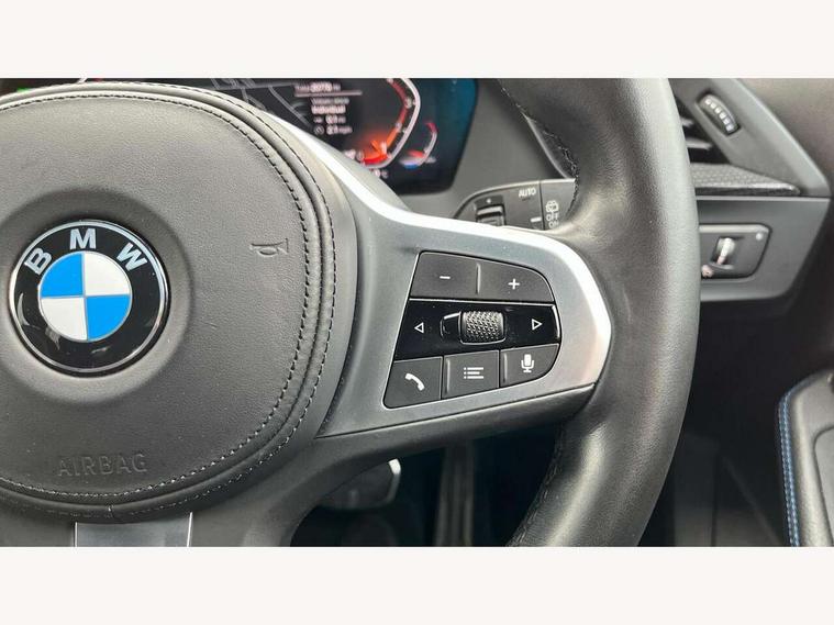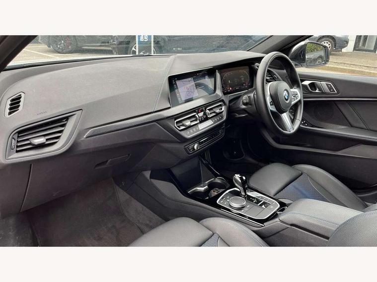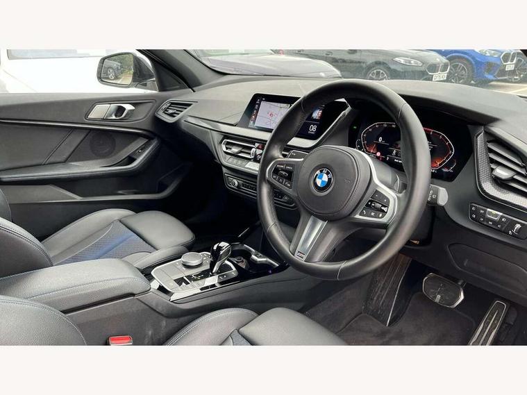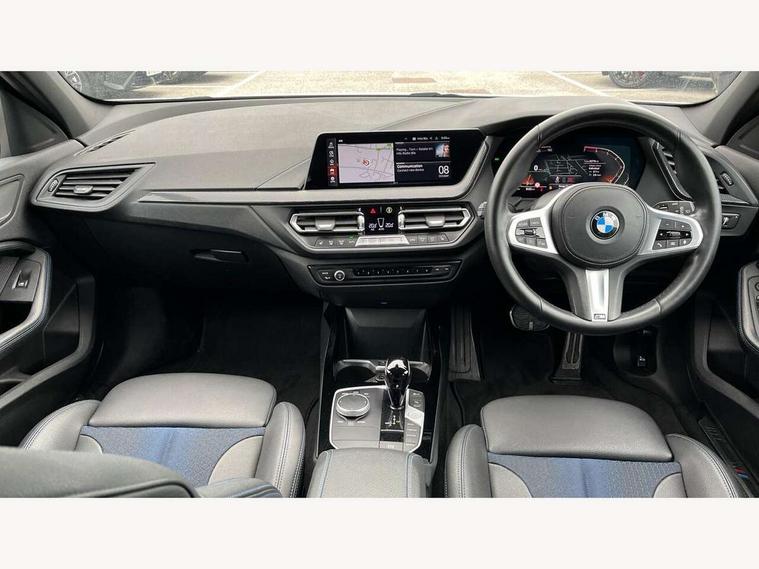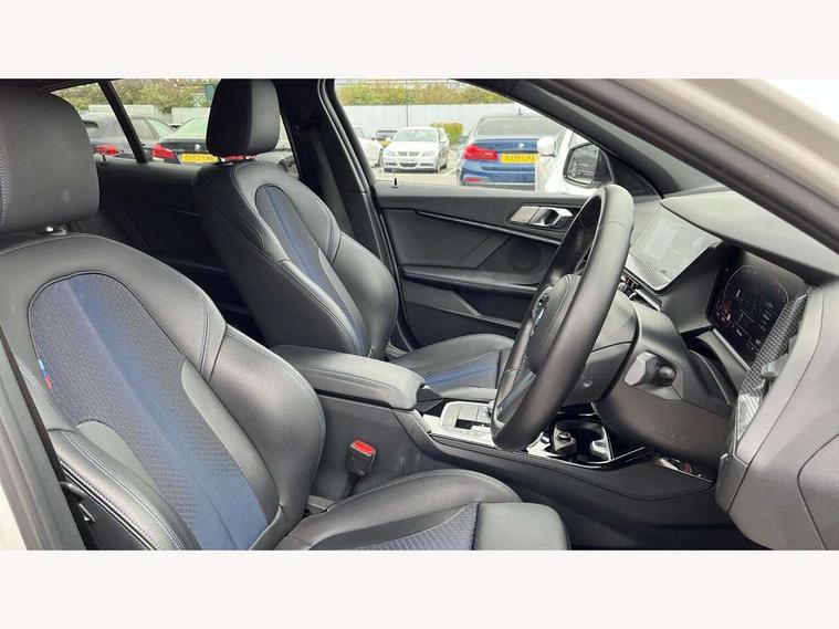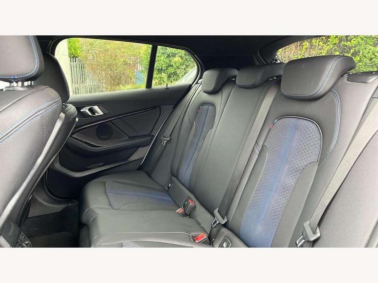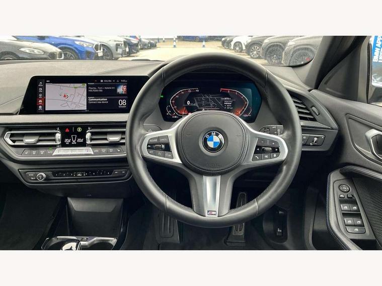 Active guard plus, Attentiveness assist, BMW Online services, BMW Teleservices, Check Control warning system for monitoring of lights and door/luggage compartment open warning, Connected eDrive Services, Eco pro mode, Integrated owners handbook, Oil sensor for level and grade, On board computer, Optimum shift indicator, Personal Profile, Pull away assistant, Speed limiter, Aluminium lightweight construction, Anti roll bar front and rear, Balancer shaft, Double VANOS, Drive Performance Control, Electronic differential lock, High precision injection, M sport suspension, Petrol Particulate Filter, VALVETRONIC engine management, Bluetooth audio streaming, DAB Digital radio, Auto dimming rear view mirror, Automatic headlight beam throw control, Automatic windscreen wipers and automatic headlight, Body colour door handles, Body colour mirror caps, Chrome 'M' logo side designation, Chrome exhaust tailpipe in single, round (Exhaust tailpipe, stainless steel - single, round), Chrome kidney grille frame with Satin Aluminium struts, Direction indicator side lights in exterior mirrors, Electric folding and anti dazzle exterior mirrors, Fading support, Follow me home headlights, Front and rear bumper system with replaceable deformation elements, Front and rear electric windows with open and close fingertip control, anti trap facility and comfort closing, Front door sill finishers in black plastic with M designation in metallic look, Green tinted heat protection glazing, Heated, electrically adjustable exterior mirror aspheric on driver side, convex on passenger side, High gloss shadowline window frame, Recess cover mirror frames and B/C pillar embelisher trim, High level third brake light, LED daytime running lights, LED eyebrow turn indicators, LED front fog lights, Lightweight engineering, Matt black air guide grilles, Model designation on right side of tailgate, Nearside reverse light in rear light cluster, Preparation for high beam assistant, Rain sensor including auto headlights activation, Rear fog lights, Rear window wiper, Shark fin antenna, Visible VIN plate, Welcome lighting, 12V power socket in centre console, 3 rear seat head restraints, 3 spoke M sports design leather steering wheel finished in nappa leather with specific M badge, Anthracite headlining, Anthracite Velour floor mats, Child seat ISOFIX attachment for two outer rear seats and front passenger seat with anchorage points, Conditioned based service, Dakota leather upholstery with perforation and contrast stitching, Driver and front passenger seat heating, Folding rear clothes hook, Four grab handles integrated in roof lining, Front and rear door pockets, Front and rear door pockets with bottle holders, Front and rear side armrest integrated into door trim, Front armrest foldable with integrated storage compartment, Front sports seats with electric side bolster adjustment, Glove compartment, Height adjustable front head restraints, Manual adjust steering wheel, Multi-function controls for steering wheel, Storage compartment in centre console, Sun visors with vanity mirrors and insert tab, Two zone automatic air conditioning, Additional interior lighting pack - 1 Series, Connected pack professional - 1 Series, Extended storage pack - 1 Series, Interior lights pack - 1 Series, Luggage compartment pack - 1 Series, M Sport exterior styling aerodynamics pack - 1 Series, 2 tone horn, 3 point seatbelts on all seats, front pyrotechnic belt tensioners, stopper and belt force limiters, rear coded belt buckles, Airbags - front driver/passenger, front & rear curtain, front side, Anti lock braking system (ABS) with brake assist, BMW emergency call, Brake drying, Braking readiness, Crash sensor activating central locking release, hazard warning lights, fuel cut off, interior lighting + activation of safety battery terminal clamp, Driver and front passenger seat belt security check, Dynamic stability control + (DSC+), Dynamic Traction Control - DTC, Electrically operated hand brake, Front and rear disc brakes, Front passenger manual airbag deactivation, Seatbelt warning, Side impact protection, Tyre pressure monitoring system, Warning triangle and first aid kit, Automatic drive away locking facility, Central locking switch for all doors, fuel filler cap and luggage compartment, Deadlocking function system to all doors, Locking wheel bolts, Remote control with integrated key with High-gloss Black inlay and M designation and 1 button for open/ close lock, window, open luggage compartment, Start/stop button with comfort go keyless engine start and auto start stop deactivation button, Thatcham Cat.1 alarm and immobiliser, Contrast stitching on instrument panel, Reduced rolling resistance tyres,