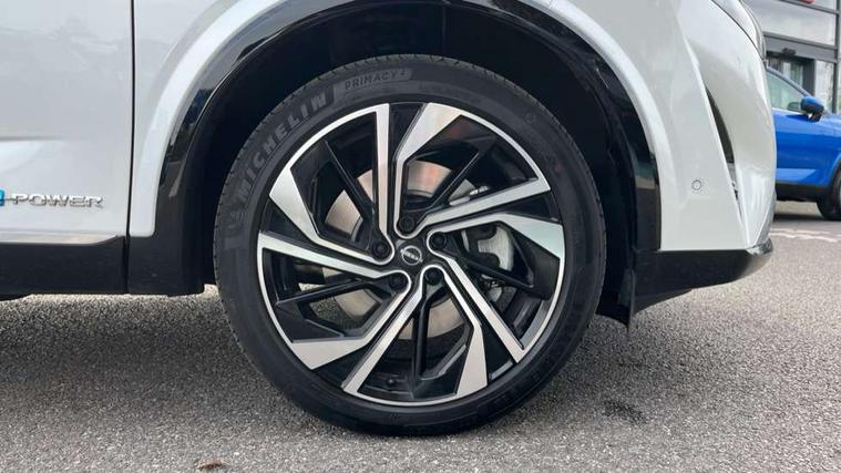 2 front USB-C ports, 2 rear USB-C ports, 360 degree Intelligent around view monitor with moving object detection, Advanced windscreen head up display, Blind spot warning, Drive assist custom mode, Drive modes (sport, normal, eco), Driver drowsiness and attention warning, e-Pedal step, Electric speed sensitive power steering, Emergency and breakdown call, Emergency lane keep assist, Emergency Stop Signal (ESS), Engine start/stop button, EV mode switch, Event data recorder, Front and rear parking sensors, Full Digital 12.3" TFT Digital Combimeter, Google virtual personal assistance, Hands free power tailgate, Idle stop/start system, In-car WIFI hotspot, Intelligent Cruise control (ICC), Intelligent driver alert system, Intelligent forward collision warning, Intelligent lane intervention, Intelligent speed assist, Lane departure warning system, Nissan connect 12.3 inch touchscreen infotainment system, Nissan connect navigation with google maps, Nissan connect services 2.0 (Google Automotive System), Outside temperature sensor, Propilot assist with Navi-Link, ProPilot park, Rear cross traffic alert, Remote control services - door locks, lights, horn and car locator, Reversing detection, Traffic jam pilot, Traffic sign recognition with legal speed adjustment, Trip computer, Wireless Apple CarPlay/Android Auto, Wireless charging pad, Limited slip differential, Multi link suspension, 10 Bose speakers - 2 tweeters, 6 high and medium frequency door speakers and 2 in subwoofer, AM/FM audio system with DAB, Bluetooth audio streaming, Bose acoustimass bass box, Digital amplifier, Auto dimming frameless rear view mirror, Auto rear wiper when reversing, Body colour mirror caps, Body coloured bumpers, Body coloured door handles, Bodyside mouldings, Chrome side window finisher, e-POWER badging, Electric auto folding door mirrors, Electrically adjustable and heated door mirrors with LED turn indicator, Follow me home headlights, Glossy black bumper inserts and fenders, High beam assist, Intelligent auto headlights, LED 3rd brake light, LED daytime running lights, LED headlights with adaptive driving beam, LED rear lights, LED sequential turn lights, One touch front and rear electric windows with remote opening and closing, One touch passenger window, Rain sensing wipers, Rear privacy glass, Rear roof spoiler, Rear side wing doors, Rear styling plate, Reverse tilting door mirrors, Shark fin antenna, Silver roof rails, Splash free rain sensing wipers, Super RED rear LED lights, Super UV and infrared cut glass, Thermaclear heated windscreen, 12v power socket in dashboard and luggage, 3 bench rear seats in 2nd row, 3 rear headrests, 60/40 split folding rear seat bench, Chrome interior door handles, Dark headlining, Driver and passenger sunvisors with illuminated vanity mirrors, Driver seat back pocket, Dual zone automatic climate control with pollen filter, e-POWER shifter, Electric 4-way lumbar support for front seats, Electrically adjustable driver seat with massage and memory functions, Fixed Glass roof with electric sunshade, Front centre console and armrest, Front cupholders, Front door with bottle holders, Heated front seats, Heated steering wheel, Height adjustable front headrests, Height adjustable passenger seat, Luggage board system, Luggage space lighting, Multifunction steering wheel, Passenger seat back pocket, Quilted premium leather upholstery, Rear door bottle holders, Rear seat armrest with 2 cupholders, RGB ambient light (Full area coverage), Single front passenger seat, Smooth leather steering wheel, Tilt/telescopic adjustable steering wheel, Two rear isofix child seat anchorage points with top tether, 3x3 point rear seatbelt pretensioners + load limiters, ABS with EBD and brake assist, Autonomous emergency braking, Child locks on rear doors, Curtain and front side, far side airbags, Driver and passenger airbags, Driver, passenger and 2nd row rear seat belt reminder, Electric handbrake with auto hold function, Front seatbelt pretensioners + load limiters, Height adjustable front seatbelts, Hill start assist, Intelligent blind spot intervention, intelligent front emergency braking, Intelligent rear automatic braking, Tyre pressure monitoring system, Vehicle dynamic control, Advance intelligent key with driver memory storage (seats, mirrors, audio), Engine immobiliser, Remote central door locking with deadlocking, Thatcham alarm, 20" Diamond cut alloy wheels, Tyre puncture repair kit,