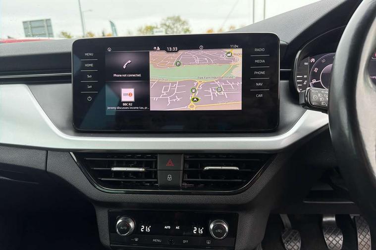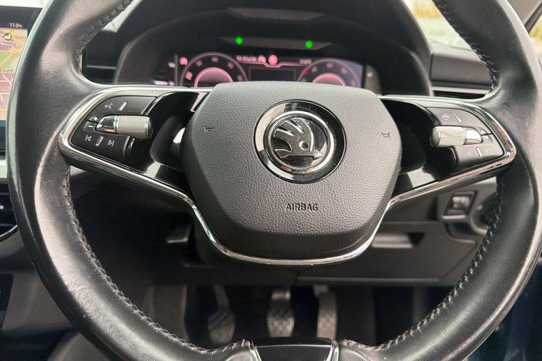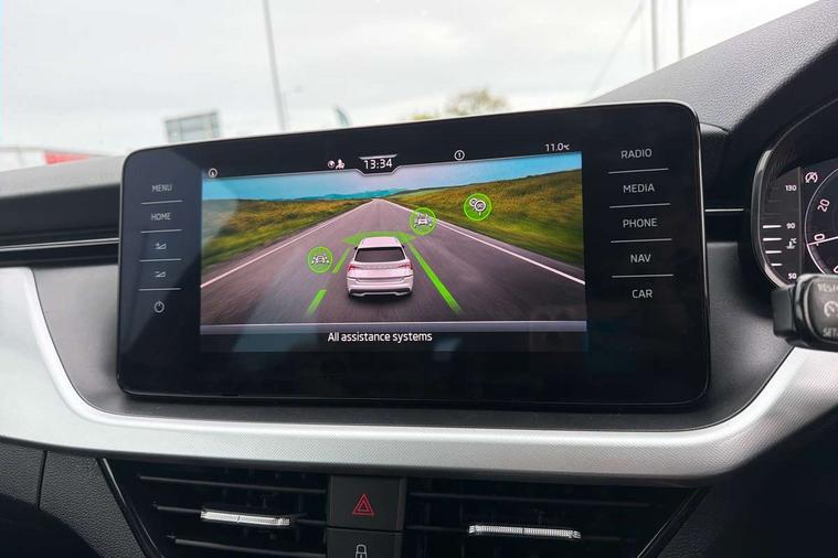 Amundsen satellite navigation with 9.2" touchscreen display, voice control, virtual cockpit and web radio, Bluetooth system, E-call, Front assist system, Lane assist, PAS, Service indicator, Speed limiter, Trip computer, Virtual cockpit with 10.25" display, Wireless SmartLink for apple car play, android auto and mirrorlink, 2 USB - C ports with 1x adaptor cable, Auxiliary input socket, DAB Digital radio, Auto dimming rear view mirror, Body colour bumpers, Body colour door mirrors and handles, Chrome grille surround, Electric folding door mirrors, Electrically adjustable and heated door mirrors, Front and rear electric windows, Headlight range control, Heated rear window, High functionality rear led lights with dynamic indicators, Privacy glass, Rear fog lights, Rear wiper, 12V Accessory socket in centre console, Chrome inner door handles, Dual zone climate control, Front gesture control, Front head restraints, Glove compartment with illumination, Ice scraper, Isofix child seat fittings on outer rear seats, ISOFIX on front passenger seat, Manual lumbar support for front seats, Pollen filter, Rake/reach adjustable steering wheel, Reading lights for driver and front passenger, Sun visor with make up mirror for front passenger, Textile floor mats, Third rear headrest, Top tether for front passenger seat, Umbrella in driver's door, 3x3 point rear seatbelts, Airbags - driver and front passenger, ESP, Front passenger airbag deactivation switch, Front side airbags with curtain airbags, Hill hold control, Manual parking brake, One tone horn, Rear disc brakes, Seatbelt reminder for driver an co-driver, Traction control, Tyre pressure monitor, Alarm with interior monitoring, back up horn and tilt sensor with safe function and towing protection, Anti-theft wheel bolts, Immobiliser, Remote central locking with SAFE system,