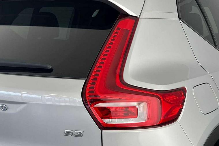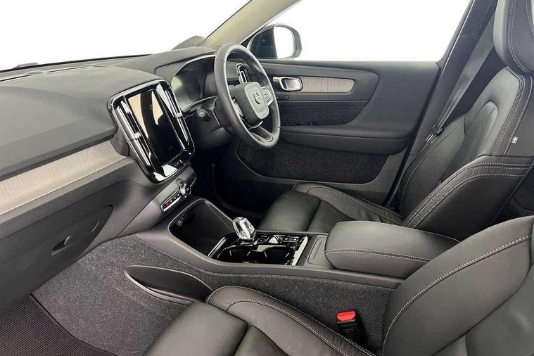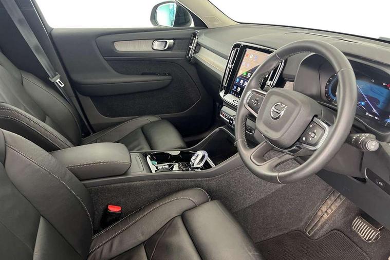 12.3" Progressive Driver Display, 360 degree surround view parking camera with side proximity sensors, 9" centre console portrait touch screen, Adjustable steering wheel force, Bluetooth hands free telephone kit, Cruise control, E-call, Front park assist, Google automatic services - Nav with google maps, apple carplay/android auto, voice recognition with google assistant, Hands free power tailgate, Lane keep assist with driver alert control, Oncoming Lane Mitigation, Rear park assist, Speed limiter, Speed sensitive steering, Wireless/Inductive Mobile Phone Charging, Dynamic chassis, DAB Digital radio, High performance sound, 8 speakers/250W, front USB and 2 rear type C USB, Steering wheel mounted remote controls, Adaptive brake lights with high level LED brake lights, Auto dimming feature for exterior door mirrors, Auto dimming interior mirror, Automatic headlamp levelling, Automatic LED Headlights + Active high beam incorporating daytime running lights, Front aluminium tread plates, Front and rear electric windows, High gloss black front and rear skid plate, High gloss black mesh front grille with high gloss black surround, High gloss black window trim, Home safe and approach lighting, Integrated roof rails in high gloss black, LED front fog lights, Puddle lights, Rain sensor with automatic windscreen wiper activation, Rear side wing doors, Rear wiper, Roof antenna, Roof spoiler, Visible VIN plate, 12V socket in front tunnel console and luggage compartment, 2-Zone electronic climate control with CleanZone air quality system and pollen filter, 3 seat bench in 2nd row, 3 Spoke tailored steering wheel with chrome trim, 60/40 versatile split folding rear seat, A-pillar parking ticket holder, Centre console cupholders and storage, Flexible load floor and grocery bag holder, Floor mats, Front door pocket, front cupholder, ambient front door, rear reading, rear courtesy, instrument panel and tailgate lighting, Front footwell illumination, Front headrests, Front reading light and theatre lighting, Front seat cushion extensions, Front tunnel pocket, Glovebox bag hook, Heated front seats, Height adjustable passenger seat, Height/reach adjustable steering column, High gloss centre tunnel deco, Illuminated glovebox, Illuminated luggage compartment, Illuminated vanity mirrors, Integrated waste bin, Isofix attachments on outer rear seats, Load protection net, Multi directional lumbar support, Power driver seat with memory + exterior mirrors memory, Rear armrest / integral cup holders / storage tray, Rear headrests, Single front passenger seat, Underfloor cargo storage, Climate pack without heated front seats - XC40, 3x3 point rear seatbelts, City safety with steering support with Pedestrian + cyclist + front collision warning with full auto brake and rear auto brake, Drivers knee airbag, Dual stage driver/passenger airbags, Electronic parking brake with auto hold, First aid kit, Front and outer rear seatbelt reminder and pretensioners, Front seats SIPS airbags, Hill descent control, Hill start assist, Inflatable curtain, Passenger airbag cut-off device, Power child locks on rear doors, Road sign information display, Run off Road Mitigation, Run off Road Protection, SIPS (Side Impact Protection System), Slippery road and hazard light alert, Stability and Traction Control with Spin control, Engine Drag Control and Corner Traction Control, Tyre pressure monitoring system, Vehicle deceleration control with Anti-lock Brake System, Electronic Brake Distribution and Emergency Brake Assist, Warning triangle, WHIPS whiplash protection system - front, Anti-theft alarm including immobiliser/volume sensor + level sensor, Key integrated remote control central locking + fuel flap with deadlocking system and auto open/close power windows, Keyless drive includes keyless entry and keyless start, Locking wheel nuts,