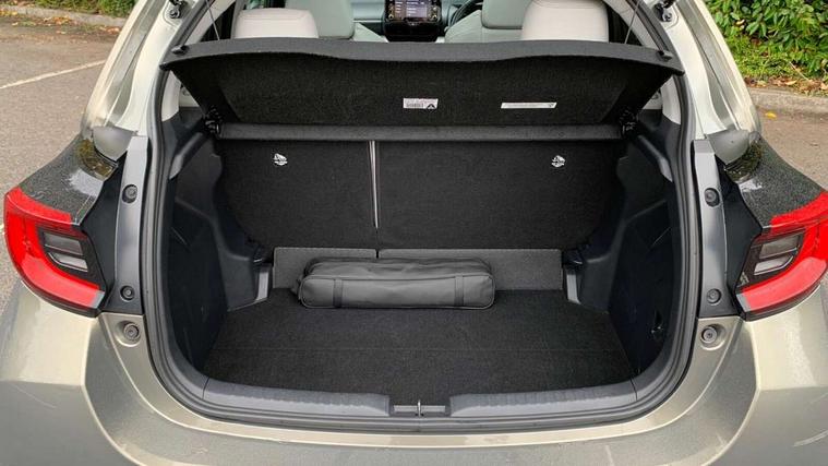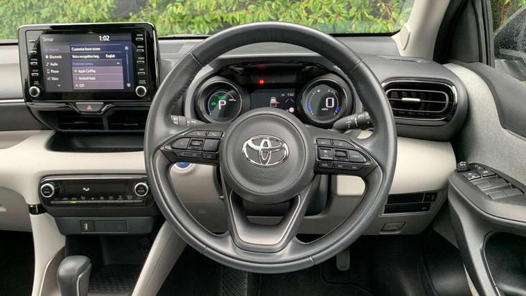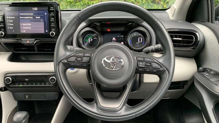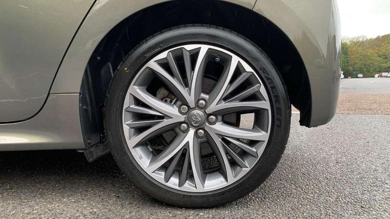 Adaptive cruise control, Adjustable speed limit with speed warning, Blind spot monitoring, Bluetooth connectivity, Colour binocular inspired displays with digital speedometer, E-call, Electric power steering, Front and rear parking sensors with intelligent clearance sonar and automatic braking, Hybrid energy display, Multi information display switches on steering wheel, Reversing camera, Smartphone integration with Apple CarPlay and Android auto, Vehicle Stability Control (VSC), 6 speakers, 8" Multimedia display touch screen, USB connection, Acoustic windscreen glass, Automatic headlights, Automatic windscreen wipers with rain sensor, Automatically retractable door mirrors, Body coloured door mirrors, Electric adjustable heated door mirrors, Follow me home headlights, Front auto power windows with anti jam protection, Full LED rear lights, LED daytime running lights, LED front fog lights, LED Headlights, LED High mounted stop lamp, Painted front grille, Rear auto power windows with anti jam protection, Rear privacy glass, Rear side wing doors, Rear spoiler, Rear wiper, Satin lower front grille, Shark fin antenna, Turning signal integrated indicators in door mirrors, 3 adjustable rear headrests, 3 spoke leather steering wheel, 60/40 split folding rear seat, Active headrests, Adjustable boot height, Coat hooks in rear grab handles, Cup holders (2 front & door), Data Communication Module (DCM) connected services, Dual zone automatic air conditioning, Fabric seat with partial synthetic leather upholstery, Front armrest, Front sport seats, Glovebox, Height adjustable driver's seat, Height adjustable passenger seat, Isofix seat fixing, Leather gearshift, Map pockets on the backs of the front seats, Pollen filter, Shopping bag hooks, Single front passenger seat, Tilt/telescopic steering column, 3 point seatbelts on all rear seats, ABS+EBD+Brake assist, Electronic parking brake, Emergency brake light system (EBS), Front passenger airbag on/off switch, Front seatbelt reminder, Hill start assist control (HAC), Rear child proof door locks, Rear seat belt reminder, Supplemental Restraint System (SRS) 8 airbags: Driver & passenger's airbags, dual side curtain airbags, side impact airbags, front centre airbag, Toyota Safety Sense 2, Precollison + Night time Pedestrian & Cyclist Detection, Lane Trace Assist, Auto High Beam, Intelligent ACC & Road Sign Assist, Tyre pressure warning system, Alarm/immobiliser, Keyless smart entry with push button start, Remote powered central double locking doors, Satin chrome interior styling, Soft touch instrument panel, Space saver spare wheel,