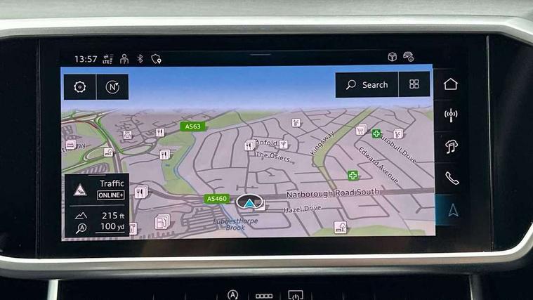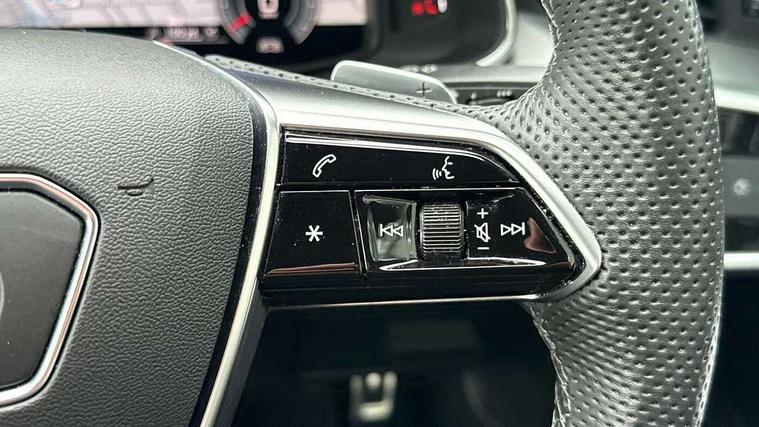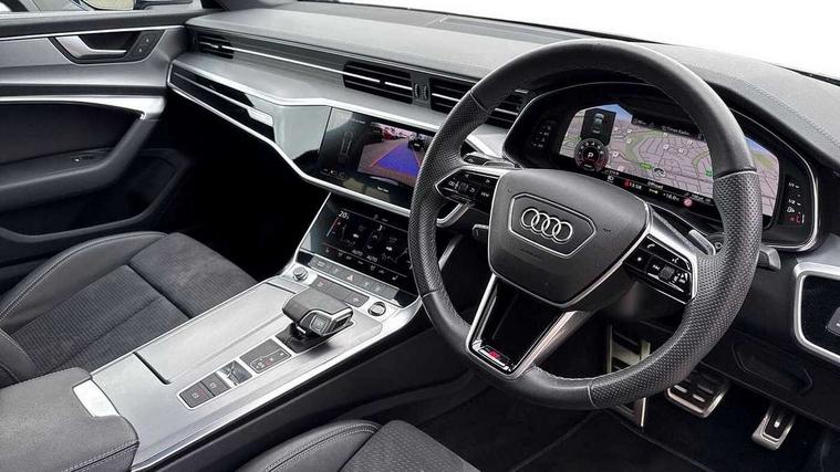 Audi connect safety and service (e-call), Audi connect with Amazon Alexa Integration, Audi drive select, Audi parking system plus - acoustic and visual park assist system for front and rear, Audi virtual cockpit, Automatic start/stop system with coasting functionality, Bluetooth interface, Camera based traffic sign recognition, Electric boot lid release, Lane departure warning system, MMI navigation plus with 10.1" and 8.6" touch screens, Progressive steering, Rear view camera, Service interval indicator, Smartphone interface includes wireless Apple carplay/Android Auto, Voice control system, Sports suspension, Audi front music interface, Audi sound system, Auxiliary input socket, DAB Digital radio, USB connection, Body coloured door mirrors, Electric front/rear windows, Electrically adjustable heated and folding + automatically dimming exterior mirrors with memory function, Frameless auto dimming interior rear view mirror, Front intermittent wipers, Heat insulating darkened glass in side and rear windows, Heat insulating glass in windshield, LED rear lights with dynamic indicators, LED signature front daytime running light, LED third brake light, Matrix LED headlights, Matt black rear diffuser with diffuser strip and tailpipes in chrome, Matt black side air intake grille with inlay in matt aluminium, Privacy glass, Radiator grille in anthracite black matt, single frame in chrome and horizontal struts in matt aluminium silver, Rain and light sensors, Rear boot, Rear side wing doors, 2 zone deluxe electronic climate control, 3 spoke high multi-function perforated leather steering wheel with contrast stitching and shift paddles, 40/20/40 split folding 3 rear seat bench in 3 parts with rear centre armrest, Audi phone box light, Black cloth headlining, Electrically adjustable front seats including seat height, fore/aft position, backrest angle and 4-way lumbar with memory for driver's seat, Front and rear floor mats, Front centre armrest, Front head restraints, Heated front seats, Height/reach adjust steering wheel, Illuminated door sill trims with S logo, Illuminated sun visors with vanity mirrors, Leather gear knob, Rear headrests, Single front passenger seat, Stainless steel pedals and foot rest, Tool kit and car jack, LED Interior Ambient Lighting Pack - A6, Non smoking pack - A6, S line exterior style pack - A6, 3 point seatbelts on all seats, Airbags - Front side, front and rear including head, Audi pre-sense front, EBD - Electronic brakeforce distribution, Electromechanical parking brake, Electronic Stability Control (ESC) including ABS, ASR and EDL, Extended pedestrian protection measures, ISOFIX child seat mounting for front passenger seat and ISOFIX child seat mounting with Top Tether for outer rear seats, Manual child proof rear door locks, Seatbelt monitoring, Tyre pressure warning light, Warning triangle and first aid kit, Anti theft alarm with tow away protection, Anti-theft wheel bolts and wheel loosening detection, Immobiliser, Keyless Go, Remote central locking, Matt brushed aluminium inlays,
