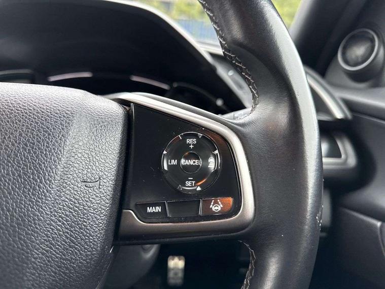 7" touch screen, Adaptive cruise control, Adaptive motion for electric power steering, Apple car play/Android Auto, Blue dashboard illumination, Bluetooth hands free telephone connection, Easy fuel capless refuelling system, Economy mode, Electric power steering wheel with variable gear ratio steering, Emergency stop signalling system, Forward collision warning, Front and rear parking sensors, Honda CONNECT with GARMN Navigation + 7" touchscreen, AM/FM, internet radio, aha app integration and internet browsing, Idle stop, Intelligent speed limiter, Lane departure warning system, Lane keep assist, Multi-information display, Rear parking camera, Road departure mitigation, Traffic sign recognition, Vehicle stability assist, 'Shark fin' mobile antenna, 180w Power audio system, 2x USB and HDMI, 8 speakers, Auxiliary socket for external MP3 player, Digital Audio Broadcast (DAB) Tuner, Steering wheel mounted audio controls, Automatic coming/leaving home lighting function, Automatic headlights with dusk sensor, Automatic rain sensing wipers, Black grille, Body colour door handles, Body coloured bumpers, Chrome window surround, Electric adjustable heated door mirrors, Electric front/rear windows/one touch operation, Electrically folding door mirrors, Fuel filler cap, Halogen front fog lights, Headlight washers, High beam assist, LED daytime running lights, LED Headlights, LED rear lights, Power foldback door mirrors, Privacy glass, Rear spoiler, Rear wiper, Single exhaust tailpipe, 4 Cargo net hook, 60/40 split folding rear seat, Alloy pedals, Ambient light in roof, Blue meter illumination, Centre console storage and sliding armrest, Cloth upholstery, Driver and front passenger seat electric lumbar adjustment, Driver's seat height adjustment, Dual climate control air conditioning system, Front accessory power socket, Front map lights, Front/rear courtesy lights, Gear shift indicator, Glovebox light, Isofix points, Isofix system on outer rear seats, Leather steering wheel, Luggage floor box, Passenger seat back pocket, Rear air vents, Rear armrest with cupholder, Sunvisors with illuminated vanity mirrors, Three height adjustable rear head restraints, Tilt/telescopic adjustable steering wheel, Tonneau cover, Trunk light, ABS+EBD+Brake assist, Airbags - driver and front passenger, Anti-whiplash front headrests, Collision mitigation braking system, Deflation detection system, Driver SRS airbag (single stage inflation), Electronic parking brake with auto hold, Front and rear curtain airbags, Front and rear seat belt with emergency locking retractor, Front and rear seat belts with emergency locking retractor (ELR), Front seatbelt pretensioners, Front side airbags, Hill start assist, Low speed safety system, Passenger airbag deactivate switch, Tyre pressure warning, Immobiliser, Mirrors and windows key fob, Remote central locking with 2 jack knife keys, Security alarm, Selectable door unlock, Black instrument panel, 17" Grey alloy wheels, Tyre repair kit,