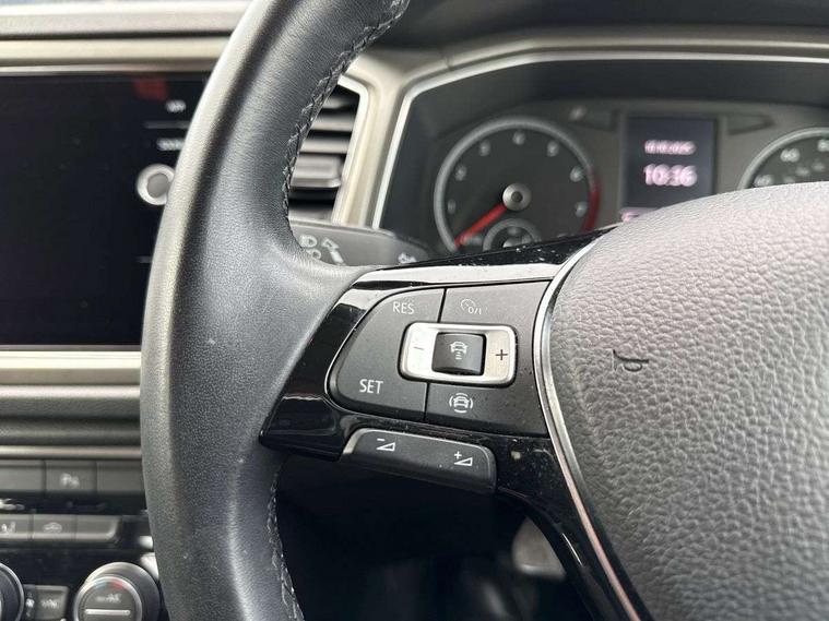 'Lights On' Reminder warning buzzer, 2 USB connection charging sockets, Adaptive cruise control with front assist, radar sensor controlled distance monitoring, city emergency braking, App-Connect, Automatic start/stop system, Bluetooth telephone and audio connection for compatible devices, Car information display, Driver tips and journey analysis, Lane assist, Multifunction computer with visual gear change recommendation for fuel consumption, Service interval indicator, Think blue trainer driver tips and journey analysis, Warning sound and light for doors and tailgate open, Warning sound and light for front seatbelts unfastened, We Connect Go Dongle, Battery regeneration during braking, DAB Digital radio, Multi device interface (MDI) with USB connection, Music playback - MP3, WMA and AAC files, Premium USB cable in choice of either Apple or Android smartphone compatibility, SD card slot, Simultaneous pairing of 2 compatible mobile devices, SMS functionality - read, compose and send SMS messages using touch-screen display, Title and cover art display, Auto dimming interior rear view mirror, Automatic hazard lights activation under emergency braking, Black grained lower door protectors, Black grained wheel arches, Body colour bumpers with silver metallic underbody fascia, Body colour door handles, Chrome trim on upper and lower radiator grille, Dusk sensor, Electrically foldable, adjustable and heated door mirrors with puddle lights and reverse activated kerb-view adjustment on passenger's door mirror, Front and rear electric windows, Front windscreen wiper with intermittent wipe and 4 position delay, Fully galvanised body, Heated rear window, High level 3rd brake light, LED rear number plate lights, Manual coming/automatic leaving home lighting function, Rain sensor, Rear wash/wipe with intermittent wipe setting, 12V socket in centre console storage area, 2 front reading lights, 3 rear head restraints, 4 load lashing points in luggage compartment, Climate control - 2 zone electronic air conditioning with automatic air recirculation and allergy filter, Drawer under drivers seat, Front centre armrest with storage compartment, longitudinal and height adjustable and two rear air vents, Front cupholders x 2, Front seat back storage pockets, Glovebox, Height adjustable front seats, Height/reach adjust steering wheel, Illuminated vanity mirrors, Instrument lighting, white adjustable panel illumination, Interior light delay, Isofix easy fit child seat preparation for 2 outer rear seats, Load through provision with single cup holder when folded down, Luggage compartment cover, removable, Luggage compartment lighting, Split folding rear seat backrests with centre armrest, Storage compartment in left and right luggage area, Storage compartment in rear doors, Storage compartments in driver and front passenger doors, 3 rear three point seatbelts, ABS, Curtain airbags, Driver and front passenger safety-optimised head restraints, Drivers and front passengers airbags with passengers deactivation switch, Electronic parking brake with auto hold, Electronic stability control (ESC) includes ASR, EDL, EDTC and trailer stabilisation function, Front seat side impact airbags, Predictive pedestrian protection, Rigid safety cell with front and rear crumple zones, Three point height adjust front seatbelts + pretensioners, Tyre pressure loss indicator, Ventilated front and rear disc brakes, Volkswagen roadside assistance, Alarm with interior protection and deactivation via infotainment system, Electronic engine immobiliser, Remote central locking with 2 remote folding keys, Limestone grey decorative inserts in dash and door panel, Steel space saver spare wheel,