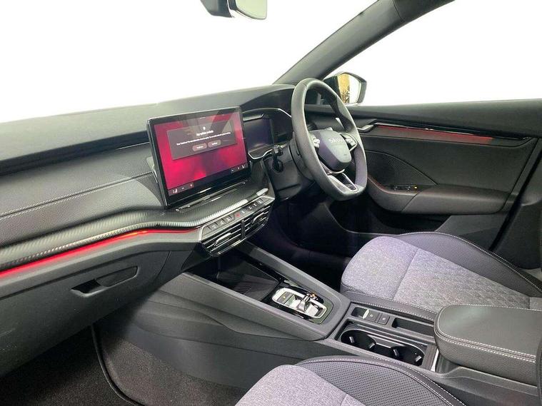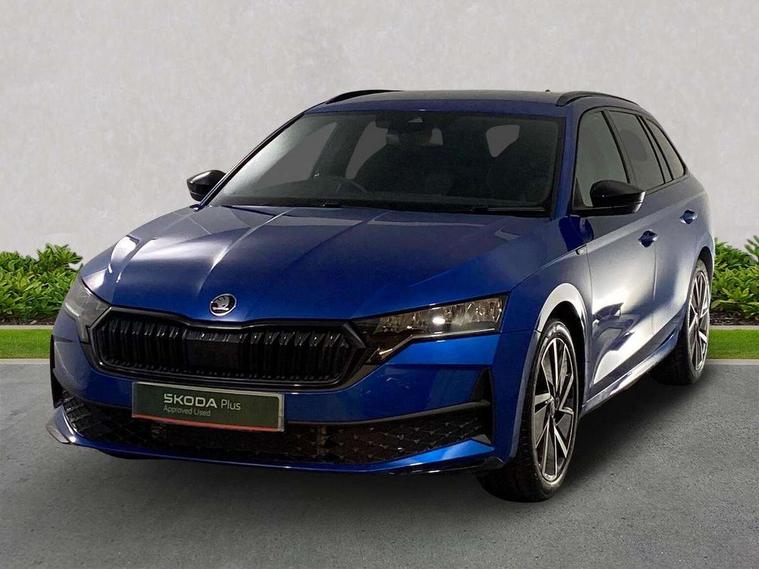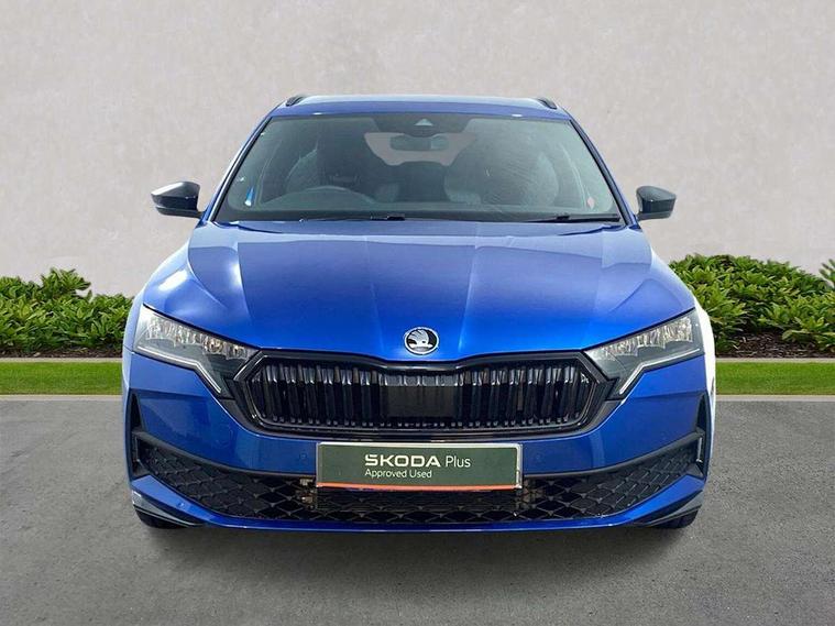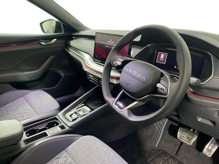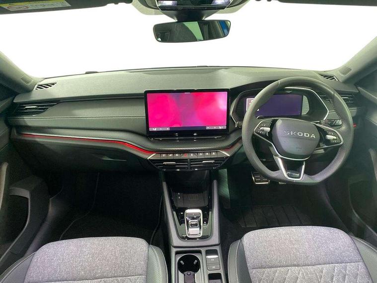 1x USB Typc C port in rear view mirror, 4x USB Type C ports - 2x in front centre console and 2x in rear (45W), Drive mode selection, Driver fatigue sensor, eCall emergency system, Front assist system, Progressive dynamic steering, Traffic sign recognition, Turn Assist, Virtual Cockpit - 10.25" digital display, Voice control system, Wireless charging (15W) with cooling function, Wireless SmartLink for Apple CarPlay and Android Auto, Sports suspension with 15mm lower, 13" touchscreen display with navigation, DAB Digital radio, Aero front windscreen wipers with intermittent function, Auto dimming rear view mirror, Body colour bumpers, Body colour door handles, Electric front and rear windows, Exterior gloss black sports styling including front grille, window surrounds, door mirrors and badging, Gloss black diffuser, Gloss black roof rails, Gloss black spoiler, Heated rear windscreen, High beam control, High level third brake light, Ice scraper in fuel cap, LED daytime running lights, Logo projection in front doors, Rain and light sensors, Rear fog light on one side, Rear privacy glass, Rear side wing doors, Rear window wiper, 12 volt socket in boot, 3 rear headrests, 3 seat bench in 2nd row, 4 foldable roof handles, Aluminium pedals, Front head restraints, Front sport seats, Heated front seats, Illuminated glovebox, Interior door handles in dark chrome, Jumbo Box storage, Luggage compartment lighting x2 lights, Mechanical rear seat release from boot, Single front passenger seat, Steering wheel in black leather with black stitching, Storage compartments in left and right of boot, Sun visors with mirrors, Sunglasses storage, Ticket holder, Umbrella in door panel, Unsplit rear bench seat, split folding backrest with centre armrest with cupholder, SportLine Design Selection pack - Octavia, 3x3 point rear seat belts, Alarm with interior monitoring, tilt sensor and back up horn, Curtain airbags and front side airbags, Driver and front passenger airbags, Drivers knee airbag, Electronic parking brake, ESC including ABS, EBV, MSR, ASR, EDS, HBA, DSR, Front central airbag, Hill hold assist, ISOFIX on front passenger seat and outer rear seats, Passenger airbag deactivate switch, Three point seat belts in front and rear, Two tone horn, Tyre pressure monitor, Visual and acoustic seat belt reminder, Warning reflectors in front door, Anti-theft wheel bolts, Keyless start/stop, Remote central locking, Gloss black air vent surrounds,