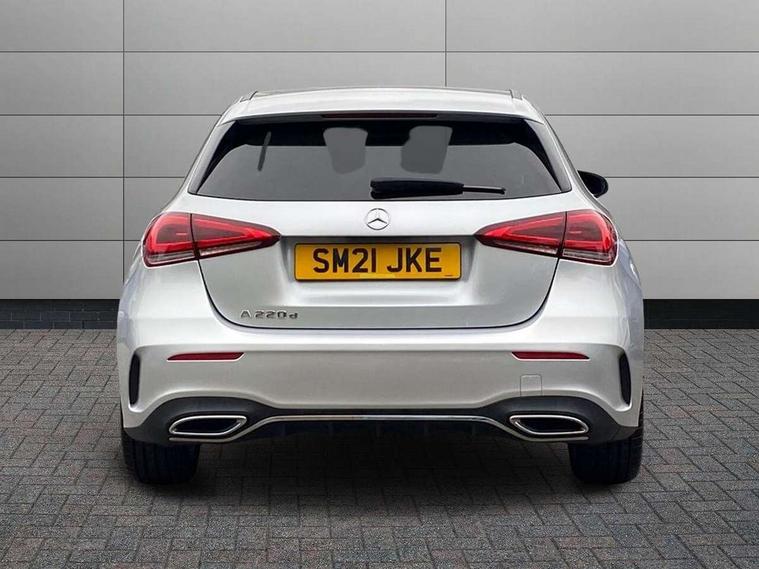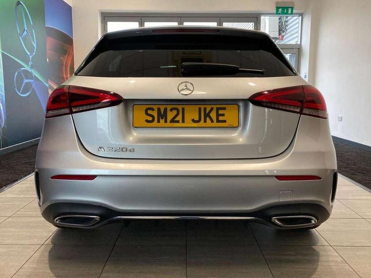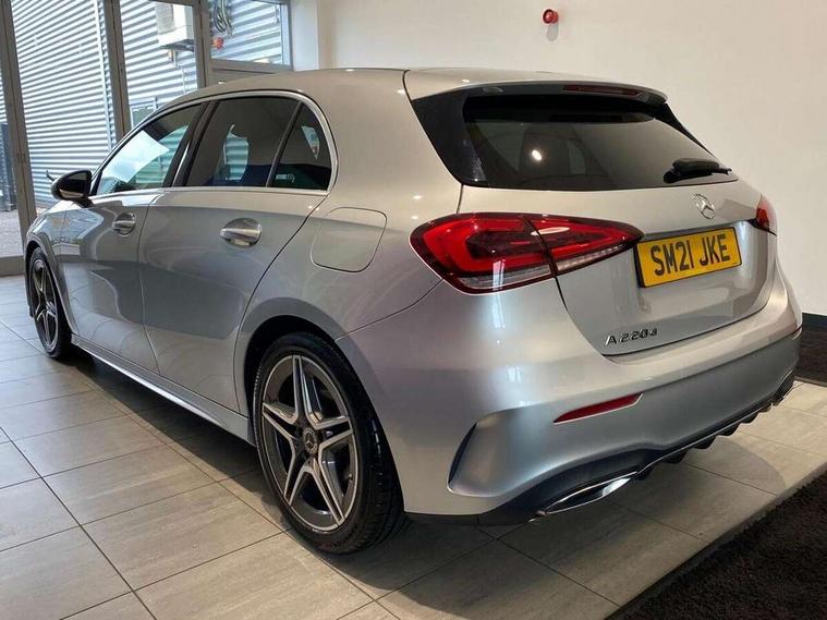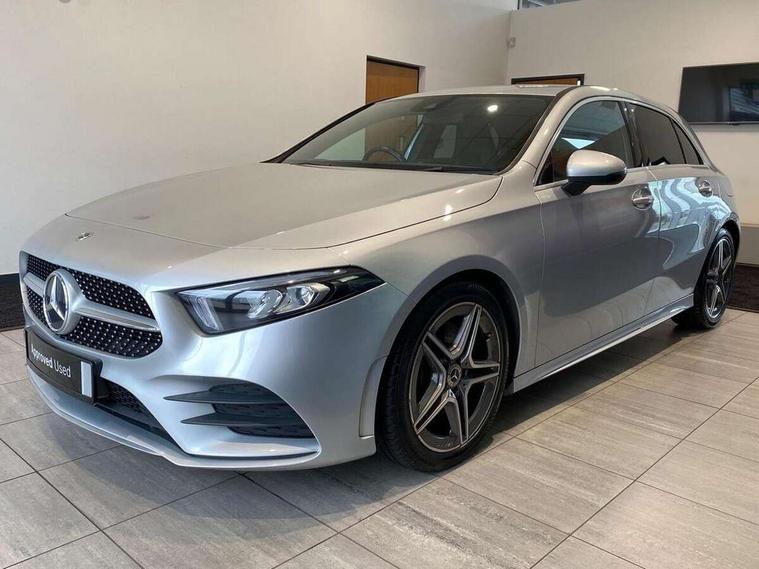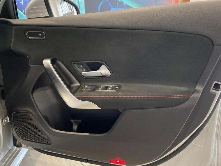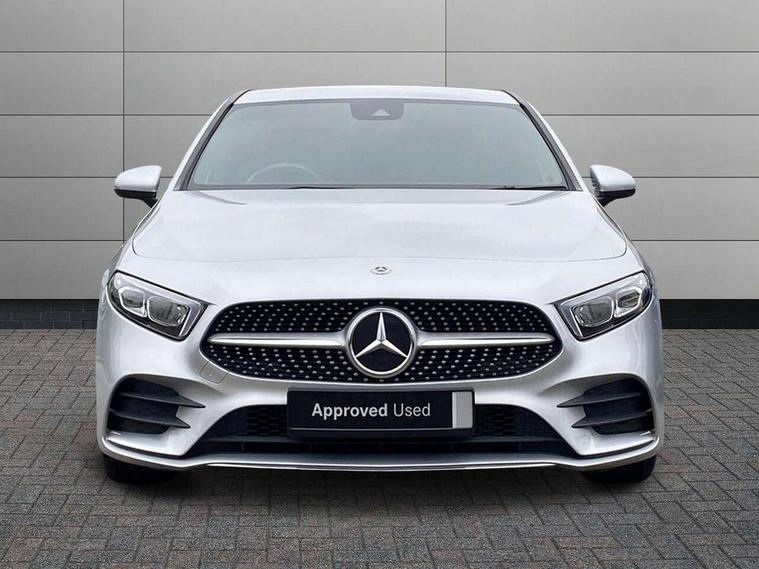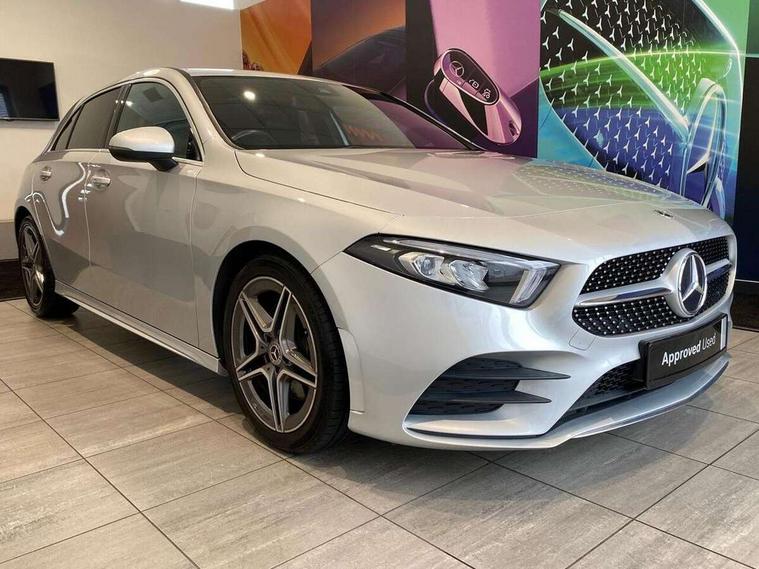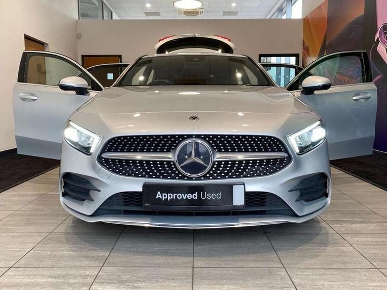 180 degree rear view camera with parking guidelines, 7" colour screen in instrument panel, 7" touchscreen media display, Attention assist, Brake pad wear indicator warning light, Car wash mode, Cruise control + speed limiter, Direct steering, Dual bluetooth interfaces, DYNAMIC SELECT with a choice of driving modes (ECO, Comfort, Sport and Individual), ECO start/stop function, Fluid level warning indicator for fuel, oil, coolant and washer fluid, Hard-disk navigation, Hey Mercedes Voice activation, Lamp failure indicator, Mercedes me connect including emergency call system, accident recovery, breakdown and maintenance management, Mercedes me remote services, Outside temperature gauge, Owners manual in English, Pre-installation for private car sharing, Preinstallation for Mercedes Benz link, Service indicator (ASSYST), Speed sensitive power steering, Trip computer, Lowered comfort suspension, Rear axle multi-link, 2 USB ports (type C) in rear stowage compartment and one in front of center console, 6 speakers, DAB Digital radio, MBUX multimedia system with DAB digital radio and touchpad including satellite navigation, Mercedes-Benz sound system - 100W, 4 Electric Front and Rear windows, Adaptive brake lights, AMG bodystyling - Front apron with splitter in chrome, rear apron with chrome trim and chrome visible trim elements in tailpipe, Black weather strip, Body colour bumpers, Body colour door handles, Body colour side skirt, Body coloured door mirrors, Chrome beltline trim, Diamond radiator grille with chrome pins and silver louvre + chrome insert, Electric adjustable and heated door mirrors with integrated LED side indicators, Exhaust system - Twin visible tailpipes in polished stainless steel, Headlamp assist automatic headlamp activation, Heated glass rear windscreen + timer control, LED high performance headlamps with integrated LED daytime running lights, LED tail lamp, LED third brake light, Privacy glass, Radio aerial, Rain sensing windscreen wipers with two sensitivity settings, Rear fog lights, Rear wiper, Window line trim strip in chrome, 3 Spoke flat bottom leather multi function steering wheel with perforated leather in grip area, 40:20:40 split folding rear seats, Artico man-made leather/Microfibre Dinamica upholstery with red contrast stitching, Auto Mercedes-Benz child seat recognition sensor, Black air vents with surround in silver chrome, Black roof lining, Brushed stainless steel sports pedals with rubber studs, Controller on centre console with chrome surround, Floor mats with stitched edging and AMG lettering, Front centre armrest with storage compartment, Front door sills with Mercedes Benz lettering, Front seat backs luggage nets, Front seat cushion length adjustment, Galvanished gear shift paddles on steering wheel, Heated front seats, Height/reach adjustable steering column, Interior mirror with reading lamps in black and frameless, Manual height adjustable front seats, Rear head restraints, Seat occupancy sensor for front passenger seat, Sports seats with integrated headrests, Stowage compartment in centre console with retractable cover, Sunvisors with illuminated vanity mirrors, Touchpad on center console, Twin front cupholders, Two zone thermotronic luxury automatic climate control, Light and sight pack - A Class, Seat comfort pack - A Class, 3 rear 3 point seatbelts, ABS with Brake Assist, Active bonnet, Active brake assist includes forward collision warning system with autonomous braking, Adaptive brake assist with hold function and hill start assist, Black seatbelts, Childproof locks manually operated for rear doors and electrically operated for rear power windows, Crash responsive emergency lighting, Driver and passenger head and side airbags, Drivers knee airbag, Dual stage driver/passenger airbags, Electronic parking brake, ESP curve dynamic assist, ESP with ASR, Front and rear seatbelt reminder, Front brake callipers with Mercedes Benz lettering, ISOFIX and top tether child seat fixing points in two outer rear seats, Tyre pressure monitoring system, Warning triangle and first aid kit, Window airbags, Alarm system/interior protection/immobiliser, Keyless Go, Remote central locking and crash sensor with emergency opening function, Urban guard vehicle protection system with immobiliser and interior protection, Dinamica microfibre trim in black, 18" AMG 5 twin spoke light alloy wheels in titanium grey with highsheen finish, Summer tyres, Tirefit sealant kit,