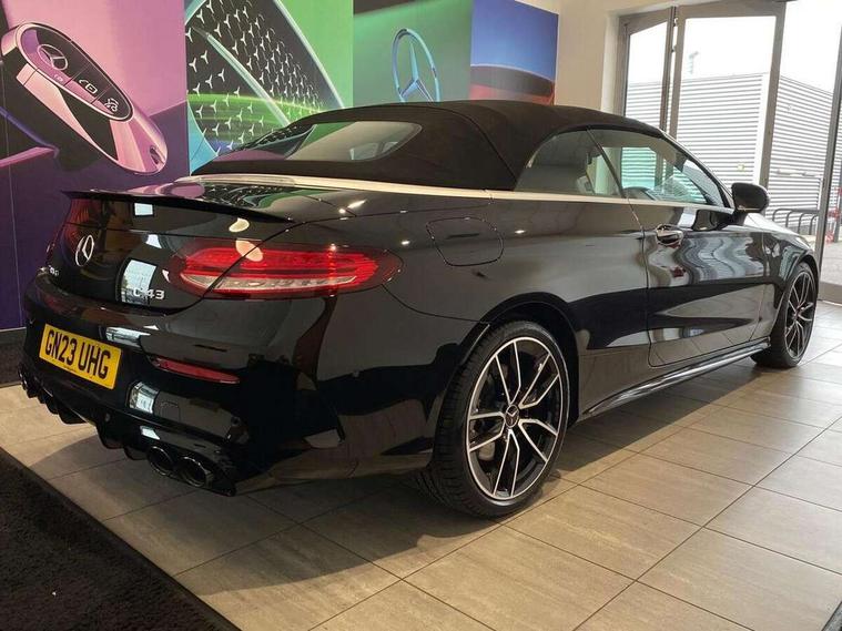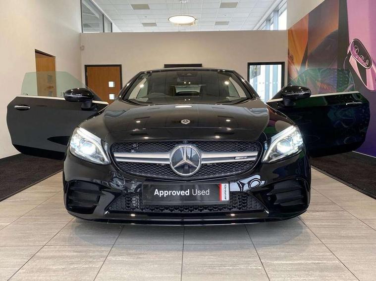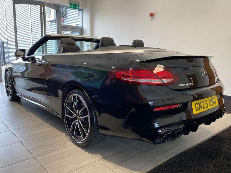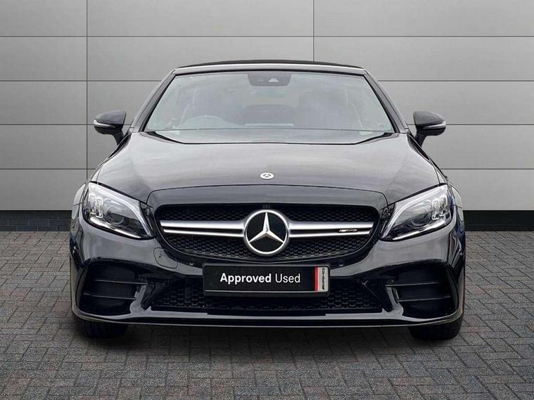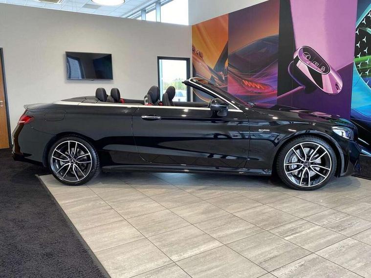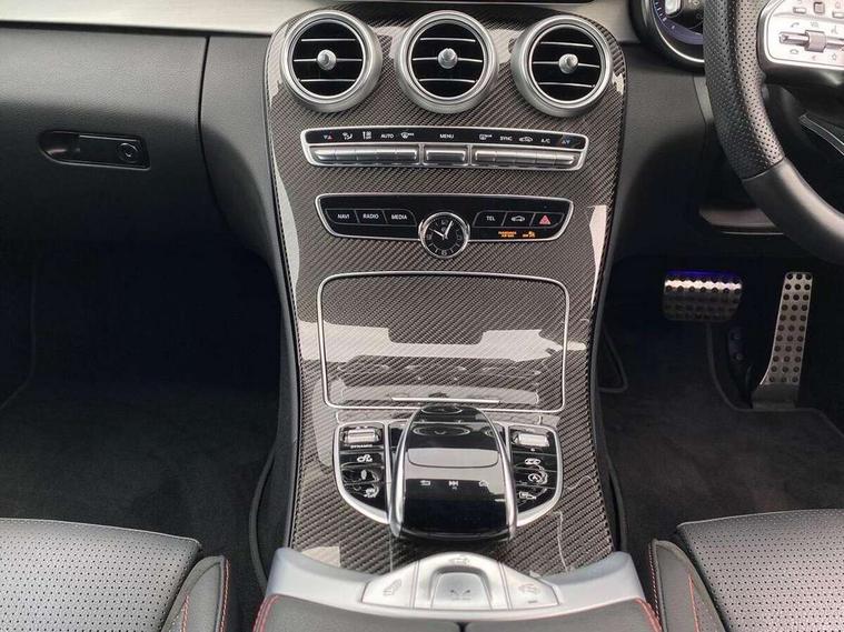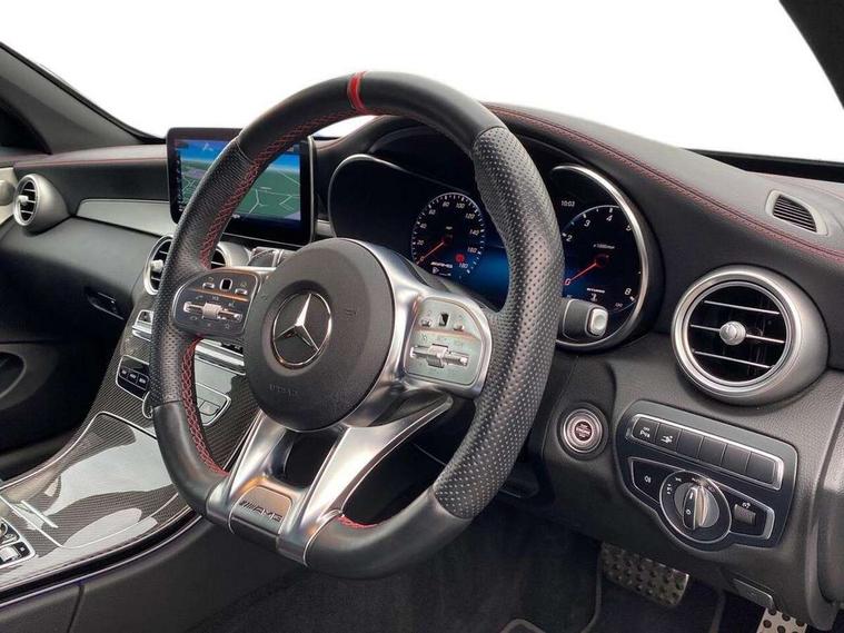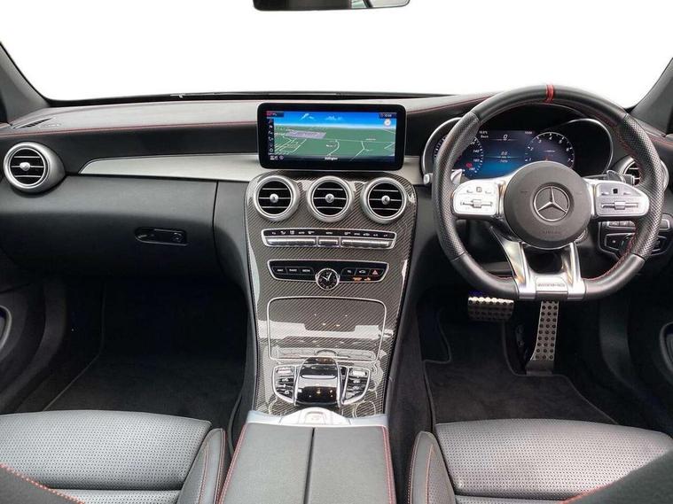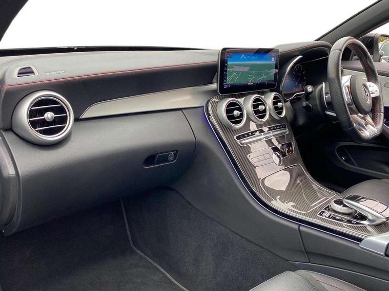 12.3" digital instrument cluster display, 2 stage speed sensitive sport steering, 360 degree camera, Active park assist with parktronic system, AMG boot logo in central screen, Attention assist, Bluetooth interface for hands free telephone, Collision prevention assist plus, Comand Online HDD Nav with media interface, radio/CD/DVD/MP3, 10.25 screen, linguatronic voice control, Cruise control with speedtronic variable speed limiter, DYNAMIC SELECT with a choice of driving modes (ECO, Comfort, Sport, Sport+ and Individual), ECO start/stop function, High resolution 10.25" multimedia colour display, Instrument cluster two tube design round dials and 5.5-inch TFT multi-function display, Mercedes me connect including emergency call system, accident recovery, breakdown and maintenance management, Multi function trip computer, Outside temperature display, Pre-wiring for SD navigation system, Remote boot release, Reversing camera, Service indicator (ASSYST), Status display for rear seat belts in instrument cluster, 66l fuel tank with increased capacity, 9G Tronic plus 9 speed automatic, AMG performance 4MATIC with torque control distribution, AMG Ride Control sports suspension, Petrol Particulate Filter, Burmester surround sound system, DAB digital radio tuner, Frontbass loudspeakers, Two USB ports and one SD Card slot in centre console, Acoustic soft-top with enhanced climate and noise comfort, Adaptive brake lights, AIRCAP wind deflector and draught stop, AMG bodystyling - front apron with distinctive air intakes and AMG rear apron with diffuser look, AMG boot lid spoiler in body colour, AMG design radiator grille with double louvre in matt iridium silver with AMG lettering, Automatic headlights, Body coloured bumpers, Electric windows with one touch opening/closing and obstruction sensors, Exterior mirrors heated and electronically adjustable, Front door sill panels with AMG lettering, Full LED tail lamps, Green tinted glass, LED daytime running lights, LED Indicators, LED third brake light, Multi beam LED headlights, Radio aerial integrated into rear window, Rain sensor windscreen wipers, Rear boot, Semi-automatic boot separator, Side windows surround in polished aluminium, V8 Bi-Turbo 4Matic badge on front wings, 2 cupholders in front centre console, 2 rear head restraints, 2 seat bench in 2nd row, 3 spoke AMG performance flat bottom leather steering wheel in black, heavily embossed central grip area silver chrome and contrast topstitching in red, 40:20:40 split folding rear seats, Airscarf - neck level heating, Auto Mercedes-Benz child seat recognition sensor, Electric height/reach adjustable steering column, Floor mats with black leather edging, red piping and AMG logo, Front centre armrest with storage compartment, Front head restraints, Front LED reading lights, Heated front seats, Illuminated glove compartment stowage, Interior lighting - 64 colour Ambient lighting, Leather upholstery, Single front passenger seat, Sports pedals with stainless steel surfaces and rubber studs, Sports seats with integrated head restraints, Steering wheel gearshift paddles, Steering wheel touch control buttons for audio and onboard settings, Sunvisors with illuminated vanity mirrors, THERMATIC 2 zone automatic climate control, AMG night package - C Class, Interior lighting package - C Class, Memory pack with steering column memory - C Class, Mirror package - C Class, Seat comfort pack - C Class, Stowage space pack - C Class, 2 rear seatbelts, 3 point automatic seatbelts, Active bonnet, Adaptive brake system with hold function and brake drying function, Anti-lock braking system (ABS), Automatic seatbelt pretensioner for driver and front passenger, Brake calipers with AMG lettering + perforated brake discs, Dual stage airbags - driver and front passenger, front sidebags, driver kneebag, pelvis bag and windowbags for driver, front and rear passengers, Electronic parking brake, Electronic Stability Programme (ESP), ISOFIX child seat attachment points with top tether in rear, Red seat belts, Sports braking system with larger brake discs, Tyre pressure monitoring system, Warning triangle and first aid kit, Anti-theft alarm system/interior protection with tow-away protection and interior monitoring systems, Central locking with interior switch, automatic locking and crash sensor with emergency opening function, Chrome surround in electric key, Immobiliser, KEYLESS-GO Entry and Starting Function, AMG carbon fibre/light longitudinal grain aluminium trim, Artico man-made leather dashboard with red contrast stitching, 19" AMG t-twin-spoke light-alloy wheels, aerodynamically optimised, painted in black with a high-sheen finish, TIREFIT with tyre inflation compressor,