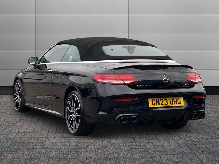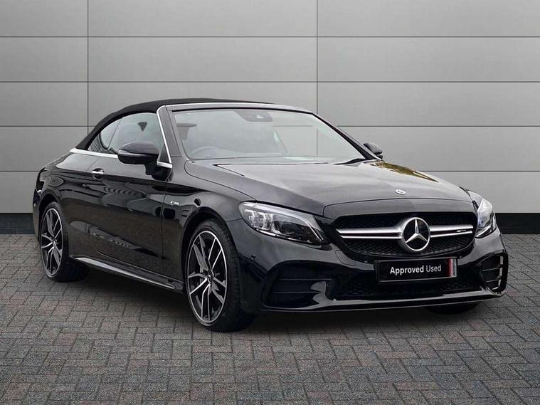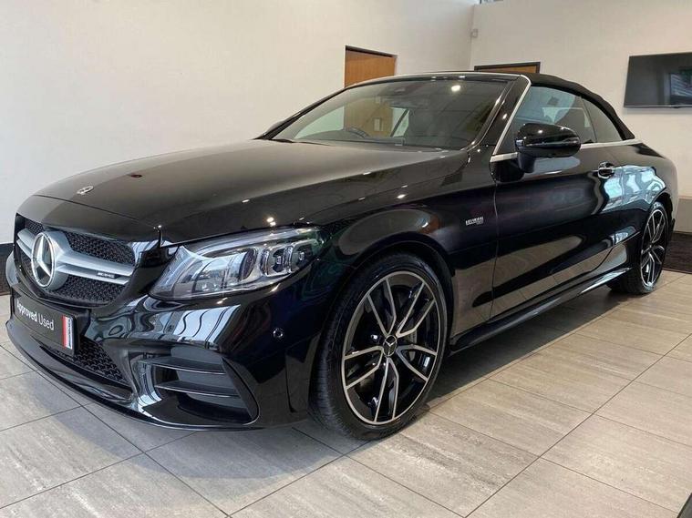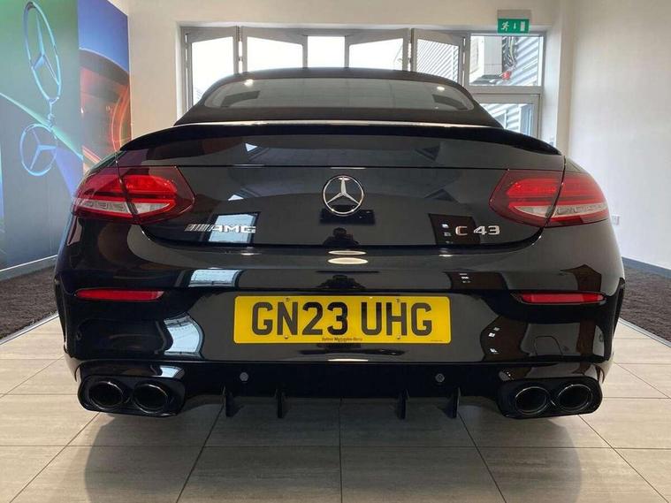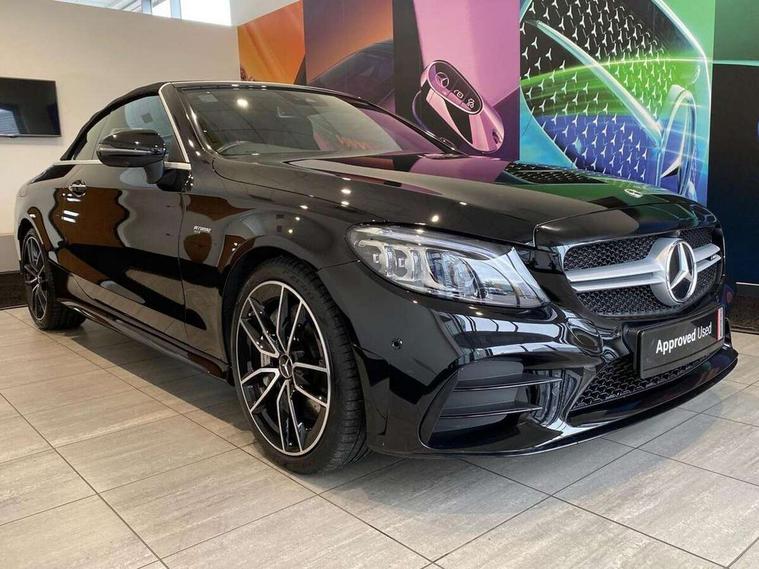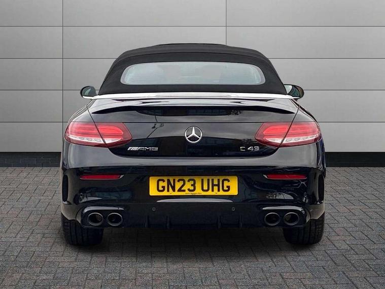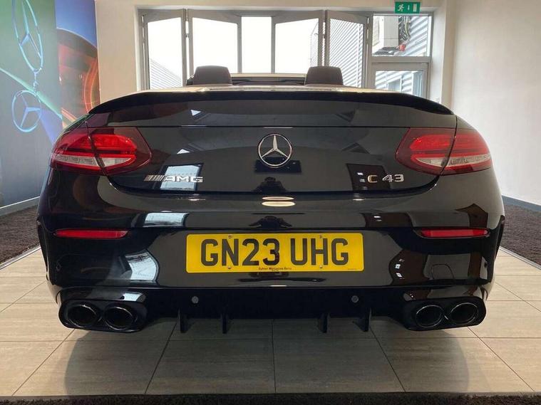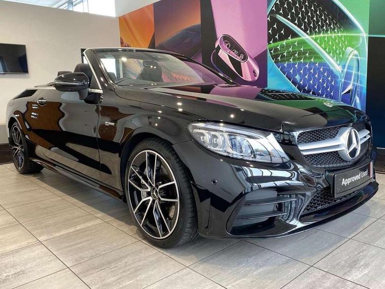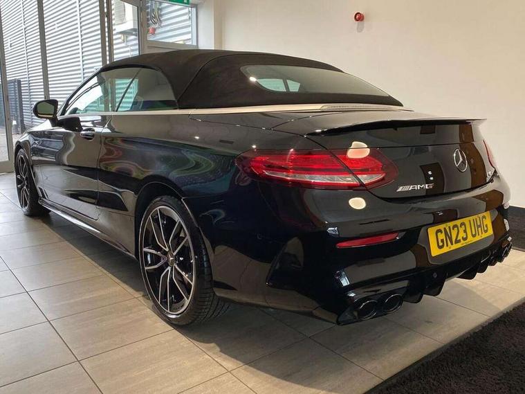 12.3" digital instrument cluster display, 2 stage speed sensitive sport steering, 360 degree camera, Active park assist with parktronic system, AMG boot logo in central screen, Attention assist, Bluetooth interface for hands free telephone, Collision prevention assist plus, Comand Online HDD Nav with media interface, radio/CD/DVD/MP3, 10.25 screen, linguatronic voice control, Cruise control with speedtronic variable speed limiter, DYNAMIC SELECT with a choice of driving modes (ECO, Comfort, Sport, Sport+ and Individual), ECO start/stop function, High resolution 10.25" multimedia colour display, Instrument cluster two tube design round dials and 5.5-inch TFT multi-function display, Mercedes me connect including emergency call system, accident recovery, breakdown and maintenance management, Multi function trip computer, Outside temperature display, Pre-wiring for SD navigation system, Remote boot release, Reversing camera, Service indicator (ASSYST), Status display for rear seat belts in instrument cluster, 66l fuel tank with increased capacity, 9G Tronic plus 9 speed automatic, AMG performance 4MATIC with torque control distribution, AMG Ride Control sports suspension, Petrol Particulate Filter, Burmester surround sound system, DAB digital radio tuner, Frontbass loudspeakers, Two USB ports and one SD Card slot in centre console, Acoustic soft-top with enhanced climate and noise comfort, Adaptive brake lights, AIRCAP wind deflector and draught stop, AMG bodystyling - front apron with distinctive air intakes and AMG rear apron with diffuser look, AMG boot lid spoiler in body colour, AMG design radiator grille with double louvre in matt iridium silver with AMG lettering, Automatic headlights, Body coloured bumpers, Electric windows with one touch opening/closing and obstruction sensors, Exterior mirrors heated and electronically adjustable, Front door sill panels with AMG lettering, Full LED tail lamps, Green tinted glass, LED daytime running lights, LED Indicators, LED third brake light, Multi beam LED headlights, Radio aerial integrated into rear window, Rain sensor windscreen wipers, Rear boot, Semi-automatic boot separator, Side windows surround in polished aluminium, V8 Bi-Turbo 4Matic badge on front wings, 2 cupholders in front centre console, 2 rear head restraints, 2 seat bench in 2nd row, 3 spoke AMG performance flat bottom leather steering wheel in black, heavily embossed central grip area silver chrome and contrast topstitching in red, 40:20:40 split folding rear seats, Airscarf - neck level heating, Auto Mercedes-Benz child seat recognition sensor, Electric height/reach adjustable steering column, Floor mats with black leather edging, red piping and AMG logo, Front centre armrest with storage compartment, Front head restraints, Front LED reading lights, Heated front seats, Illuminated glove compartment stowage, Interior lighting - 64 colour Ambient lighting, Leather upholstery, Single front passenger seat, Sports pedals with stainless steel surfaces and rubber studs, Sports seats with integrated head restraints, Steering wheel gearshift paddles, Steering wheel touch control buttons for audio and onboard settings, Sunvisors with illuminated vanity mirrors, THERMATIC 2 zone automatic climate control, AMG night package - C Class, Interior lighting package - C Class, Memory pack with steering column memory - C Class, Mirror package - C Class, Seat comfort pack - C Class, Stowage space pack - C Class, 2 rear seatbelts, 3 point automatic seatbelts, Active bonnet, Adaptive brake system with hold function and brake drying function, Anti-lock braking system (ABS), Automatic seatbelt pretensioner for driver and front passenger, Brake calipers with AMG lettering + perforated brake discs, Dual stage airbags - driver and front passenger, front sidebags, driver kneebag, pelvis bag and windowbags for driver, front and rear passengers, Electronic parking brake, Electronic Stability Programme (ESP), ISOFIX child seat attachment points with top tether in rear, Red seat belts, Sports braking system with larger brake discs, Tyre pressure monitoring system, Warning triangle and first aid kit, Anti-theft alarm system/interior protection with tow-away protection and interior monitoring systems, Central locking with interior switch, automatic locking and crash sensor with emergency opening function, Chrome surround in electric key, Immobiliser, KEYLESS-GO Entry and Starting Function, AMG carbon fibre/light longitudinal grain aluminium trim, Artico man-made leather dashboard with red contrast stitching, 19" AMG t-twin-spoke light-alloy wheels, aerodynamically optimised, painted in black with a high-sheen finish, TIREFIT with tyre inflation compressor,