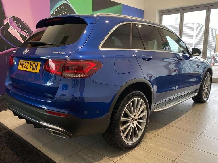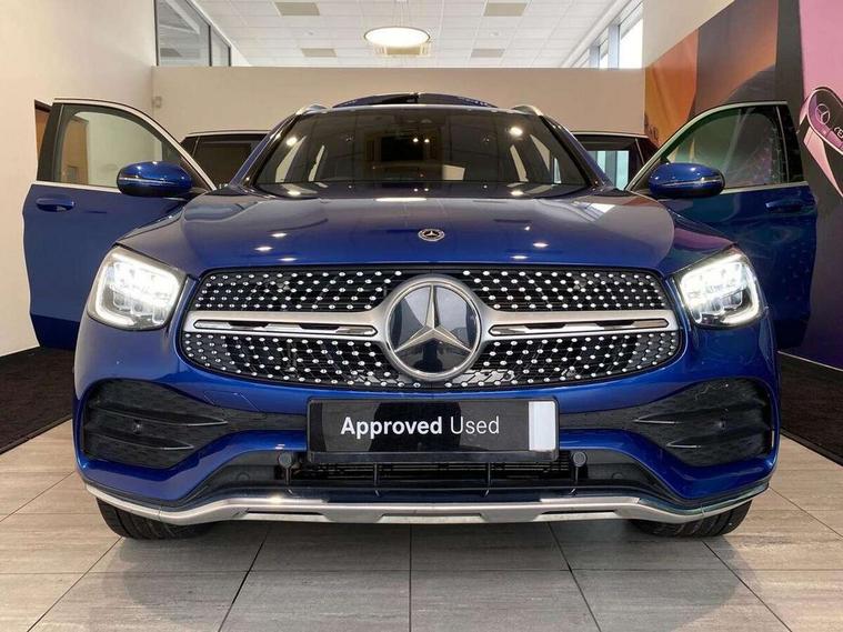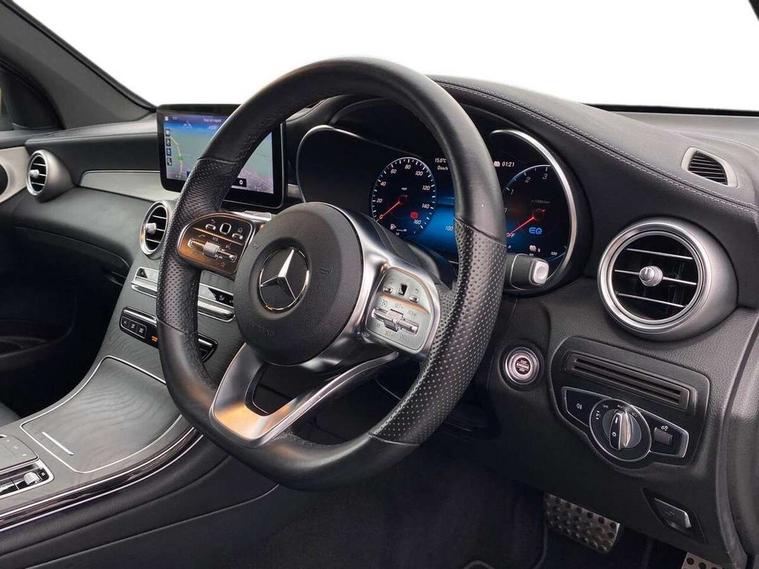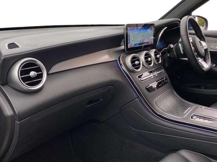 Active parking assist with parktronic system, Attention assist, Bluetooth interface for hands free telephone, Collision prevention assist plus, Cruise control with speedtronic variable speed limiter, Direct steer speed sensitive steering, DYNAMIC SELECT with a choice of driving modes (ECO, Comfort, Sport, Sport+ and Individual), Easy pack automatic powered tailgate, eCall emergency call system, ECO start/stop function, Hard disk navigation, Hey Mercedes Voice activation, Instrument cluster with12.3-inch digital instrument cluster display. High resolution instrument cluster screen with choice of three display styles, MBUX Interior assistant, Mercedes connect me with remote online services, Multi function trip computer, Outside temperature display, rear seatbelt status indicator, Remote and charging services plus, Remote boot release, Reversing camera, Service indicator (ASSYST), Smartphone integration with Apple CarPlay and Android auto, Traffic sign assist, 1 x 3 pin domestic 8m straight charging cable, 1 x type 2 and 3 phase 4m straight wallbox cable, 4MATIC permanent four wheel drive, 50 litre fuel tank, 9G TRONIC plus automatic transmission with steering column gear selector, DIRECT SELECT steering wheel gearshift paddles, Diesel particulate filter, Sports suspension tuned for improved handling and driving dynamics, 5 speakers, Frontbass loudspeakers, MBUX multimedia system with DAB digital radio and touchpad, Media display 10.25-inch touchscreen display, Pre installation for Mercedes Benz Link, USB ports x 2 in centre console, Adaptive brake lights, Aluminium roof rails, AMG bodystyling - AMG front apron with sporty air intakes and chrome trim element, AMG diffuser-look rear apron with insert in black, Body colour door mirrors, Body coloured bumpers, Electric windows one touch open/close, Electrically adjustable and heated door mirrors, Front, side and rear exterior chrome trim, Headlamp assist automatic headlamp activation, High level LED brake light, LED high performance headlamps with integrated LED daytime running lights, LED tail lamp, Motor way mode function and locator lighting, Privacy glass with dark glass from B pillar backwards, Radiator diamond grille, Rain sensor windscreen wipers, Range adjustable headlights, Rear side wing doors, Rear wiper, Roof spoiler, Running boards, Tinted glass all round with single layer safety glass, Tinted rear windows, Two chrome plated tailpipe trim elements, Variable front intermittent wipers, 2 way rear head restraints, 3-spoke multifunction sport AMG steering wheel in black nappa leather with flattened bottom section, chrome insert and perforated leather in grip area, 40:20:40 split folding rear seats, Ambient lighting, AMG floor mats with edging and embroidered AMG lettering, AMG sports seats, Artico man-made leather upper dashboard with contrast topstitching, Automatic child seat recognition sensor, Black roof lining, Dividing net - rear, Double cup holder in centre console, Easy-pack removable load compartment cover, Front armrest with storage box, Front door sills with Mercedes Benz lettering, Front head restraints, Front passenger seat, Front seats with electric adjust (backrest, height and seat cushion inclination) with 4 way electric lumbar support and manual cushion depth adjust, Heated front seats, Height/reach adjustable steering column, Illuminated and lockable glove compartment, Leather upholstery, Pre-entry climate control, Rear top tether child seat ISOFIX attachment, Sports pedals with stainless steel surfaces and rubber studs, Steering wheel with touch control buttons, THERMOTRONIC 3 zone automatic climate control, Interior lighting pack - GLC, Mirror pack - GLC, Storage pack - GLC, 3 rear 3 point seatbelts, Active bonnet, Adaptive brake system with HOLD function and brake drying in the wet, ASR, Black seat belts, Brake calipers with Mercedes-Benz lettering + perforated brake discs, Child proof door locks, Dual-stage airbags - driver and front passenger, driver knee bag and window bags for driver, front passenger and rear passengers, Electronic parking brake, Electronic stability programme (ESP) with curve dynamic assist and cross wind assist, Front and rear seatbelt reminder, Front passenger seat occupancy sensor, Hill hold function, Radar-based recuperation, Tyre pressure monitoring system, Warning triangle and first aid kit, Alarm system/interior protection/immobiliser, Automatic door locking, KEYLESS-GO starting function, Remote central locking, Open pore black ash wood trim, 20" AMG multi spoke design alloy wheels painted in titanium grey with high sheen finish, Run flat tyres, Summer tyres,