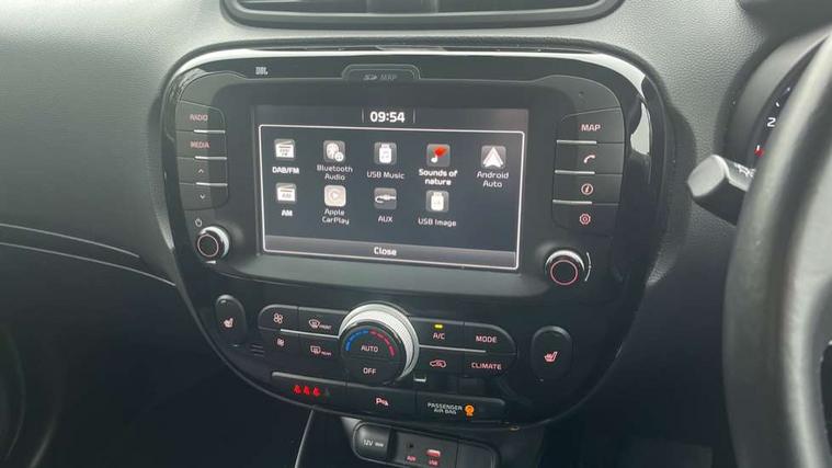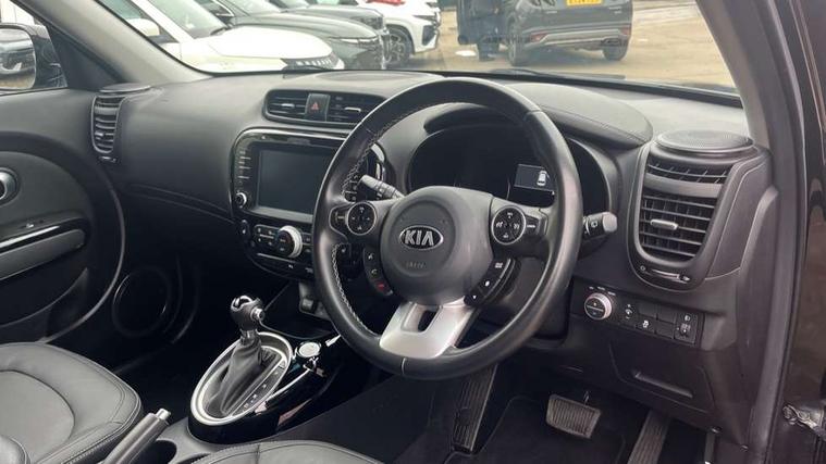 8" Navigation with apple car play/Android Auto, Bluetooth connectivity with voice control, Cruise control + speed limiter, Emergency stop signalling system, Flex Steer variable steering settings, Front and rear parking sensors, PAS, Reversing camera, Supervision cluster, Trip computer, Diesel particulate filter, Bluetooth audio streaming, DAB Radio/CD + MP3, Infinity premium sound system with 8 speakers and subwoofer, Steering wheel mounted audio controls, USB and auxiliary socket, Auto dimming rear view mirror, Automatic lighting control, Black high gloss door mirrors, Black high gloss front & rear bumper inserts, Body colour door handles, Body colour door mirrors, Chrome door handles, Chrome grille, Electric adjustable door mirrors, Electric folding door mirrors, Electric front windows/one touch facility, Electric rear windows, Front fog lights, Heated door mirrors, LED daytime running lights, LED rear lights, Privacy glass tailgate, Rain sensing front wipers, Rear privacy glass, Rear wash/wipe, Roof rails, Tinted glass, Variable intermittent front wash/wipe, 12v power outlet - front, 12V power point in luggage area, 60/40 split folding rear seat, Automatic air conditioning, Centre console storage tray, Centre console with cupholders, Cooled glovebox, Faux leather console surround, Faux leather door trim, Front head restraints, Gloss black door armrest, Heated front seats, Height adjustable driver's seat, High gloss black steering wheel trim, Illuminated ignition key hole, Isofix child seat attachment, Leather steering wheel and gearshift, Leather upholstery, LED interior illumination, Load cover, Luggage area lamp, Luggage area under floor storage box, Luggage net with hooks, Mood lighting for front speakers, Portable LED luggage lights, Rear armrest, Rear headrests, Satin chrome interior door handles, Seatback pockets, Silver interior door handles, Sliding sunvisors with illuminated vanity mirrors, Tilt/telescopic adjustable steering wheel, Urban styling pack - Soul, 3x3 point rear seatbelts, ABS/EBD, Automatic unlocking of doors in case of impact, Curtain airbags, Driver/Front Passenger airbags, Dual Side airbags, ESC + BAS + VSM + HAC, Front side airbags, Hill start assist, Side airbags, Traction control, Tyre pressure monitoring system, Deadlocks, Folding key, Immobiliser, Keyless smart entry with push button start, Remote central door locking, Speed sensitive auto door locking, High gloss black centre fascia, 18" alloy wheels - E Type, Temporary spare wheel,