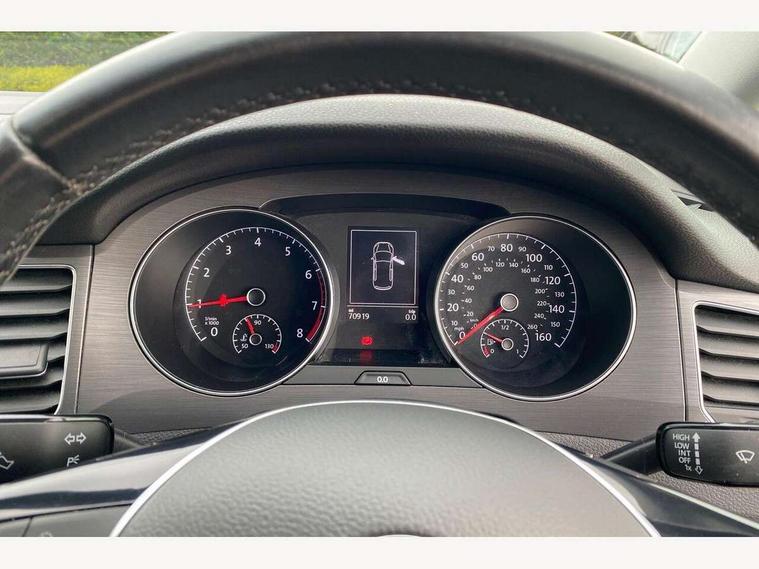 App-Connect, 'Lights On' Reminder warning buzzer, ACC - Adaptive cruise control with front assist, forward collision warning, distance monitoring, city emergency brake and speed limiter, Bluetooth Telephone preparation, Brake pad wear indicator warning light, Drive mode selector, Driver alert system, Driver profile selection, Exterior temperature gauge, Misfuelling protection device, PAS - speed related, Rev counter, Stop/start system, Trip and service interval display, Warning buzzer and light for front seatbelts unfastened, XDS electronic differential lock, CD/MP3/WMA, USB and SD card reader, aux-in, Composition media system, DAB Digital radio, Auto dimming rear view mirror, Automatic coming/leaving home lighting function, Black front air intake and radiator grilles, Body colour bumpers, Body colour door handles, Body colour door mirrors with integral indicators, Chrome louvres in grille, Chrome trimmed front air intake surrounds, Dusk sensor + auto driving lights, Electric front windows, Electric rear windows, Electrically adjustable and heated door mirrors, Heated rear windscreen, High level brake light, Integral rear window aerial, LED daytime running lights, LED rear lights, Rain sensor, Range adjustable headlights, Rear diffuser, Rear roof spoiler, Rear windscreen washer and wiper with interval delay, Twin exhaust tailpipe, Windscreen wipers/ intermittent wipe + 4 position delay, 12v socket in front centre armrest storage compartment, 12V socket in luggage compartment, 3 rear headrests, 3 spoke multi-function leather steering wheel and gearknob, 60/40 split folding rear seat, Boot lashing points, Centre console storage box, Cooled glovebox, Courtesy light delay, Driver and front passenger under seat drawer, Driver/front passenger seat height adjustment, Dust/pollen filter, Folding tables on front seatbacks, Front centre armrest with storage box and rear air vents, Front comfort seats, Front reading lights, Front seat back storage pockets, Grab handles, Height/reach adjust steering wheel, Isofix preparation for 2 rear child seats, Load through provision, Luggage compartment cover, Luggage compartment lighting, Overhead storage box, Pearl grey headlining, Rear armrest with 2 cupholders and load through provision, Rear reading lights, Storage box in luggage compartment, Storage compartments in doors, Sunvisors with illuminated vanity mirrors, Variable boot floor, height adjustable and removable, White adjustable panel illumination, Mirror pack - Golf, 3 point height adj front seatbelts + pretensioners, 3 rear 3 point seatbelts, ABS, Active pedestrian safety system, Automatic post collision braking, Child locks on rear doors, Door open warning reflectors, Driver/Front Passenger airbags, Driver/Passenger whiplash optimised head restraints, Drivers knee airbag, Electronic parking brake with auto hold, Electronic tyre pressure monitoring, ESP with EDL + ASR, Front and rear curtain airbags, Front passenger airbag deactivation, Front side airbags, HBA (Hydraulic Brake Assist), Pre crash system, Predictive pedestrian protection, Ventilated front disc brakes, Alarm with interior protection, Electronic engine immobiliser, Remote central locking with 2 remote folding keys, Brushed dark metal decorative inserts, Chrome-plated light switch surround, Polar night black centre console, Steel space saver spare wheel,