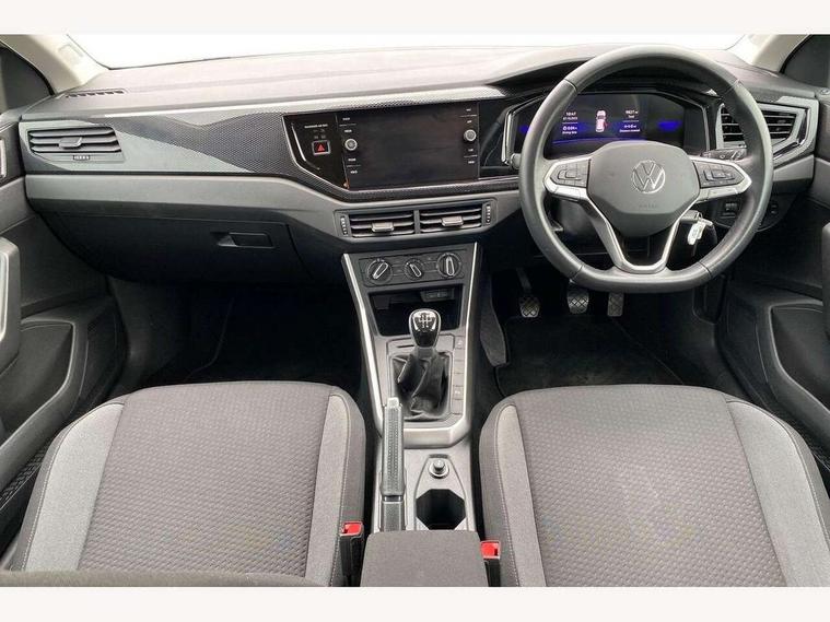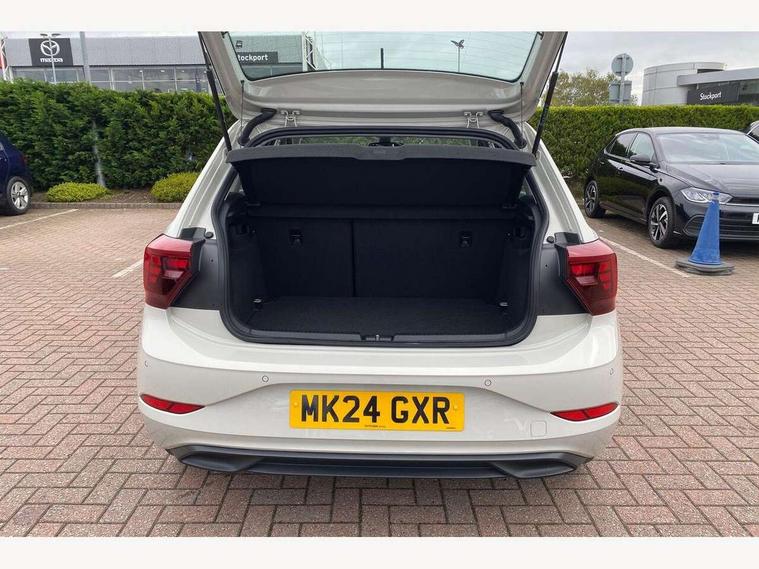Advanced driver attention and drowsiness monitor, Bluetooth mobile phone interface, Cruise control + speed limiter, Dynamic road sign display, Emergency call service, Lane keeping system Lane Assist, Power assisted speed sensitive steering, Preparation for navigation system with media and internet package, Preparation for We connect and We connect plus, Speedo and rev counter, electronic odometer, trip, service interval display and exterior temperature gauge, Standard rear axle, Trip computer, Warning signal and warning light for front and rear seatbelts not fastened, Washer fluid level indicator, Wireless app connect, Front wheel drive, Rear shock absorpion, Start-stop system with battery regeneration (recuperation - energy recovery during braking), DAB Digital radio, Diversity antenna for FM reception, Front and rear 6 speakers, Automatic dimming interior rear view mirror, Automatic headlight control with LED separate daytime running lights with coming/leaving home function, Body colour bumpers with chrome inserts, Body colour door handles, Body colour door mirrors, Electric front windows, Engine badge deletion, Headlight range adjustment, Heat insulating and laminated safety glass windshield, Heat insulating darkened glass in side and rear windows, Heat insulating glass windscreen, LED Headlights, LED rear combination lamps, Power folding adjustable/heated exterior mirrors and front passenger exterior mirror lowering function, Rain sensor, Rear electric windows, Rear fog light, Rear side wing doors, Rear windscreen washer and wiper with interval delay, Third brake light, 12V power socket in centre console, 2 front and 2 rear reading lights with switch off delay and dimmer, 2 USB-C ports in the front, 2 USB-C charging sockets on the center console in the rear, 3 rear head restraints, 60/40 split folding rear seat and rear seat bench not split, Ceramique roof lining, Chrome plated radiator grille inserts, air vent surrounds and light switch surrounds, Door and side trim panel, Driver and front passenger seat height adjustment, Driver/passenger sunvisors with illuminated vanity mirrors, Front centre armrest, Front seat backrest storage pockets, Front standard seats, Handbrake lever handle in leather, Hartley/Thomas cloth upholstery, Headliner in recycled material, Isofix child seat preparation easy-fit (for two outer rear seats, and front passenger seat) compatible with I-size, Leather trimmed gear knob, Luggage compartment cover, Luggage compartment lighting, Removable luggage compartment floor, Single front passenger seat, Standard climatic zones, Standard pedal cluster, Three spoke leather wrapped multifunction steering wheel, Light and vision pack - Polo, 3 point height adj front seatbelts + pretensioners, 3x3 point rear seatbelts, ABS, Driver and front passenger airbag with front passenger airbag deactivation, Drivers and front passengers safety optimised head restraints, ESC (Electronic stability control) + EDL (Electronic Differntial lock) and ASR (Traction control), Extended and predictive pedestrian/ cyclist protection, Front assist with autonomous emergency braking (for Adaptive Cruise Control ACC up to 130 mph), Front curtain and side airbags with center airbag, Front disc brakes, Hill hold control, Manual child lock in rear doors, Rear drum brakes, Single tone horn, Tyre pressure loss indicator, Alarm with interior protection, Anti-theft alarm system with interior monitoring, backup horn, and towing protection, Anti-theft wheel bolts, Electronic engine immobiliser, Lava stone black gloss/matt decorative inserts in dash and front door panels, Low rolling resistance tyres,