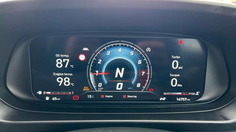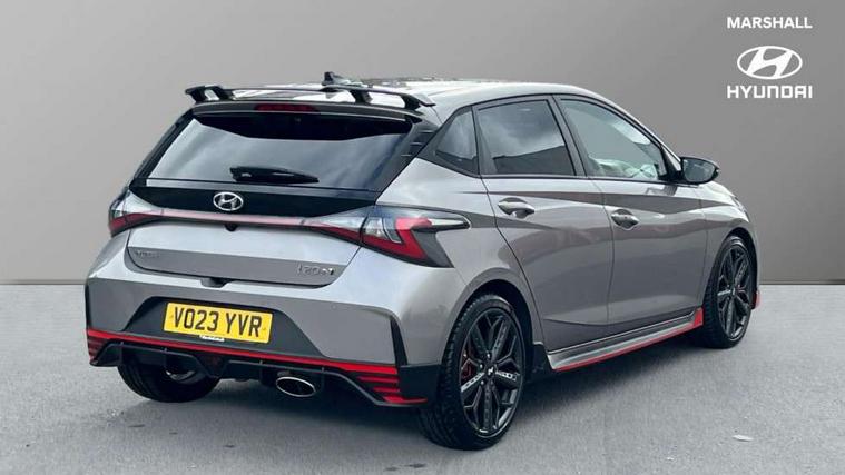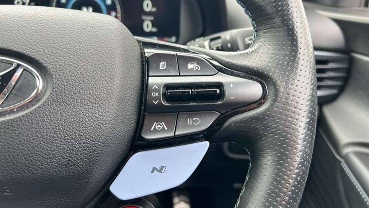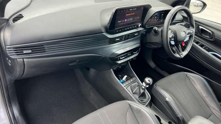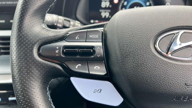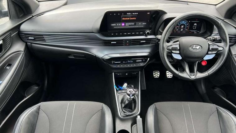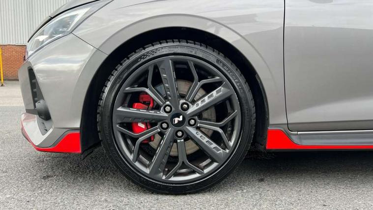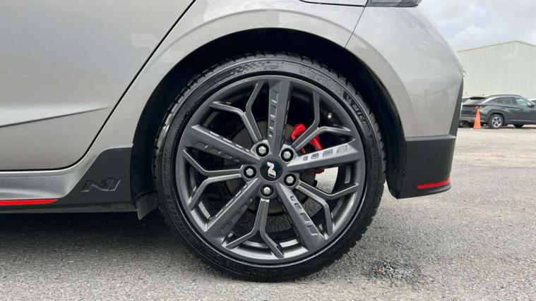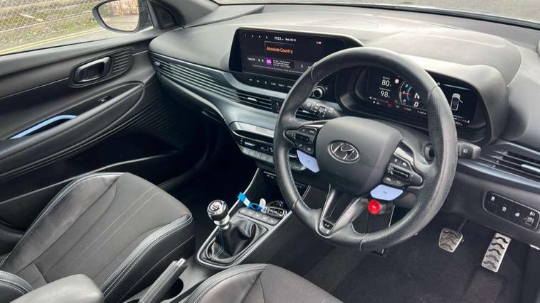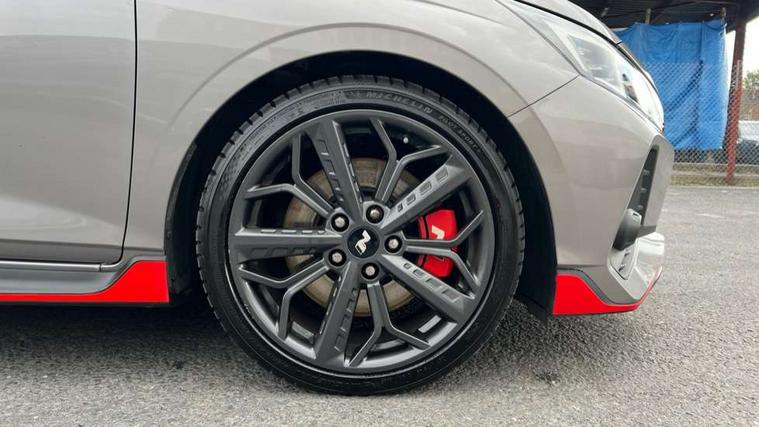 10.25" digital supervision cluster, 10.25" touchscreen centre console display satellite navigation including traffic messaging channel, map care and live services, Apple car play/Android Auto, Bluetooth connectivity with voice recognition, Cruise control + speed limiter, Drive mode selector, Driver alert system, eCall emergency call system, Electric power steering, Emergency stop signalling system, Forward collision assist with pedestrian monitoring and cycle detection, Haptic steering, Intelligent speed limit warning, ISG - automatic start/stop, Lane departure warning system, Lane keep assist, N corner carving differential - mechanical limited slip differential, N custom mode, N grin control system, N Rev matching system, Rear parking sensor, Rear view camera with dynamic limitation singnalling, Trip computer, Wireless charging pad, Launch control, Vehicle Stability Control (VSC), Auxiliary input socket, DAB Digital radio, Steering wheel mounted audio/telephone controls, USB connection, Adjustable intermittent front windscreen wipers with aero wiper blade, Auto dimming rear view mirror, Automatic defog system for front windscreen, Automatic headlights with dusk sensor, Automatic windscreen wipers with rain sensor, Black radiator grille with integrated N logo, Black window surrounds, Body colour exterior door handles, Drivers one touch up/down with anti-trap, Electric adjustable heated door mirrors, Electric folding door mirrors, Electric front windows, Electric rear windows, Front fog lights, Gloss black door mirrors with integrated indicators, High beam assist, LED rear combination lights, MFR - LED headlights, Privacy glass - Rear windows and tailgate, Rear apron with integrated diffuser and red accents, Rear fog lights with N exclusive triangular lamp, Rear roof spoiler with integrated LED brake light, Rear side wing doors, Rear Windscreen Wiper - Intermittent Function, Shark fin antenna, Side skirts with red accents, Signature LED daytime running lights integrated into headlamp, Static Cornering lights, Tinted windows, 12v power outlet - front, 3 seat bench in 2nd row, 60/40 split folding rear seat, Adjustable head restraints, Aluminium sports pedals, Black roof liner, Blue interior mood lighting, Climate control, Driver/passenger sunvisors and illuminated vanity mirrors, Front armrest with storage box, Front map reading lights, Heated front seats, Heated steering wheel, Height adjustable driver's seat, Height/reach adjustable steering column, Isofix rear child seat preparation, Leather wrapped gear knob with N logo, Leather wrapped steering wheel with N logo, Luggage board, Luggage compartment lighting, Map pocket in rear seats, N sport seats in fabric/leather upholstery with performance blue stich detail, Parcel shelf, Satin chrome interior door handles, Single front passenger seat, Sound generator with variable silencer control, 3x3 point rear seatbelts, Anti-lock brake system (ABS), Autonomous emergency braking, Childproof rear door locks, Curtain airbags, Driver/Front Passenger airbags, ESP, Fasten seatbelt reminder, Front seatbelt pretensioners, Front side airbags, Height adjustable front seatbelts, Hill start assist control (HAC), Impact sensing auto door unlocking, Manual handbrake, N performance braking system with red calipers and N logo, Passenger airbag deactivate switch, Tyre pressure monitoring system, Deadlocks, Immobiliser, Locking wheel nuts, Perimeter alarm, Rear occupant alert, Remote central locking, Smart key with keyless entry and engine start/stop button, Speed sensitive auto door locking, Black N exclusive interior trim, 18" Matt grey light alloy wheels, Pirelli P-Zero tyres, Tyre repair kit,