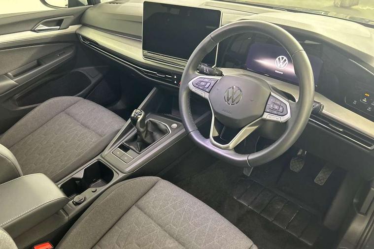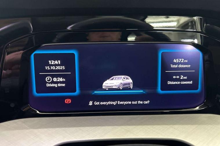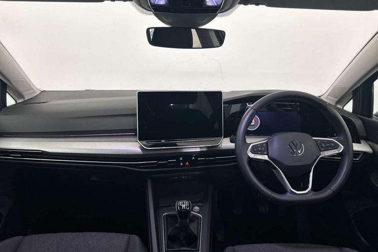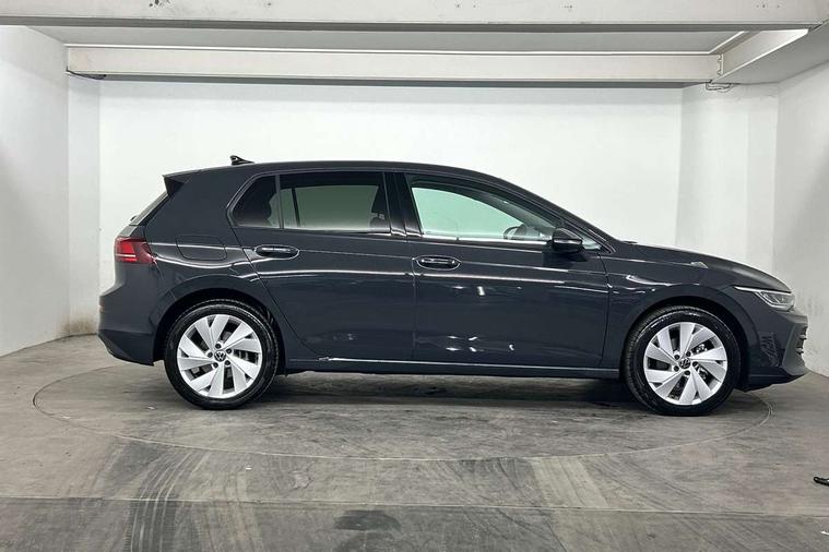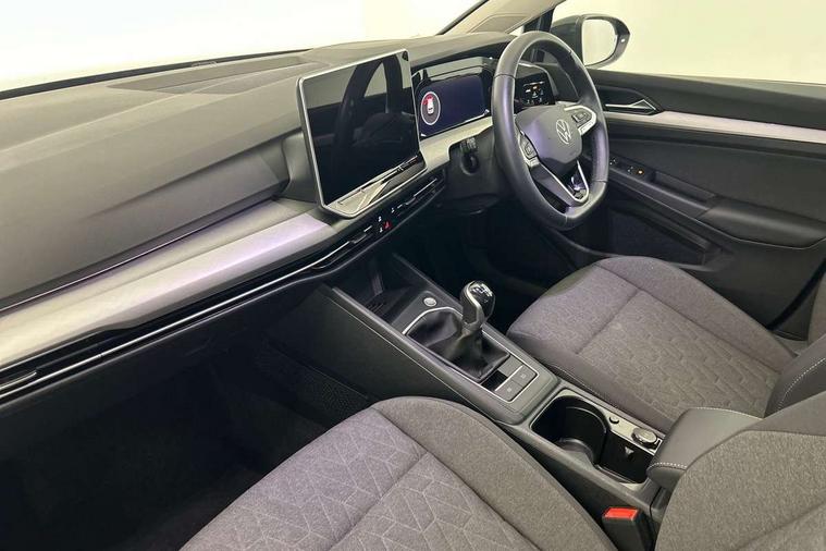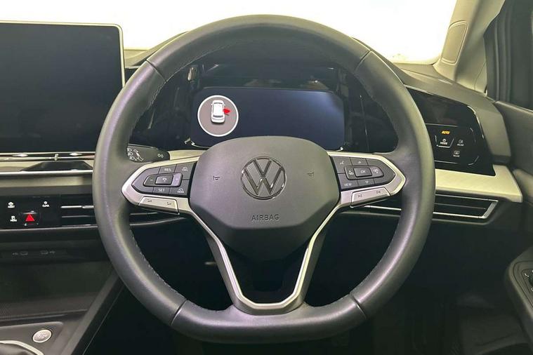 Activated carbon canister, Adaptive cruise control (ACC), Advanced driver attention and drowsiness monitor, Dynamic road sign display, E-Sim card for online connectivity, eCall emergency call system, Multi-color Digital cockpit pro, selection of different info profile possible, Multifunction front facing camera for distance control, Navigation system, Oncoming vehicle braking when turning including swerve support, Preparation for light assist system, Speed limiter, Speedo, rev counter, electronic odometer, trip, service interval display, exterior temperature and fuel gauge, Voice enhancer and voice control, Warning signal and warning light for front and rear seatbelts not fastened, We connect plus preparation, We connect preparation, Wireless app connect, Petrol Particulate Filter, Start-stop system with battery regeneration (recuperation - energy recovery during braking), XDS electronic differential lock for improved traction and handling, 2 USB C ports in front, 2 USB charging sockets on the centre console in the rear charging capacity upto 45W, Comfort telephony + wireless charging, without wireless aerial connection, Digital radio reception (DAB), Diversity antenna for FM reception, Gaming platform via car app, Infotainment system with 12.9" display, Mobile phone interface with inductive charging feature, 3rd brake light, Auto dimming rear view mirror, Auto headlights, Automatic headlamp activation with Coming home and Leaving home feature, Body colour door handles, Body colour door mirrors, Exterior ambient lighting with illuminated door handles, Exterior mirrors convex on the left and aspherical on the right, Front and rear electric windows, Heat insulating windshield made of laminated glass, LED daytime running lights, Rain sensor, Rear exhaust tailpipe, Rear fog light on one side and reversing lights on both sides, Rear side wing doors, Rear tinted glass 65% light absorbing from B pillar backwards, Rear windscreen washer and wiper with interval delay, Remote electrically foldable door mirrors, puddle lights and reverse activated passenger's door mirror, Standard bumpers, Welcome light with surround lighting, 12V socket in front centre console, 12V socket in luggage compartment, 3 rear head restraints, 3 seat bench in 2nd row, Chrome plated radiator grille inserts, air vent surrounds and light switch surrounds, Front centre armrest, Front head restraints, ISOFIX anchors for child seats on outer rear bench seats and on front passanger seat compatible for i-Size, Leather gearshift handle, Luggage compartment lighting, Rear cupholder and loadthough, Single front passenger seat, Soul black instrument panel, Split folding backrest with centre armrest and unsplit rear seat bench, Standard pedal cluster, Storm grey roof lining, Sun visors with illuminated vanity mirrors, Parking and comfort pack - Golf Estate/Hatchback, 3 point height adj front seatbelts + pretensioners, 3 rear three point seatbelts, ABS, Autonomous emergency braking front assist with pedestrian and cyclist monitoring, Child locks on rear doors, Driver and front passenger airbag with front passenger airbag deactivation, Electronic parking brake with auto hold, ESC (Electronic Stability Control), Extended pedestrian protection measures, Rear disc brakes, Two tone horn, Tyre pressure loss indicator, Volkswagen roadside assistance, Alarm with interior protection, Anti theft wheel bolts, Keyless start with SAFE lock, Preparation for alcohol interlock, Nature cross brushed decorative inserts for dashboard and front door panels,