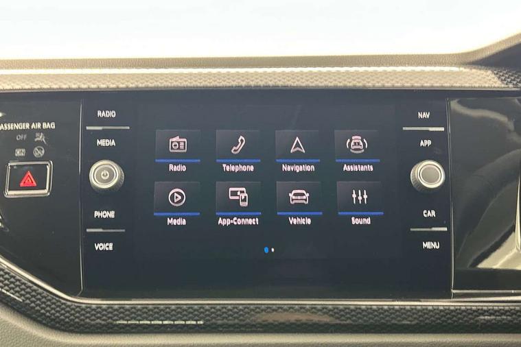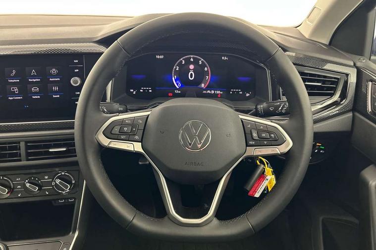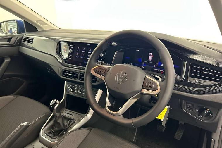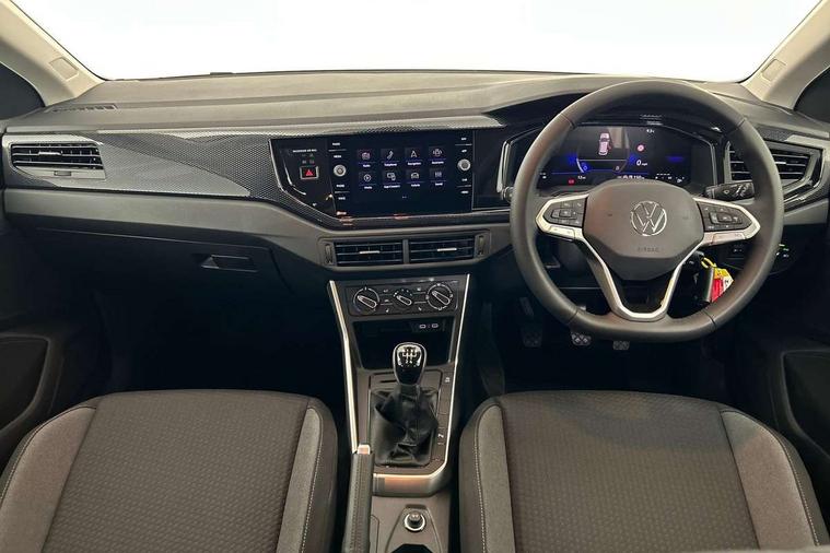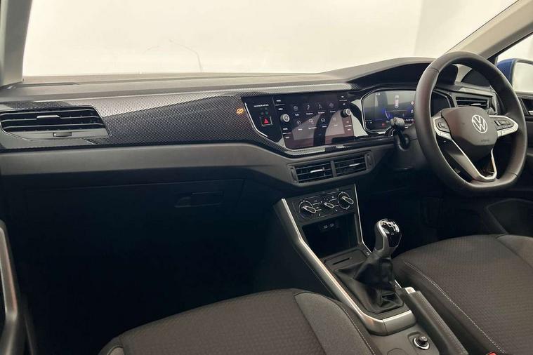 Adaptive cruise control without follow-to-stop and speed limiter, Advanced driver attention and drowsiness monitor, Bluetooth mobile phone interface, Dynamic road sign display, Emergency call service, Multifunction front facing camera for distance control, Park distance control, Power assisted speed sensitive steering, Preparation for navigation system with media and internet package, Preparation for We connect and We connect plus, Rear view camera, Speedo and rev counter, electronic odometer, trip, service interval display and exterior temperature gauge, Standard rear axle, Travel Assist - Lane keeping system and traffic jam assist, Travel assist including emergency assist, Trip computer, Warning signal and warning light for front and rear seatbelts not fastened, Washer fluid level indicator, Wireless app connect, Front wheel drive, Rear shock absorpion, Start-stop system with battery regeneration (recuperation - energy recovery during braking), DAB Digital radio, Diversity antenna for FM reception, Front and rear 6 speakers, Automatic dimming interior rear view mirror, Automatic headlight control with LED separate daytime running lights with coming/leaving home function, Body colour bumpers with chrome inserts, Body colour door handles, Body colour door mirrors, Electric front windows, Engine badge deletion, Headlight range adjustment, Heat insulating and laminated safety glass windshield, LED Headlights, LED rear combination lamps, Power folding adjustable/heated exterior mirrors and front passenger exterior mirror lowering function, Rain sensor, Rear electric windows, Rear fog light, Rear side wing doors, Rear tinted glass from B-pillar backwards approx 65% tinted, Rear windscreen washer and wiper with interval delay, Third brake light, 12V power socket in centre console, 2 front and 2 rear reading lights with switch off delay and dimmer, 2 USB-C ports in the front, 2 USB-C charging sockets on the center console in the rear, 3 rear head restraints, 60/40 split folding rear seat and rear seat bench not split, Ceramique roof lining, Chrome plated radiator grille inserts, air vent surrounds and light switch surrounds, Door and side trim panel, Driver and front passenger seat height adjustment, Driver/passenger sunvisors with illuminated vanity mirrors, Front centre armrest, Front seat backrest storage pockets, Front standard seats, Handbrake lever handle in leather, Hartley/Thomas cloth upholstery, Headliner in recycled material, Isofix child seat preparation easy-fit (for two outer rear seats, and front passenger seat) compatible with I-size, Leather trimmed gear knob, Luggage compartment cover, Luggage compartment lighting, Removable luggage compartment floor, Single front passenger seat, Standard climatic zones, Standard pedal cluster, Three spoke leather wrapped multifunction steering wheel, Light and vision pack - Polo, 3 point height adj front seatbelts + pretensioners, 3 point seat belt for centre rear seat, 3 point seatbelts, outer rear with ECE lable, ABS, Driver and front passenger airbag with front passenger airbag deactivation, Drivers and front passengers safety optimised head restraints, ESC (Electronic stability control) + EDL (Electronic Differntial lock) and ASR (Traction control), Extended and predictive pedestrian/ cyclist protection, Front assist with autonomous emergency braking (for Adaptive Cruise Control ACC up to 130 mph), Front curtain and side airbags with center airbag, Front disc brakes, Hill hold control, Manual child lock in rear doors, Rear drum brakes, Single tone horn, Tyre pressure loss indicator, Alarm with interior protection, Anti-theft alarm system with interior monitoring, backup horn, and towing protection, Anti-theft wheel bolts, Electronic engine immobiliser, Lava stone black gloss/matt decorative inserts in dash and front door panels, 16" Torsby alloy wheels, Low rolling resistance tyres,