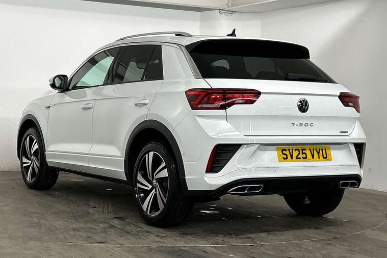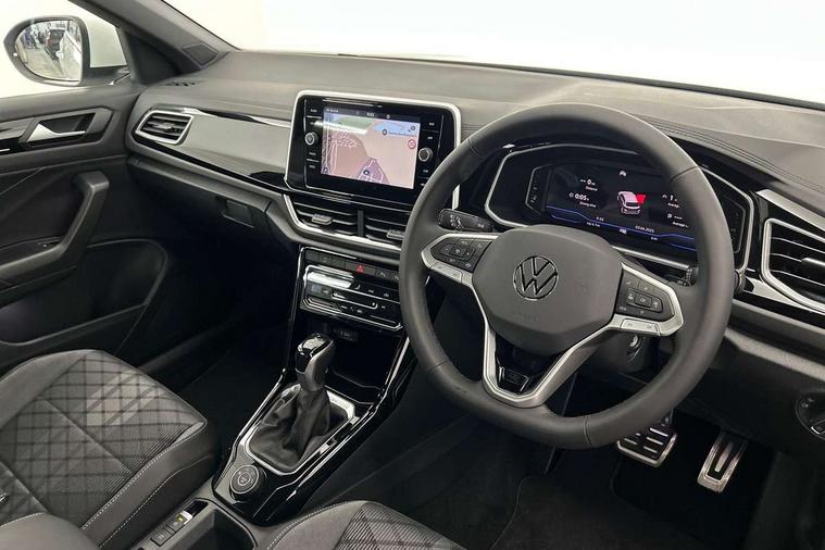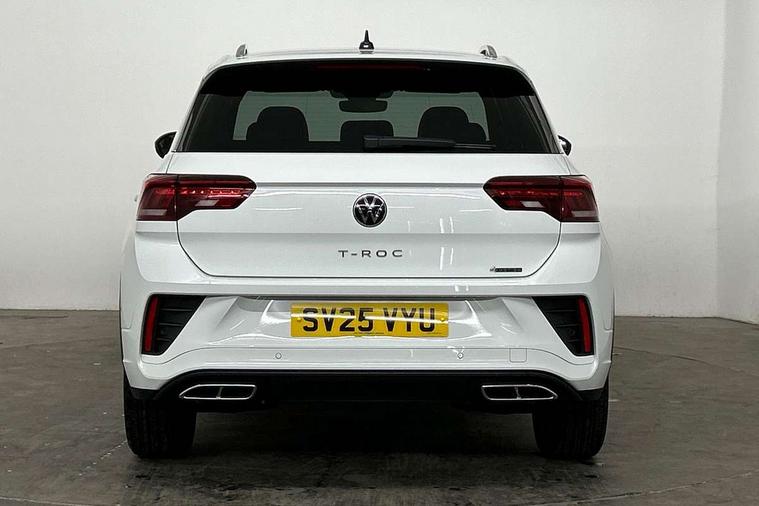 10.25" Digital cockpit pro, Advanced driver attention and drowsiness monitor, Emergency call service, Lane keeping system Lane Assist, Mobile phone interface, Modified key software - reduce switch off time for key status change to Long no motion, Online services, Park assist including front and rear parking sensors, Service interval indicator, Tailgate/trunk lid release from outside, Think blue trainer driver tips and journey analysis, Warning sound and light for front seatbelts unfastened, Wireless app connect, Battery regeneration during braking, Four wheel drive, Start/stop function with battery regeneration, DAB Digital radio, Diversity antenna for FM reception, Front and rear 6 speakers, Music playback - MP3, WMA and AAC files, Premium USB cable in choice of either Apple or Android smartphone compatibility, SD card slot, Simultaneous pairing of 2 compatible mobile devices, Title and cover art display, We Connect and We Connect Plus functionality, Auto dimming interior rear view mirror, Automatic hazard lights activation under emergency braking, Automatic headlight control with LED separate daytime running lights with coming/leaving home function, Body coloured exterior mirror housings and door handles, Electrically adjustable and heated door mirrors, Extended roof spoiler, Exterior mirrors aspherical on driver side, convex on front passenger side, External USB type C socket and charging sockets, Front windscreen wiper with intermittent wipe and 4 position delay, Heated rear window, LED 3rd brake light, LED rear combination lamps, LED rear number plate lights, Power windows with comfort operation and circuit breaker, Privacy glass for rear side windows and rear window, R-Line design body coloured bumpers, Rain sensor, Rear exhaust tailpipe, Rear fog light on one side and reversing lights on both sides, Rear side wing doors, Rear wash/wipe with intermittent wipe setting, Remote electrically foldable door mirrors, puddle lights and reverse activated passenger's door mirror, 12V power socket in centre console, 3 rear head restraints, 3 seat bench in 2nd row, 4 load lashing points in luggage compartment, Air care climatronic air conditoning system with active combination filter and 2-zone temperature control, Black roof lining, Chrome plated decorative trims, Chrome plated radiator grille inserts, air vent surrounds and light switch surrounds, Door and side trim panel with leatherette insert, Front + rear carpet mats, Front centre armrest, Front cupholders x 2, Front footwell illumination, Front reading light, Front scuff plates with R Line logo, Front seat back storage pockets, Glove compartment door with light, Instrument lighting, white adjustable panel illumination, Interior ambient lighting and surround lighting, Interior light delay, Isofix child seat preparation, Leather gearshift handle, Load-through provision with cup holder when folded down ('Unsplit rear seat bench, split folding backrest, with centre armrest), Luggage compartment lighting, Single front passenger seat, Stainless steel pedals, Storage compartment in left and right luggage area, Storage compartment in rear doors, Storage compartments in driver and front passenger doors, Sunvisors with illuminated vanity mirrors, Variable boot floor, height adjustable and removable, Driver assistance pack without proactive passenger protection - T-Roc, 3 point height adj front seatbelts + pretensioners, 3 point seatbelts in outer rear with ECE label, ABS, Child locks on rear doors, City emergency braking and pedestrian monitoring, Driver and front passenger airbag with front passenger airbag deactivation, Driver and front passenger safety-optimised head restraints, Drivers seatbelt reminder, Electronic parking brake, Electronic Stability Control (ESC) inc EDL (Electronic Differential Lock) and ASR (Traction Control), Front and rear passengers curtain airbag system including front side airbags, Hill start assist, Predictive pedestrian protection, Rear disc brakes, Two tone horn, Tyre pressure loss indicator, Volkswagen roadside assistance, Piano black decorative inserts in dashboard and front door trim panels, Trims for alloy wheels,