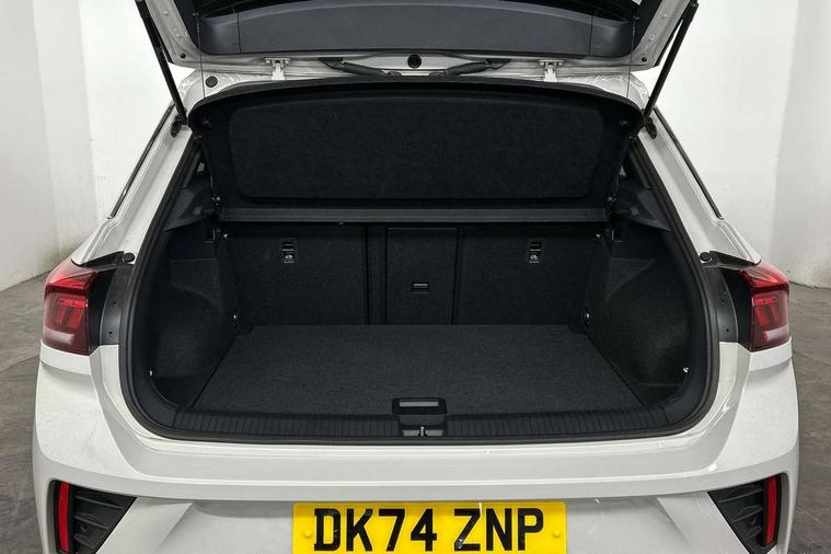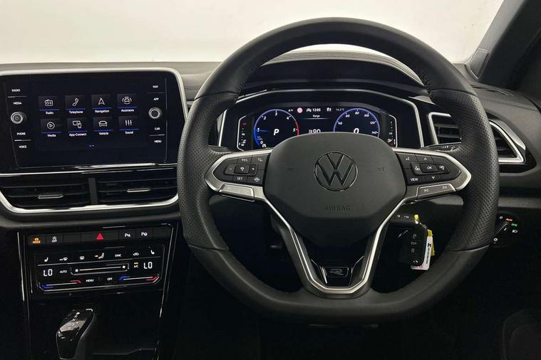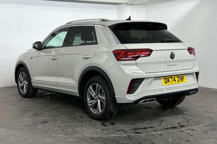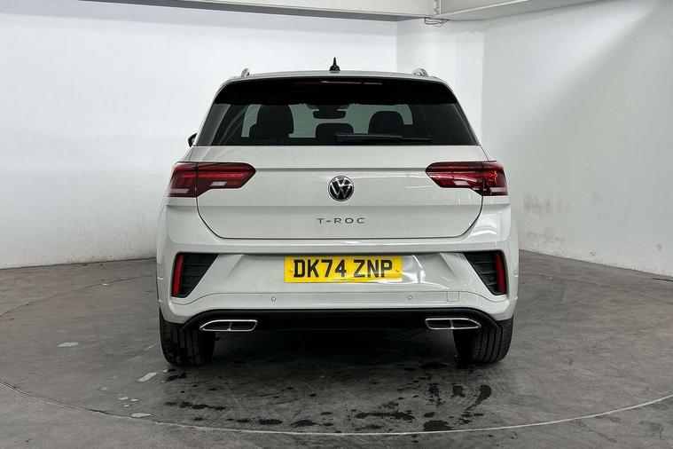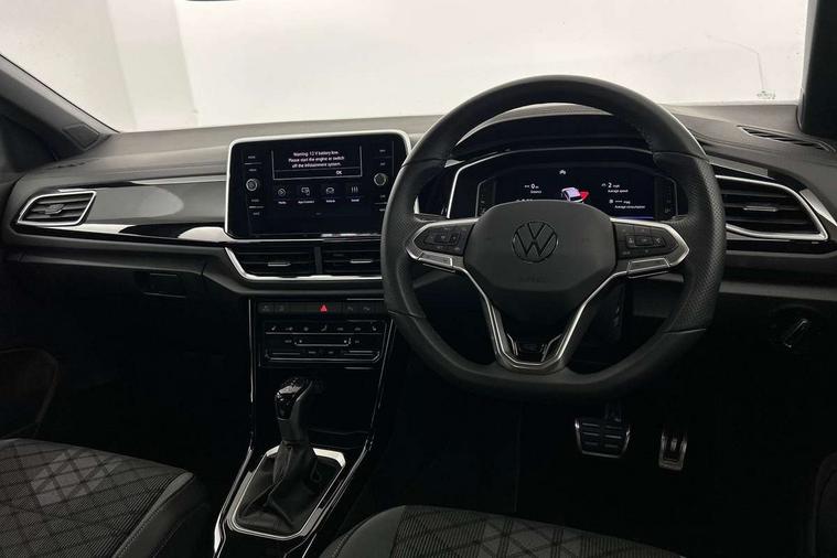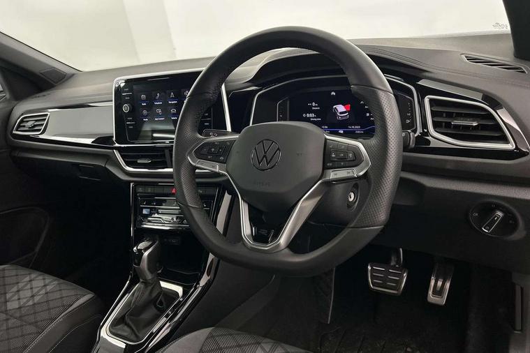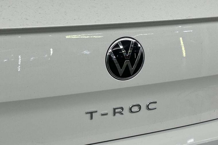 10.25" Digital cockpit pro, Advanced driver attention and drowsiness monitor, Dynamic road sign display, Emergency call service, Lane keeping system Lane Assist, Mobile phone interface, Modified key software - reduce switch off time for key status change to Long no motion, Online services, Park assist including front and rear parking sensors, Service interval indicator, Tailgate/trunk lid release from outside, Think blue trainer driver tips and journey analysis, Warning sound and light for front seatbelts unfastened, Wireless app connect, Battery regeneration during braking, Start/stop function with battery regeneration, DAB Digital radio, Diversity antenna for FM reception, Front and rear 6 speakers, Music playback - MP3, WMA and AAC files, Premium USB cable in choice of either Apple or Android smartphone compatibility, SD card slot, Simultaneous pairing of 2 compatible mobile devices, Title and cover art display, We Connect and We Connect Plus functionality, Auto dimming interior rear view mirror, Automatic hazard lights activation under emergency braking, Automatic headlight control with LED separate daytime running lights with coming/leaving home function, Body coloured exterior mirror housings and door handles, Electrically adjustable and heated door mirrors, Extended roof spoiler, Exterior mirrors aspherical on driver side, convex on front passenger side, External USB type C socket and charging sockets, Front windscreen wiper with intermittent wipe and 4 position delay, Heated rear window, LED 3rd brake light, LED rear combination lamps, LED rear number plate lights, Power windows with comfort operation and circuit breaker, Privacy glass for rear side windows and rear window, R-Line design body coloured bumpers, Rain sensor, Rear exhaust tailpipe, Rear fog light on one side and reversing lights on both sides, Rear side wing doors, Rear wash/wipe with intermittent wipe setting, Remote electrically foldable door mirrors, puddle lights and reverse activated passenger's door mirror, 12V power socket in centre console, 3 rear head restraints, 3 seat bench in 2nd row, 4 load lashing points in luggage compartment, Air care climatronic air conditoning system with active combination filter and 2-zone temperature control, Black roof lining, Chrome plated decorative trims, Chrome plated radiator grille inserts, air vent surrounds and light switch surrounds, Door and side trim panel with leatherette insert, Front + rear carpet mats, Front centre armrest, Front cupholders x 2, Front footwell illumination, Front reading light, Front scuff plates with R Line logo, Front seat back storage pockets, Glove compartment door with light, Instrument lighting, white adjustable panel illumination, Interior ambient lighting and surround lighting, Interior light delay, Isofix child seat preparation, Leather gearshift handle, Load-through provision with cup holder when folded down ('Unsplit rear seat bench, split folding backrest, with centre armrest), Luggage compartment lighting, Single front passenger seat, Stainless steel pedals, Storage compartment in left and right luggage area, Storage compartment in rear doors, Storage compartments in driver and front passenger doors, Sunvisors with illuminated vanity mirrors, Variable boot floor, height adjustable and removable, Driver assistance pack without proactive passenger protection - T-Roc, 3 point height adj front seatbelts + pretensioners, 3 point seatbelts in outer rear with ECE label, ABS, Child locks on rear doors, City emergency braking and pedestrian monitoring, Driver and front passenger airbag with front passenger airbag deactivation, Driver and front passenger safety-optimised head restraints, Drivers seatbelt reminder, Electronic parking brake, Electronic Stability Control (ESC) inc EDL (Electronic Differential Lock) and ASR (Traction Control), Front and rear passengers curtain airbag system including front side airbags, Hill start assist, Predictive pedestrian protection, Rear disc brakes, Two tone horn, Tyre pressure loss indicator, Volkswagen roadside assistance, Piano black decorative inserts in dashboard and front door trim panels, Trims for alloy wheels,