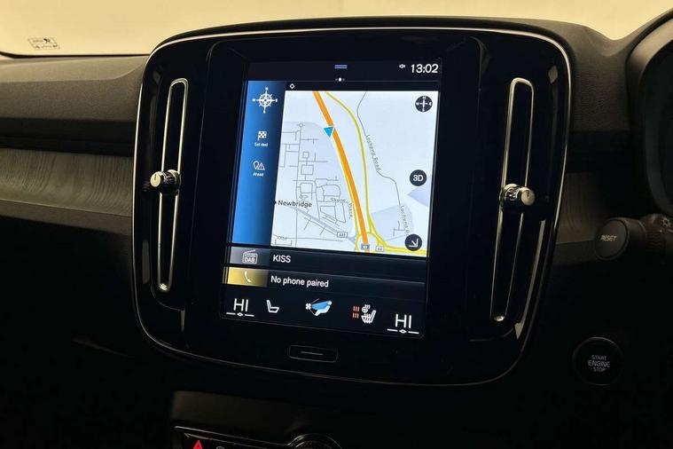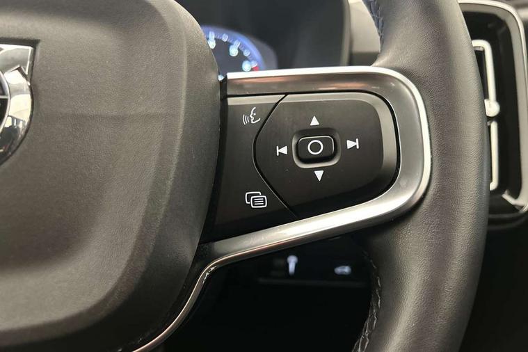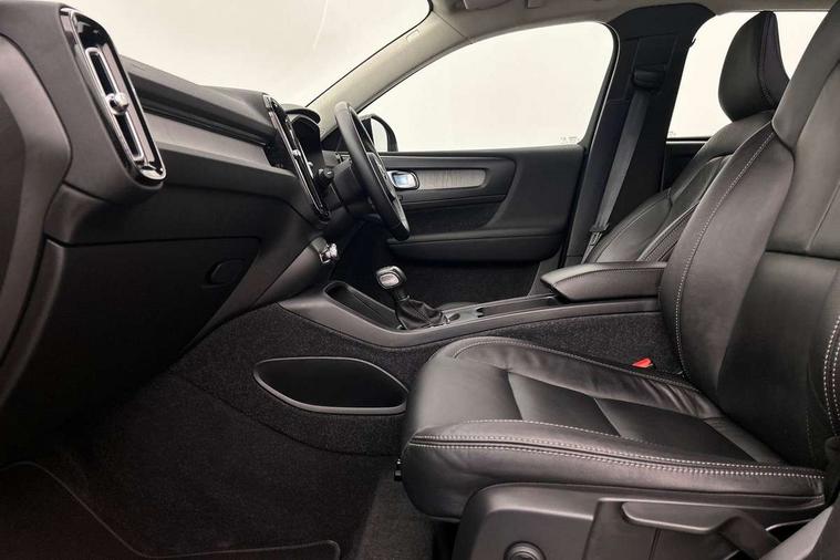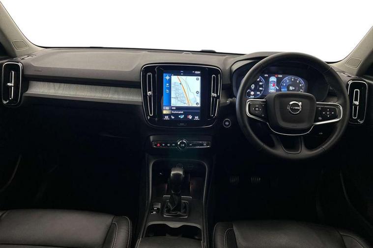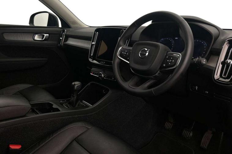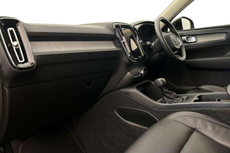 12.3" Active TFT crystal driver's instrument display, 9" centre console portrait touch screen, Adjustable steering wheel force, Bluetooth hands free telephone kit, Drive mode selector, E-call, Lane keep assist with driver alert control, Oncoming Lane Mitigation, Power operated tailgate, Sensus navigation with European mapping and traffic information, Speed limiter, Speed sensitive steering, Voice activated control for key functions, Volvo on call, Dynamic chassis, DAB Digital radio, Steering wheel mounted remote controls, Adaptive brake lights with high level LED brake lights, Auto dimming interior mirror, Automatic headlamp levelling, Chrome window surround, Colour coordinated auto folding and heated power door mirrors, Front aluminium tread plates, Front and rear electric windows, High gloss black front grille with chrome inserts, High gloss black sensus surround deco, High Gloss silver front and rear skid plate, Home safe and approach lighting, Integrated roof rails in silver, LED Headlights + Active high beam incorporating daytime running lights, Rain sensor with automatic windscreen wiper activation, Rear side wing doors, Rear wiper, Roof antenna, Roof spoiler, Visible VIN plate, 12V socket in front tunnel console and luggage compartment, 2 zone electronic climate control and rear air vent, 3 seat bench in 2nd row, 3 Spoke tailored steering wheel with chrome trim, 60/40 versatile split folding rear seat, A-pillar parking ticket holder, Bright metal luggage threshold, Centre console cupholders and storage, Floor mats, Front footwell illumination, Front headrests, Front reading light and theatre lighting, Glovebox bag hook, Height/reach adjustable steering column, Height/tilt adjustable driver's seat, Illuminated glovebox, Illuminated luggage compartment, Illuminated vanity mirrors, Isofix attachments on outer rear seats, Leather faced upholstery, Leather gearknob, Load protection net, Multi directional lumbar support, Power driver seat with memory + exterior mirrors memory, Rear armrest / integral cup holders / storage tray, Rear coat hook, Single front passenger seat, Underfloor cargo storage, Vanity mirror with ticket holder, Park assist pack - XC40, 3x3 point rear seatbelts, City safety includes pedestrian, cyclist and large animal detection and front collision warning with full auto brake, Drivers knee airbag, Dual stage driver/passenger airbags, Electronic parking brake with auto hold, First aid kit, Front and outer rear seatbelt reminder and pretensioners, Front seats SIPS airbags, Hill descent control, Hill start assist, Inflatable curtain, Passenger airbag cut-off device, Road sign information display, Run off Road Mitigation, Run off Road Protection, SIPS (Side Impact Protection System), Slippery road and hazard light alert, Stability and Traction Control with Spin control, Engine Drag Control and Corner Traction Control, Tyre pressure monitoring system, Vehicle deceleration control with Anti-lock Brake System, Electronic Brake Distribution and Emergency Brake Assist, Warning triangle, WHIPS whiplash protection system - front, Anti-theft alarm including immobiliser/volume sensor + level sensor, Care key with user defined top speed, Key integrated remote control central locking + fuel flap with deadlocking system and auto open/close power windows, Locking wheel nuts, Private locking for tailgate, Driftwood inlays,