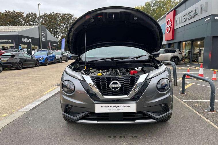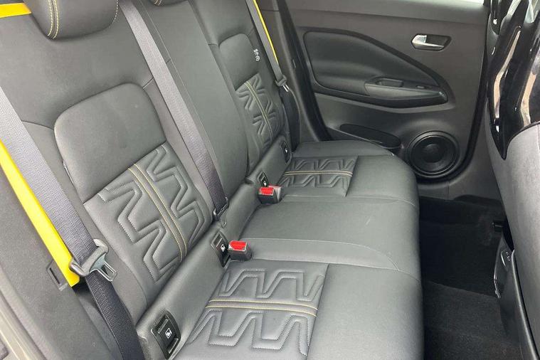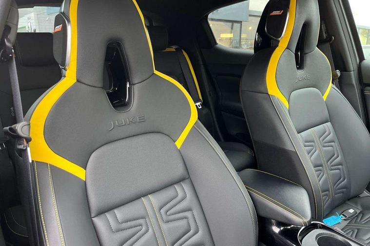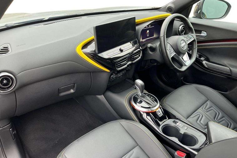 12.3" full colour TFT screen combimeter, Drive modes select (Eco, normal and sport), Emergency and breakdown call, Front parking sensor, Idle start/stop system, Intelligent driver alert system, Intelligent lane intervention, Lane departure warning system, Nissan connect 12.3" touch screen entertainment system, Nissan connect nav with TomTom traffic, Nissan connect services, Outside temperature sensor, Power Steering, Rear parking sensor, Stop/start button, Traffic sign recognition, Trip computer, Voice recognition, WiFi connectivity, Wireless Apple CarPlay and Google Android auto, Wireless Smartphone charger, 10 Bose speakers 6 speakers and 2 headrest speakers for driver/passenger seats, 2 X Rear console USB port, Bluetooth system, USB, Aux-in and 12V socket, Bose personal sound stage control, DAB Digital radio, Auto dimming frameless rear view mirror, Automatic hazard signal with emergency stop signal, Body colour door handles, Electrically adjustable door mirrors with integrated indicators, Follow me home headlights, Front and rear electric window with one touch driver window, Heated and auto folding door mirrors, High beam assist, LED 3rd brake light, LED daytime running lights, LED front fog lights, LED headlamps, LED rear fog lamp, LED rear lamps, One touch passenger window, Rain sensor windscreen wipers, Rear privacy glass, Rear side wing doors, Rear wiper, Roof spoiler, Shark fin roof antenna in solid Black, Three blink turn signal, 3 height adjustable rear headrests, 3 seat bench in 2nd row, 60/40 split folding rear seat, Automatic climate control, Card holder on driver sunvisor, Door ambient lighting, Driver seat back pocket, Driver side rear coat hanger, Driver/passenger sunvisors and vanity mirrors, Front and rear cabin lights, Front armrest, Front door pockets with bottle holders, Front head restraints, Front/rear passenger grab handles, Gear console ambient circle lighting, Height adjustable driver's seat, Internal chrome door handles, Leather gearshift knob, Luggage board, Luggage space lighting, Monoform sporty seats, Multifunction steering wheel, Passenger seat back pocket, Rear door bottle holders, Single front passenger seat, Smooth synthetic leather steering wheel, Steering wheel mounted gearshift paddles, Synthetic leather kneepad, Telescopic steering wheel adjustment, Two cupholders in front centre console, Two rear isofix child seat anchorage points with top tether, Welcome light and console tray ambient lighting, Gloss black exterior personalisation pack - Juke, Heat pack with height adjustable passenger seats - Juke, Interior personalisation pack - Juke, ProPilot pack - Juke Auto, ABS with EBD and brake assist, Active ride control, Active Trace Control, Driver and passenger airbags, Driver and passenger side airbags, Electric handbrake with auto hold function, Electronic Stability Programme (ESP), Front and rear curtain airbags, Height adjustable seatbelts, Hill start assist, Intelligent emergency braking with pedestrian and cyclist recognition, Rear door child safety locks, Seatbelt reminder for driver/front passenger and rear seats, Three 3 point rear seatbelts, Traction control, Tyre pressure monitoring system, VDC Dynamic Vehicle Control, Alarm, Immobiliser, Intelligent key and start push button with walk away lock and approach unlock functions, Remote central locking, 19" Akari Black alloy wheels, Tyre puncture repair kit,