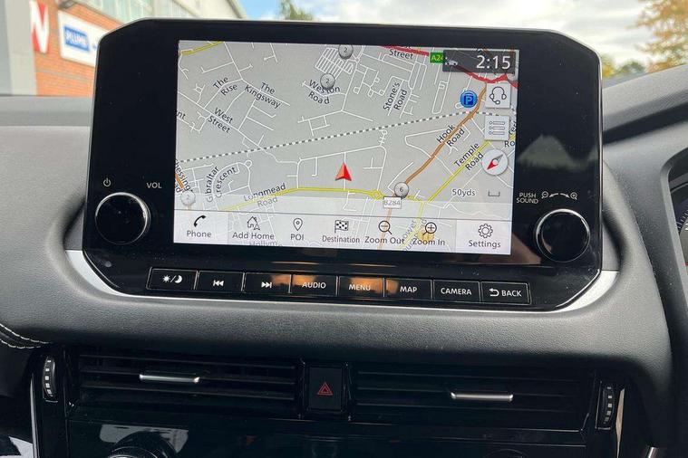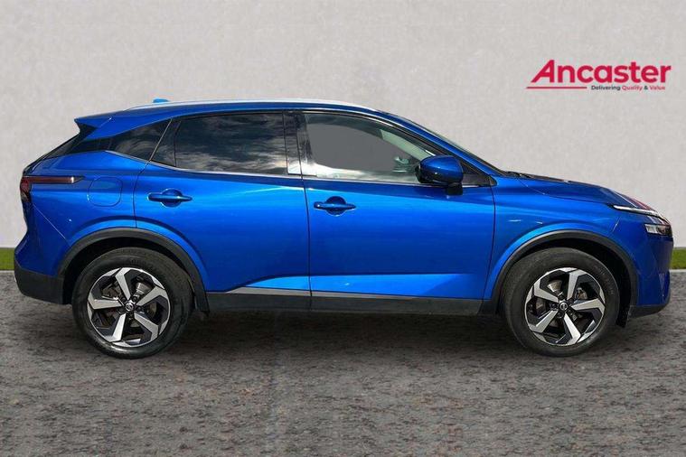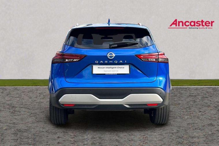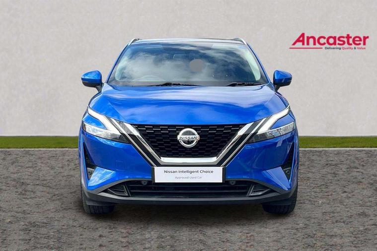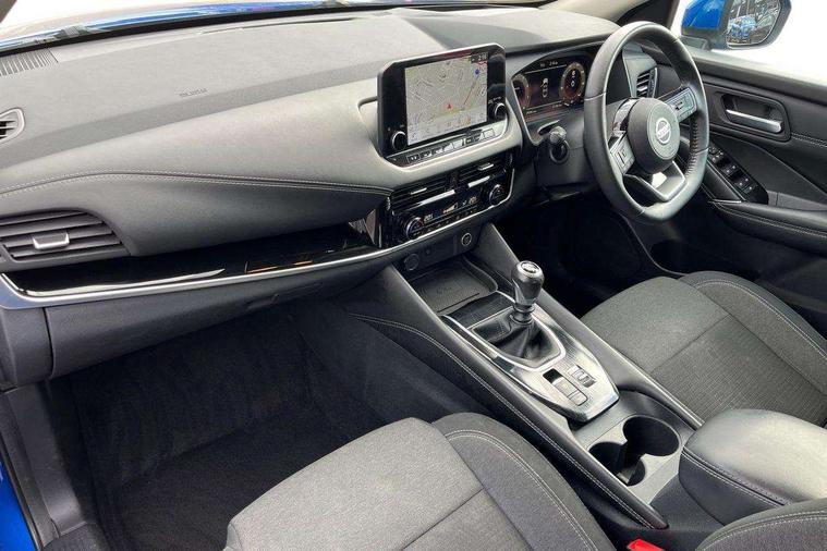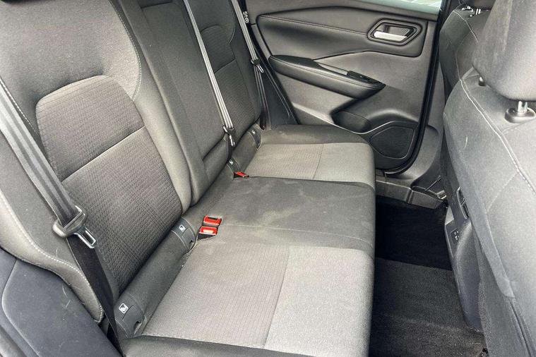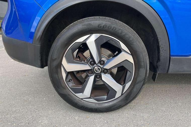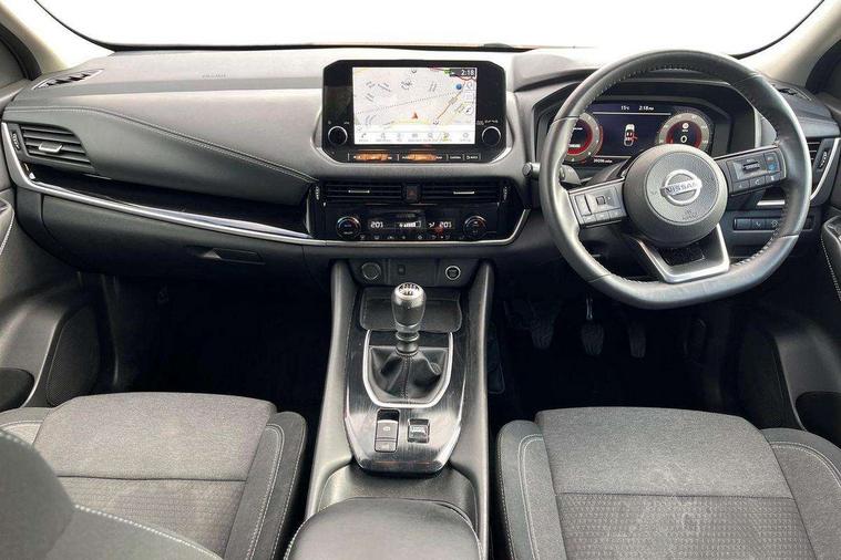 Android auto/Apple CarPlay (Wired), Blind spot warning, Drive modes (sport, normal, eco), Electric speed sensitive power steering, Emergency and breakdown call, Front and rear parking sensors, Full Digital 12.3" TFT Digital Combimeter, Idle stop/start system, Intelligent Cruise control (ICC), Intelligent driver alert system, Intelligent forward collision warning, Intelligent lane intervention, Lane departure prevention, Lane departure warning system, Moving object detection, Push button starter, Rear cross traffic alert, Traffic sign recognition, Trip computer, 6 speakers, AM/FM audio system with DAB, Bluetooth audio streaming, Front USB connections (Type-A and Type-C), Rear USB charging only ports (Type-A and Type-C), Auto dimming rear view mirror, Auto rear wiper when reversing, Body colour mirror caps, Body coloured door handles, Bodyside mouldings, Chrome side window finisher, Electric auto folding door mirrors, Electrically adjustable and heated door mirrors with LED turn indicator, Fixed panoramic glass roof with electric sunshade, Follow me home headlights, High beam assist, Intelligent auto headlights, LED daytime running lights, LED headlights with adaptive driving beam, LED rear lights, One touch front and rear electric windows with remote opening and closing, Partially body coloured bumpers, Privacy glass, Rear roof spoiler, Rear styling plate, Roof rails, Shark fin antenna, Splash free rain sensing wipers, Super UV and infrared cut glass, Three blink turn signal, 12v power socket in dashboard and luggage, 2 way electrical driver lumbar adjustment, 2x Rear coat hooks, 3 rear headrests, 4 grab handles, 6 Luggage hooks - 4 on floor, 2 on side, 60/40 split folding rear seat, Ambient lighting around centre console, Centre console storage tray, Chrome interior door handles, Cloth monoform upholstery, Driver and front passenger sunvisors with illuminated vanity mirrors, Driver seat back pocket, Dual zone automatic climate control with pollen filter, Front centre console and armrest, Front cupholder, Front door with bottle holders, Glovebox with light, Hard trunk cover, Height adjustable front headrests, Leather shift knob, Leather steering wheel, Luggage board system, Luggage space lighting, Manually adjustable passenger (slide recline + lifter), Multifunction steering wheel, Passenger seat back pocket, Rear armrest with 2 cupholders, Rear door bottle holders, Soft PVC kneepad, Steering wheel switches, Tilt/telescopic adjustable steering wheel, Two rear isofix child seat anchorage points with top tether, Welcome light and console tray ambient lighting, Connectivity Pack - Qashqai, Tech Pack (Drive Assist + HUD), 3x3 point rear seatbelt pretensioners + load limiters, ABS, ESP, EBD and brake assist, Active brake limited slip, Auto hold function, Child locks on rear doors, Curtain and front side, far side airbags, Driver and passenger airbags, Driver, passenger and 2nd row rear seat belt reminder, Electronic parking brake, Front seatbelt pretensioners + load limiters, Height adjustable front seatbelts, Hill start assist, Intelligent blind spot intervention, Intelligent front emergency braking with pedestrian, cyclist recognition and junction assist, Intelligent rear automatic braking, Tyre pressure monitoring system, Vehicle dynamic control, Capless fuel filler, Engine immobiliser, Nissan i-key, Remote central door locking with deadlocking, Thatcham Cat.1 alarm, 18" Diamond cut alloy wheels,