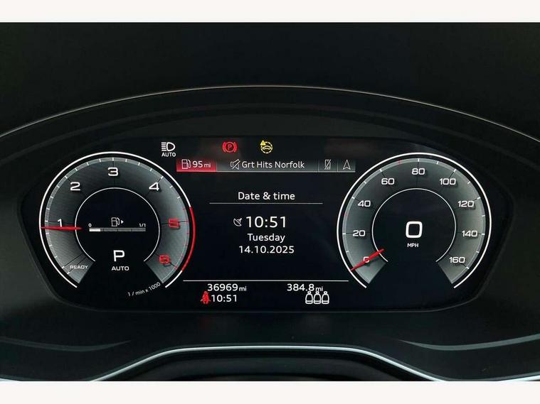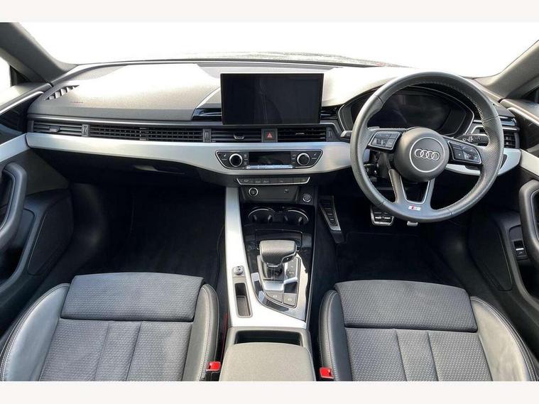 Audi connect safety and service (e-call), Audi connect with Amazon Alexa Integration, Audi drive select (Auto, Comfort, Dynamic, Efficiency and Individual), Audi parking system plus with front and rear sensors, Audi smartphone interface, Audi virtual cockpit - 12.3" full colour digital instrument cluster, vehicle/engine speed, Radio/media information+Driver assistance systems, Automatic start-stop system with coasting functionality and efficiency programme, Bluetooth interface, Electro-mechanical power steering, Email, calendar and text messages displayed via MMI, MMI nav+ with MMI touch - 10.1" high resolution MMI display, touch sensitive, 3D map, route/country info, dynamic route guide, personal route assist, Power operated tailgate, Rear view camera, Service interval indicator, Voice control system, Diesel particulate filter, Sports suspension lowered by 23mm, 8 passive loudspeakers, CD player, DAB digital radio reception, Two additional USB ports for rear passenger in rear centre console, Two SDXC card slots, Auto dimming door mirrors, Auto dimming rear view mirror, Body colour bumpers, Body colour door handles, Body colour front spoiler lip, Body colour side sill trim, Body coloured door mirrors, Electric adjustable heated door mirrors, Electric folding door mirrors, Electric front windows, Front fog lights, Honeycomb structure radiator grille in grained matt black, Kerb-view function for passenger side, LED headlights and rear lights with LED daytime running lights, LED side indicator lights integrated into door mirrors, LED third brake light, Matt aluminium silver tailpipe trim, Privacy glass, Rain and light sensors, Rear side wing doors, Rear wiper, S line badges on front wings, S line front and rear bumpers with side skirts, S Line rear diffuser in matt anthracite black with trim strip in matt aluminium silver, Side air inlets in grained matt black with matt aluminium silver inlay, Variable front intermittent wipers, Windscreen with acoustic glazing, 3 seat bench in 2nd row, 3 spoke high multifunction leather sport steering wheel with paddle shfit and S badging perforated leather grips, 4 way electric lumbar support for driver and front passenger, 40/20/40 split folding 3 seater rear bench seat, Adjustable steering column, Black cloth headlining, Black perforated leather gearknob, Contrast stitching on seats, steering wheel and gear lever gaiter, Deluxe 3 zone electronic climate control, Front centre armrest, Front head restraints, Front/rear floor mats, Heated front seats, Illuminated door sill trim with S logo, ISOFIX child seat mounting and top tether, Luggage compartment mat, Manual seat adjustment, Rear centre armrest, Rear headrests, Single front passenger seat, Stainless steel pedals, Sunvisors with vanity mirrors, Tool kit, LED interior light pack - A5/RS5, 3x3 point rear seatbelts, 6 airbags - Driver, front passenger, curtain and side airbags, Electromechanical parking brake, Electronic Stabilisation Control (ESC) including ABS, ASR and EDL, Front passenger airbag deactivation, Height adjustable front seatbelts, Hill hold assist, Manual child lock in rear doors, Multi collision brake assist, Pop-up bonnet for pedestrian protection, Pre sense city, Seatbelt monitoring, Tyre pressure warning, Variable restraint system, Warning triangle and first aid kit, Anti theft alarm system, Anti theft wheel bolts, Immobiliser, Keyless Go, Remote central locking, Matt brushed aluminium inlays, Tyre repair kit,