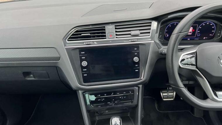 Adaptive cruise control ACC stop and go including speed limiter, App-Connect incl. App-Connect Wireless for Apple CarPlay and Android Auto, Bluetooth phone integration system, Distance control assist, Driver alert system, Driver profile selection, Dynamic road sign display, eCall emergency call system, Electromechanical speed sensitive power steering, Engine start/stop button, Lane keeping system Lane Assist, Lights on warning, Multifunction front facing camera, Outside temperature display, Premium multifunction display with multi colour display, Remote control boot opening, Rev counter, Revision / skills operating concept travel assistant, Service interval indicator, Speed limit display, Start/stop system with regenerative braking, Trip computer, Warning sound and light for doors and tailgate open, All wheel drive - 4Motion, Battery regeneration during braking, Diesel particulate filter, Misfuel prevention device for diesel engine, Selective Catalytic Reduction, XDS electronic differential lock for improved traction and handling, 4 X 20 watt output, 8 Speakers, Diversity antenna for FM reception, Radio, SD card slot, Simultaneous pairing of 2 compatible mobile devices, SMS functionality - read, compose and send SMS messages using touch-screen display, Title and cover art display, USB C ports, Auto dimming interior rear view mirror, Automatic headlight control system, Body colour door handles, Chrome moldings on the side windows, Coming/leaving home lighting function, Dynamic headlight range control, Front and rear electric windows, Heated rear window, High level 3rd brake light, Laminated safety glass windshield, heat and sound insulating, LED headlamps with LED separate daytime running light and dynamic cornering light, LED rear combination lamps, LED rear number plate lights, License plate carrier in front and rear, Poor weather light and cornering light, R Line body kit, R Line side sills, Rain sensor windscreen wipers, Rear exhaust tailpipe, Rear fog lamp, Rear side wing doors, Rear spoiler in R style, Rear windscreen washer and wiper with interval delay, Side and rear windows in heat insulating glass, Trailer Stability Programme, Unique R Line badging, Windscreen wipers/ intermittent wipe + 4 position delay, 12V outlet in center console rear and in luggage compartment, 12V outlet in front and tray, 2 cup holders in front, 2 LED front reading lights, 2 LED rear reading lights, 3 bench rear seats in 2nd row, 3 rear headrests, 4 load lashing points, 40:20:40 split folding rear seats, Air Care Climatronic 3 zone automatic climate control with enhanced air filter and controls in the rear, Backrest release for left front seat, Black headlining, Brushed stainless steel pedals and footrest, Carpet mats in front and rear with decorative stitching in Gray, Climate control unit rear with touch function, Door and side trim panel in foam film, insert in leatherette, Front centre armrest, Front footwell illumination, Front seats head restraints (x-adjustment), Height adjustable front seats, Height/reach adjust steering wheel, Instrument lighting white adjustable panel illumination, Interior light with delay, Isofix Preparation 2 Rear child seats, Leather gear knob, Lockable cooled glovebox, Luggage compartment lighting, Luggage net, Rear bench seat asymetrically split folding, longitudinally movable and folding with load-through hatch and center armrest, Remote unlocking for rear seat backrest, Removable luggage cover, Removable rear headrests, Safety optimised front head restraints, Single front passenger seat, Sliding/reclining rear seats, Standard rear seat release, Storage compartment in driver's door, Storage compartment in passenger's door, Storage compartment in rear doors, Storage compartments in luggage area left and right, Storage tray on dashboard, Sun visors with illuminated vanity mirrors, Top front comfort seats, Variable boot floor, height adjustable and removable, Driver assistance pack plus - Tiguan DSG, 3 point seat belt for centre rear seats, 3 point seat belts with seat belt pretensioners for the outer rear seats, Active bonnet, Curtain airbags for front and rear passengers, Driver/Front Passenger airbags, Drivers knee airbag, Electronic parking brake with auto hold, Electronic Stability Control with driver steering recommendation, ABS, ASR, EDL, EDTC and trailer stabilization, Front assist with autonomous emergency braking (for Adaptive Cruise Control ACC up to 130 mph), Front disc brakes, Front passenger airbag deactivation, Front side airbags, Height adjustable front 3 point seatbelts + pretensioners, Hill hold control, Manual child proof rear door locks, Pedestrian monitoring system, Power assisted brakes, Proactive passenger protection system in combination with front assist, Rear disc brakes, Rigid safety cell with front and rear crumple zones, Two tone horn, Warning sound and light for front seat belts if unfastened, Anti theft alarm system with interior monitoring, backup horn and towing protection, Anti theft wheel bolts, Electronic engine immobiliser, Tool kit,