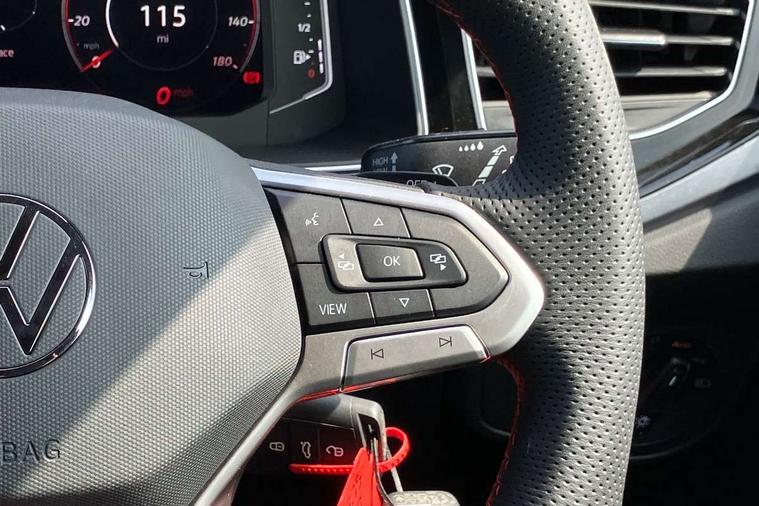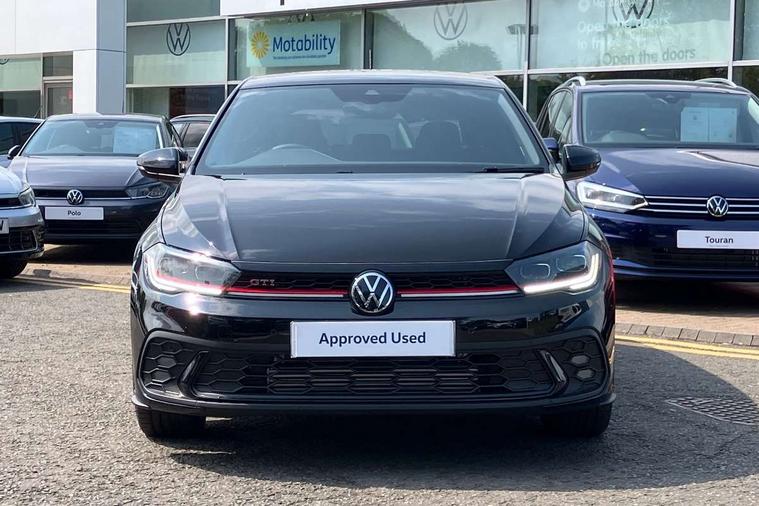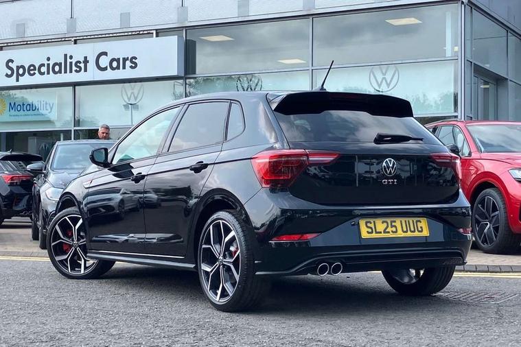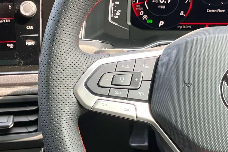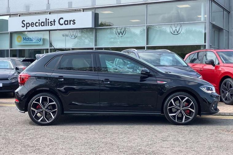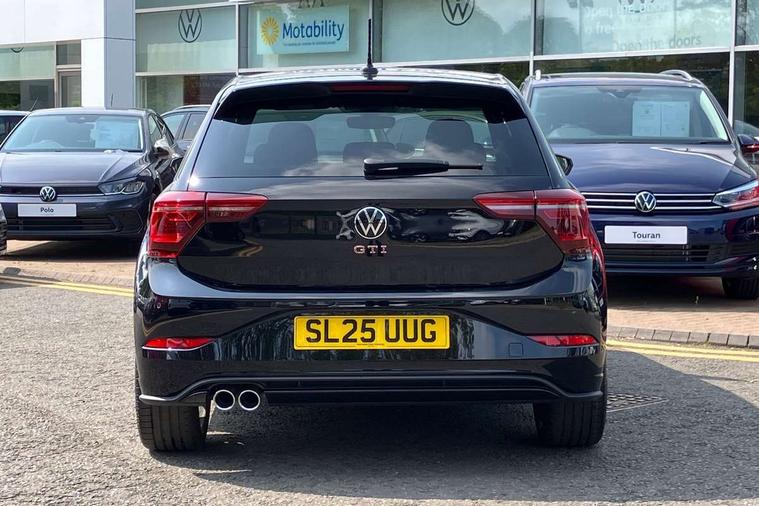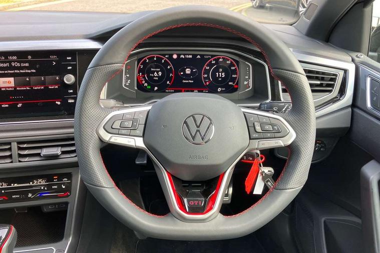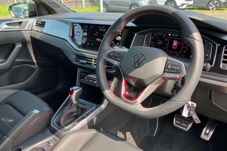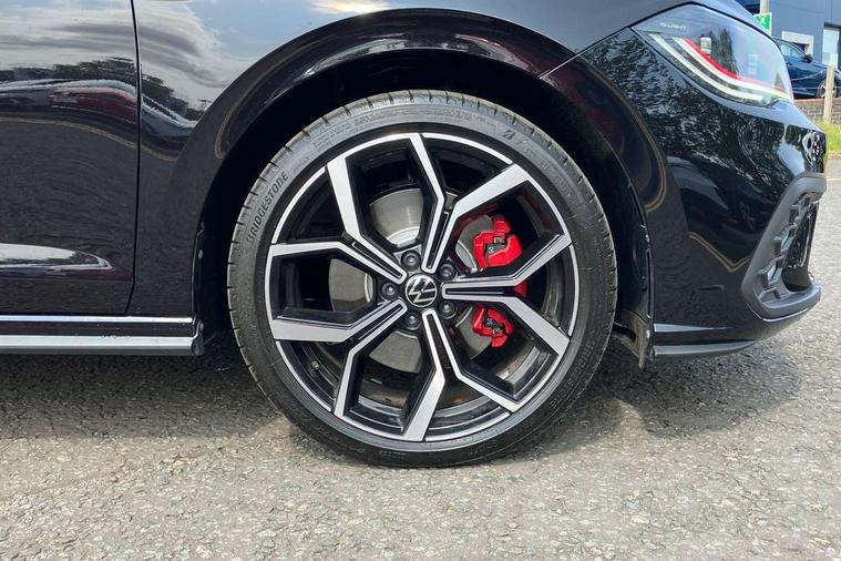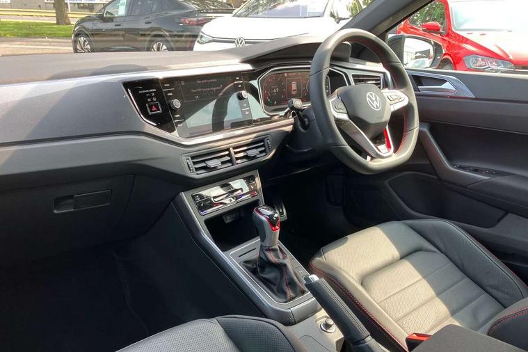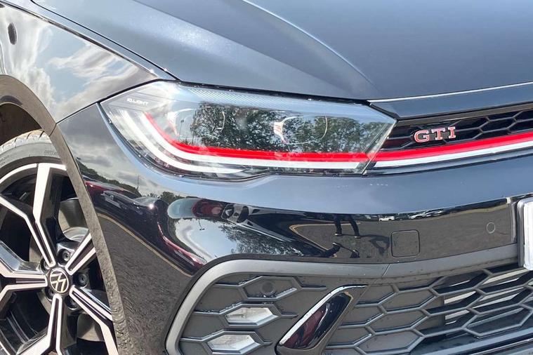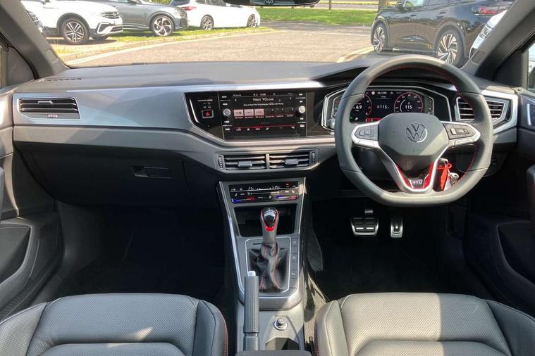 Adaptive cruise control with follow-to-stop and speed limiter, Advanced driver attention and drowsiness monitor, Bluetooth mobile phone interface, Digital Cockpit Pro with 10.25" Display, Dynamic road sign display, Eco mode, Emergency call service, Multifunction camera, Power assisted speed sensitive steering, Preparation for We connect and We connect plus, Speedo and rev counter, electronic odometer, trip, service interval display and fuel gauge, Travel Assist - Lane keeping system and traffic jam assist, Travel assist including emergency assist, Trip computer, Warning signal and warning light for front and rear seatbelts not fastened, Washer fluid level indicator, Wireless app connect, Adaptive chassis control, Front wheel drive, Heavy duty rear axle, Rear shock absorpion sports version, Sports select suspension lowered by 15mm, Start-stop system with battery regeneration (recuperation - energy recovery during braking), DAB Digital radio, Diversity antenna for FM reception, Front and rear 6 speakers, Body colour bumpers, Body colour door handles, Electric front windows, Front scuff plates in aluminium with GTI logo, Heat insulating glass windscreen, Power folding adjustable/heated exterior mirrors and front passenger exterior mirror lowering function, Rain sensor, Rear electric windows, Rear fog light, Rear side wing doors, Rear windscreen washer and wiper with interval delay, Sport bumpers with air intakes with honeycomb structure, Third brake light, Twin chrome exhaust tailpipes, 12V power socket in centre console, 2 USB-C ports in the front, 2 USB-C charging sockets on the center console in the rear, 3 rear head restraints, 60/40 split folding rear seat and rear seat bench not split, Air care climatronic air conditoning system with active combination filter and 2-zone temperature control, Black roof lining, Carpet mats, front and rear, Chrome plated radiator grille inserts, air vent surrounds and light switch surrounds, Door and side trim panel, Driver and front passenger seat height adjustment, Driver/passenger sunvisors with illuminated vanity mirrors, Front centre armrest, Front footwell illumination, Front seat backrest storage pockets, GTI sports gearshift knob in aluminium leather, Handbrake lever handle in leather, Headliner in recycled material, Isofix child seat preparation easy-fit (for two outer rear seats, and front passenger seat) compatible with I-size, LED interior light with switch off delay and dimmer, 2 reading lights front and rear, Luggage compartment cover, Luggage compartment floor, Luggage compartment lighting, Lumbar adjustment for front seats, Single front passenger seat, Stainless steel pedals, Standard pedal cluster, Three spoke leather wrapped multifunction sports steering wheel with shifting paddles, IQ LED matrix headlights pack - Polo, Light and sight pack - Polo GTI, 3 point height adj front seatbelts + pretensioners, 3x3 point rear seatbelts, ABS, Driver and front passenger airbag with front passenger airbag deactivation, Drivers and front passengers safety optimised head restraints, ESC (Electronic stability control) + EDL (Electronic Differntial lock) and ASR (Traction control), Extended and predictive pedestrian/ cyclist protection, Front and rear disc brakes with red brake calipers, Front curtain and side airbags with center airbag, Hill hold control, Manual child lock in rear doors, Two tone horn, Tyre pressure loss indicator, Alarm with interior protection, Anti-theft alarm system with interior monitoring, backup horn, and towing protection, Anti-theft wheel bolts, Electronic engine immobiliser, Chrome applications on rotary light, mirror adjustment, window regulator switches, outlet with frame in black, Low rolling resistance tyres,