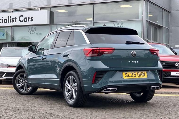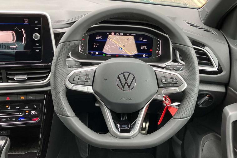 10.25" Digital cockpit pro, Advanced driver attention and drowsiness monitor, Emergency call service, Lane keeping system Lane Assist, Mobile phone interface, Modified key software - reduce switch off time for key status change to Long no motion, Online services, Park assist including front and rear parking sensors, Service interval indicator, Tailgate/trunk lid release from outside, Think blue trainer driver tips and journey analysis, Warning sound and light for front seatbelts unfastened, Wireless app connect, Battery regeneration during braking, Start/stop function with battery regeneration, DAB Digital radio, Diversity antenna for FM reception, Front and rear 6 speakers, Music playback - MP3, WMA and AAC files, Premium USB cable in choice of either Apple or Android smartphone compatibility, SD card slot, Simultaneous pairing of 2 compatible mobile devices, Title and cover art display, We Connect and We Connect Plus functionality, Auto dimming interior rear view mirror, Automatic hazard lights activation under emergency braking, Automatic headlight control with LED separate daytime running lights with coming/leaving home function, Body coloured exterior mirror housings and door handles, Electrically adjustable and heated door mirrors, Extended roof spoiler, Exterior mirrors aspherical on driver side, convex on front passenger side, External USB type C socket and charging sockets, Front windscreen wiper with intermittent wipe and 4 position delay, Heated rear window, LED 3rd brake light, LED rear combination lamps, LED rear number plate lights, Power windows with comfort operation and circuit breaker, Privacy glass for rear side windows and rear window, R-Line design body coloured bumpers, Rain sensor, Rear exhaust tailpipe, Rear fog light on one side and reversing lights on both sides, Rear side wing doors, Rear wash/wipe with intermittent wipe setting, Remote electrically foldable door mirrors, puddle lights and reverse activated passenger's door mirror, 12V power socket in centre console, 3 rear head restraints, 3 seat bench in 2nd row, 4 load lashing points in luggage compartment, Air care climatronic air conditoning system with active combination filter and 2-zone temperature control, Black roof lining, Chrome plated decorative trims, Chrome plated radiator grille inserts, air vent surrounds and light switch surrounds, Door and side trim panel with leatherette insert, Front + rear carpet mats, Front centre armrest, Front cupholders x 2, Front footwell illumination, Front reading light, Front scuff plates with R Line logo, Front seat back storage pockets, Glove compartment door with light, Instrument lighting, white adjustable panel illumination, Interior ambient lighting and surround lighting, Interior light delay, Isofix child seat preparation, Leather gearshift handle, Load-through provision with cup holder when folded down ('Unsplit rear seat bench, split folding backrest, with centre armrest), Luggage compartment lighting, Single front passenger seat, Stainless steel pedals, Storage compartment in left and right luggage area, Storage compartment in rear doors, Storage compartments in driver and front passenger doors, Sunvisors with illuminated vanity mirrors, Variable boot floor, height adjustable and removable, Driver assistance pack without proactive passenger protection - T-Roc, 3 point height adj front seatbelts + pretensioners, 3 point seatbelts in outer rear with ECE label, ABS, Child locks on rear doors, City emergency braking and pedestrian monitoring, Driver and front passenger airbag with front passenger airbag deactivation, Driver and front passenger safety-optimised head restraints, Drivers seatbelt reminder, Electronic parking brake, Electronic Stability Control (ESC) inc EDL (Electronic Differential Lock) and ASR (Traction Control), Front and rear passengers curtain airbag system including front side airbags, Hill start assist, Predictive pedestrian protection, Rear disc brakes, Two tone horn, Tyre pressure loss indicator, Volkswagen roadside assistance, Piano black decorative inserts in dashboard and front door trim panels, Trims for alloy wheels,