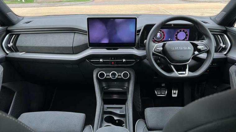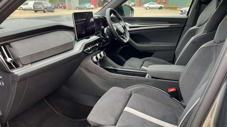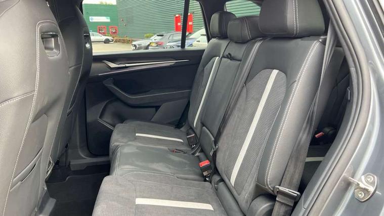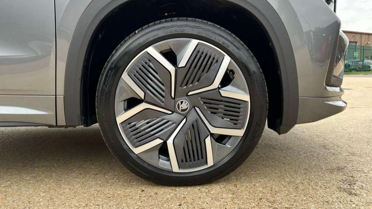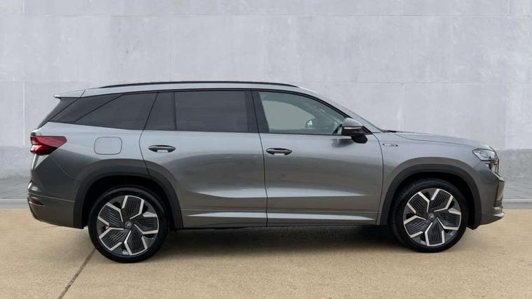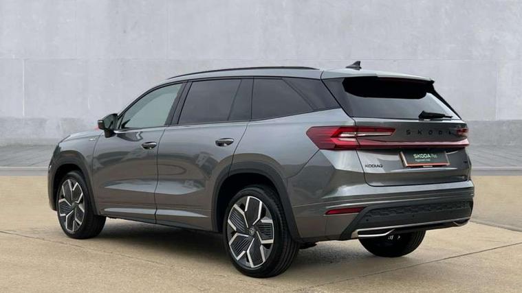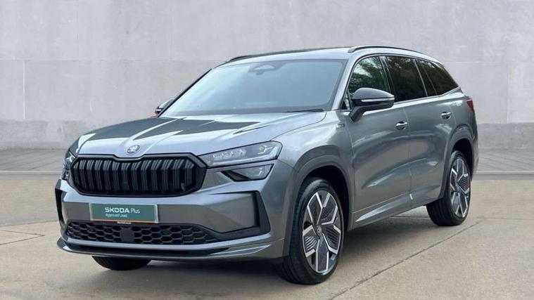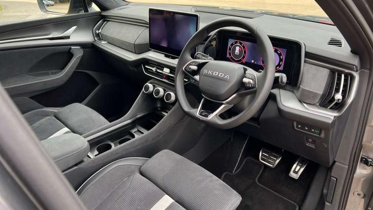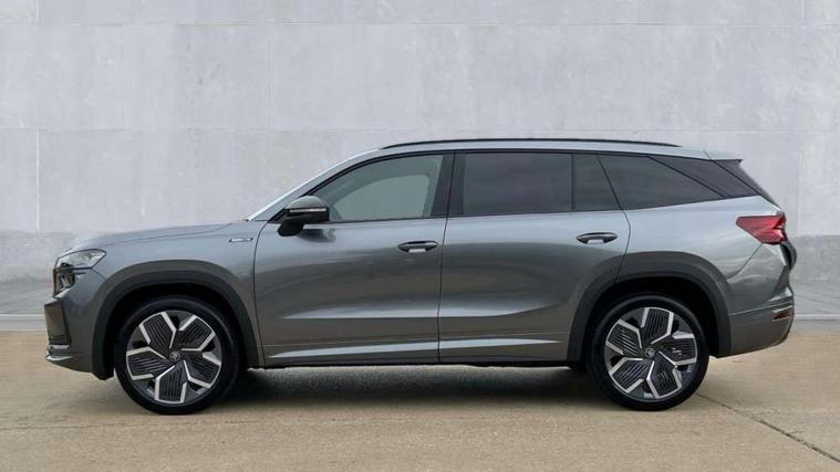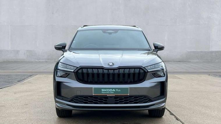 13" satellite navigation touchscreen display, Blind spot detection with door exit warning, Bluetooth system, ChatGPT functionality, Driver alert - Fatigue and drowsiness monitor, Dry display cleaner, Emergency call, Front and rear parking sensors, Front cross traffic assist, Lane assist, Off road modes, PAS, Rear traffic assist, Tailgate unlocking from outside, Traffic sign recognition, USB C Port x 2 in front centre console, Virtual Cockpit - 10.25" digital display, Voice control system, Wireless charging for two smartphones (15W) with cooling function, Wireless SmartLink for Apple CarPlay and Android Auto, Stop/start function, 2x USB-C in the rear, DAB Digital radio, Aero front windscreen wipers with intermittent function, Auto dimming rear view mirror, AWL (all weather lighting) and all weather light with cornering function, Black diffuser and decorative tailpipe with a unique dark chrome finish, Black roof rails, Black sports styling including front grille and window surrounds, Black wheel arch surrounds, Body colour door handles, Cornering light and poor weather light, Electric folding /adjustable/separted heated/folding door mirrors, auto dimming with boarding sports and memory function, Electric front and rear windows, Exterior black decorative trims, Front and rear sports bumpers including lower rear chrome strip, Gloss black door mirrors, Gloss black window frame and D pillar, Heat insulating glass in windshield, Heated rear window, Ice scraper in fuel tank cap, LED daytime running lights, LED third brake light in rear spoiler, Light assistant with automatic headlight control and coming home feature, Logo projection in door mirrors, Privacy glass, Rear roof spoiler, Rear side wing doors, Rear window wiper, Red decorative strip between rear LED lights, Safety reflectors on front and rear doors, Sportline badge on front fenders, Tailgate lettering in Black, Unique dark chrome design logo on alloy wheels, Window control switches with black trim, Windscreen wipers with rain sensor, Without engine designation, 1.5l bottle holder points in all door, 1x centre rear reading light, 2 seat bench in 3rd row, 3 configurable smart dials with 32mm coloured display, 3 seat bench in 2nd row, 4 foldable roof handles with rear coat hooks, Aluminium pedals, Ambient interior lighting - Dashboard, front-door stowage compartments, front and rear door panels and footwell lighting, Automatic gear selector on steering column, Chrome interior door handles, Driver/front passenger reading lights, Fabric headlining, Fixed bench 40:60:40 split folding backrests, Front and rear floor mats, Front centre armrest with jumbo box storage compartment, cup holder and 12V socket, Front sport seats, Height adjustable front headrests, Interior black decorative trims, Isofix child seat fittings in outer middle row rear seats and front passenger with top tether, Manually adjustable steering column, Pollen filter, Rear centre armrest with cupholders, Rear seat boot backrest release, Single front passenger seat, Skoda lettering on steering wheel, Storage pocket including mobile phone pockets on the backs of the front seats, Sunvisors with illuminated vanity mirrors, Three rear height adjustable headrests, Ticket holder on A Pillar, Tri zone climate control, Umbrella in door panel x1 made from sustainable materials, Upper and lower glovebox with card holder and coin compartment, USB C port by rear view mirror for charging only (15W), Acoustic package - Kodiaq, Performance package - Kodiaq, Sportline design selection pack - Kodiaq, Auto door release and activation of warning lights in the event of an accident, Driver and front passenger airbag with knee airbag and front passenger airbag deactivation, Electric child locks, Electronic parking brake, ESC (incl. ABS+EMD+MSR+ASR+EDL+HBA+DSR+RBS+ESBS+MCB+TSA+XDS), Front assist with braking reaction to vehicles, pedestrians and cyclists, Front disc brakes, Fuel cut off safety device, Height adjustable front 3 point seatbelts + pretensioners, Hill hold assist, Junction assist with automatic emergency braking, Rear disc brakes, Safety vest holder in door, Seat belt reminder for all seats, Three point rear seat belts, Two tone horn, Tyre pressure monitor, Alarm with interior monitoring and tilt sensor with safe function, Anti-theft wheel bolts, Immobiliser, Remote central locking with 2 keys, 20" Rila anthacite polished alloy wheel with black matte aero covers,