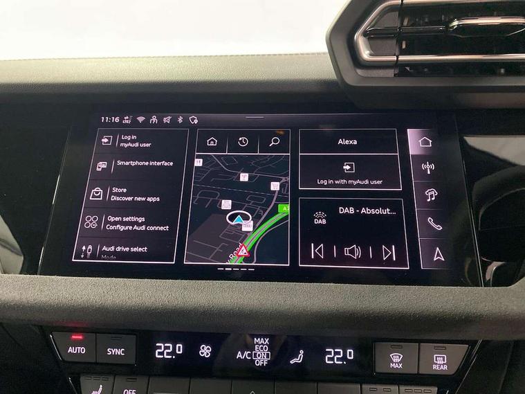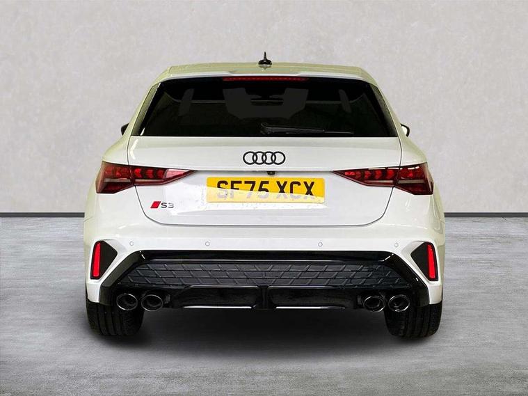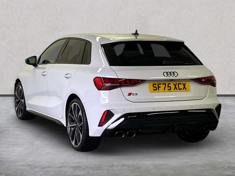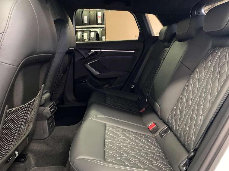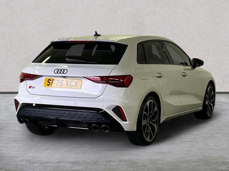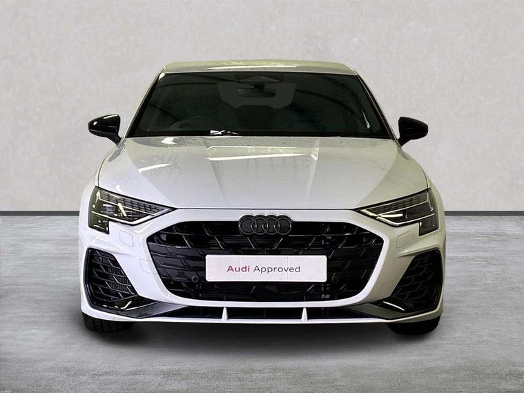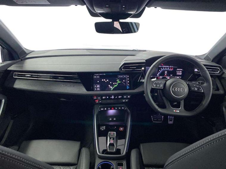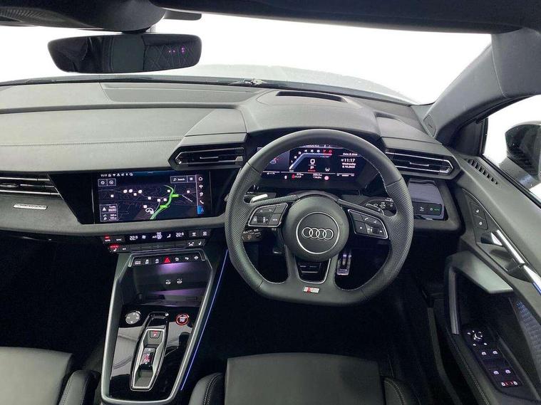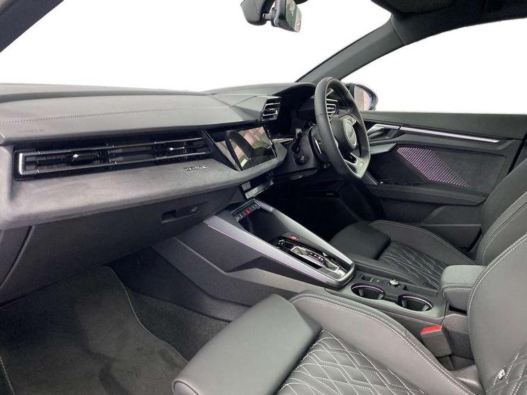 Adaptive cruise control (ACC), Adjustable speed limiter, Audi drive select (Auto, Comfort, Dynamic, Efficiency and Individual), Audi virtual cockpit plus - 12.3" full HD resolution dynamic digital instrument cluster, Automatic start/stop system with recuperation, Bluetooth interface, Camera based traffic sign recognition, Collision avoidance assistant, Driver attention and fatigue detection, e-Call (emergency call), Emergency assist, Intersection assist, Lane departure warning system, MMI Navigation Plus with high resolution 10.1" colour touch screen display, Park Assist with parking system Plus, Progressive steering, Reversing camera, Service indicator, Smartphone interface with app store includes wireless Apple carplay, Android auto and Amazon alexa integration, Trip computer, Voice control system with natural language interaction, quattro permanent all-wheel drive with torque splitter, S sport suspension with spring damper adjustment and lowering by 15mm, Audi Phonebox light with wireless charging, DAB Digital radio, USB ports with charging function in the rear, Anthracite grey Audi rings (front and rear), Audi Beam uses LEDs to project the rhombus S logo onto the ground as you exit your S3, Auto dimming frameless rear view mirror, Black accents front and rear bumpers including air inlets, Black accents in front grille and frame, Black accents in window trims, Electrically adjustable/heated/folding/auto dimming door mirrors with integrated LED indications + kerb view function for passenger side, Exterior model badging, Front and rear side air inlets in grained matt black with dark liquid chrome frame, Front electric windows, Front radiator grill in high gloss dark chrome, Heat insulating glass windscreen, Illuminated door sills with aluminium inserts at the front with S logo, LED 3rd brake light, Light and rain sensors, Privacy glass - dark tinted rear window, rear door and side windows, Rear diffuser and grill in grained matt black with inlay in dark liquid chrome, Rear electric windows, Rear side wing doors, Rear wiper, S grille, S3 front bumper with S specific air intake grilles, S3 roof spoiler, Side sill trim in dark liquid chrome, 12V socket and storage compartment in front centre console, 3 seat bench in 2nd row, 3 spoke flat bottomed leather multifunction sport steering wheel with gear shift paddles, 3-zone deluxe automatic air conditioning, 4 way electrically adjustable lumbar support for driver and front passenger, 40/20/40 split folding rear seat bench, Black cloth headlining, Black front and rear floor mats, Fine Nappa leather upholstery with front sports seats S embossed logo, Front and rear centre armrest in artificial leather with contrasting stitching on armrests and instrument panel, Front and rear headrests, Heated front seats, Height and reach adjustable steering wheel, i-Size child seat mounting on the front passenger side and outer rear seats, i-Size and top tether on the outer rear seats, Manual boot compartment lid, Manually adjustable front seats, Rear centre armrest with cupholder, S badging on the steering wheel, Seat side bolsters, Single front passenger seat, Stainless steel pedals and front footrest in black, Aluminium interior elements pack - A3, Storage package - A3, Technology pack with Matrix LED headlights - A3, 3x3 point rear seat belts, Driver and front passenger airbag with passenger airbag deactivation, Electronic Stabilisation Control (ESC) including ABS, ASR and EDL, First aid kit with warning triangle and 2 safety vests, Front side airbags with head airbags and interaction airbag, Hill hold assist, Pre-sense front with pedestrian and cyclist detection, Seatbelt monitoring, Tyre pressure loss indicator, Anti theft alarm, Anti-theft wheel bolts, Electronically operated child locks, Immobiliser, Black dashboard, Tyre repair kit,