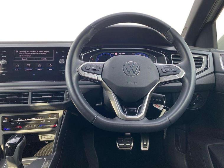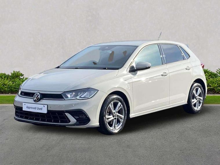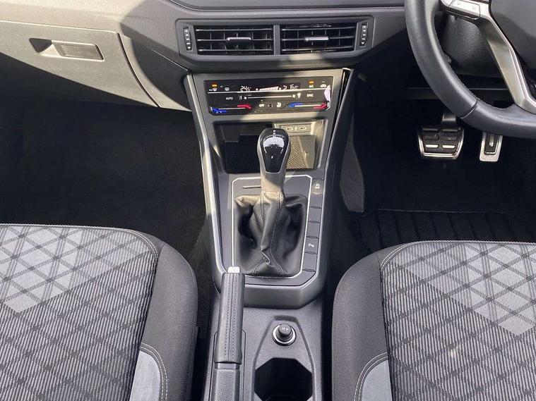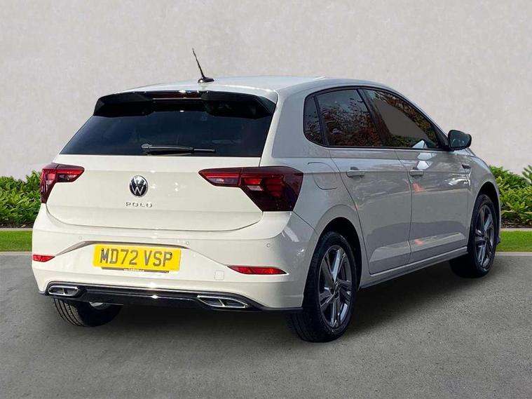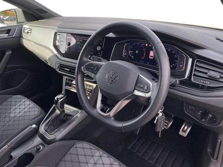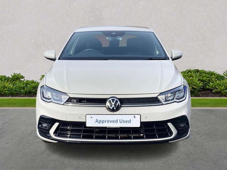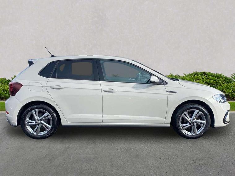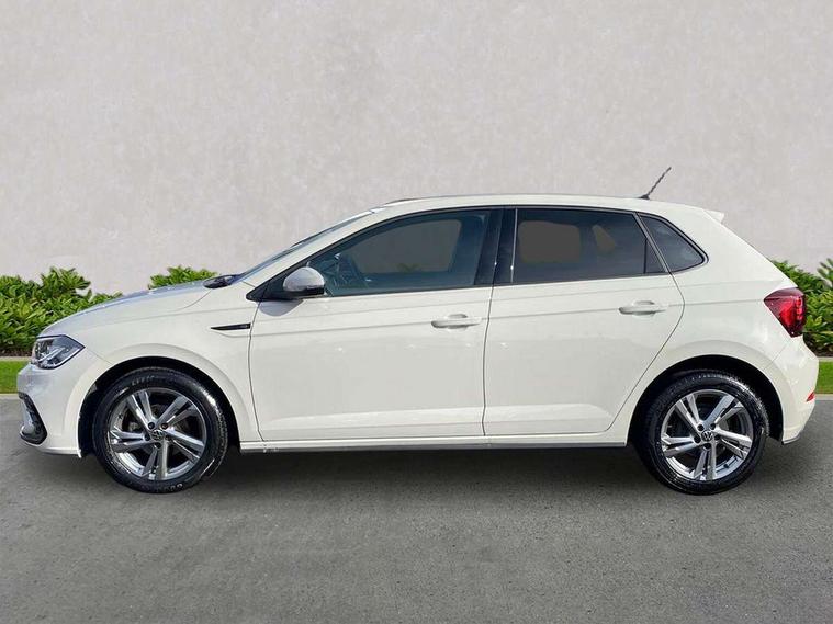 Adaptive cruise control with follow-to-stop and speed limiter, Bluetooth mobile phone interface, Digital Cockpit Pro with 10.25" Display, Driver alert system, Dynamic road sign display, Emergency call service, Power assisted speed sensitive steering, Preparation for We connect and We connect plus, Speedo and rev counter, electronic odometer, trip, service interval display and fuel gauge, Standard rear axle, Travel Assist - Lane keeping system and traffic jam assist, Travel assist including emergency assist, Trip computer, Warning signal and warning light for front and rear seatbelts not fastened, Washer fluid level indicator, Wireless app connect, Front wheel drive, Rear shock absorpion, Start-stop system with battery regeneration (recuperation - energy recovery during braking), DAB Digital radio, Diversity antenna for FM reception, Front and rear 6 speakers, Body colour bumpers, Body colour door handles, Electric front windows, Front scuff plates with R-Line logo, Heat insulating darkened glass in side and rear windows, Heat insulating glass windscreen, Power folding adjustable/heated exterior mirrors and front passenger exterior mirror lowering function, Rear electric windows, Rear fog light, Rear side wing doors, Rear windscreen washer and wiper with interval delay, Third brake light, 12V power socket in centre console, 2 USB-C ports in the front, 2 USB-C charging sockets on the center console in the rear, 3 rear head restraints, 60/40 split folding rear seat and rear seat bench not split, Air care climatronic air conditoning system with active combination filter and 2-zone temperature control, Black roof lining, Chrome plated radiator grille inserts, air vent surrounds and light switch surrounds, Door and side trim panel, Driver and front passenger seat height adjustment, Driver/passenger sunvisors with illuminated vanity mirrors, Front + rear carpet mats in recycled material, Front centre armrest, Front footwell illumination, Front seat backrest storage pockets, Front sports comfort seats, Handbrake lever handle in leather, Headliner in recycled material, Isofix child seat preparation easy-fit (for two outer rear seats, and front passenger seat) compatible with I-size, Karoso artvelours cloth upholstery, Leather trimmed gear knob, LED interior light with switch off delay and dimmer, 2 reading lights front and rear, Luggage compartment cover, Luggage compartment floor, Luggage compartment lighting, Lumbar adjustment for front seats, Single front passenger seat, Stainless steel pedals, Standard pedal cluster, Three spoke leather wrapped multifunction steering wheel with shifting paddles, Light and sight pack - Polo R-Line/Black Edition, 3 point height adj front seatbelts + pretensioners, 3x3 point rear seatbelts, ABS, Driver and front passenger airbag with front passenger airbag deactivation, Drivers and front passengers safety optimised head restraints, ESC (Electronic stability control) + EDL (Electronic Differntial lock) and ASR (Traction control), Extended and predictive pedestrian/ cyclist protection, Front curtain and side airbags with center airbag, Hill hold control, Manual child lock in rear doors, Single tone horn, Tyre pressure loss indicator, Alarm with interior protection, Anti-theft alarm system with interior monitoring, backup horn, and towing protection, Anti-theft wheel bolts, Electronic engine immobiliser, Chrome applications on rotary light, mirror adjustment, window regulator switches, outlet with frame in black, Dark grey anodised matt decorative inserts in dash and front door panels, Low rolling resistance tyres,