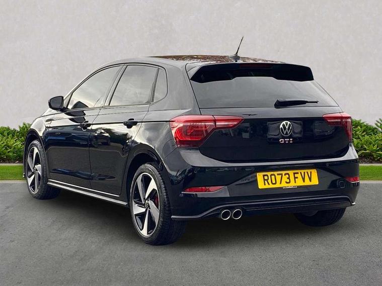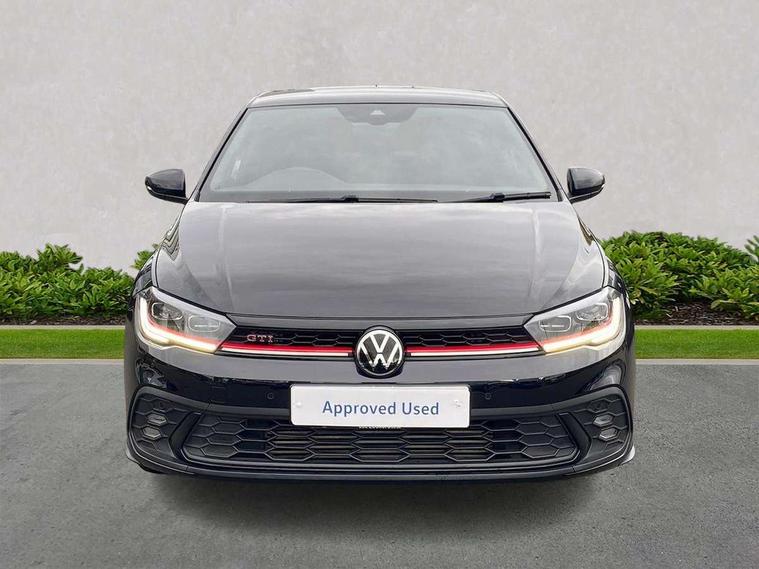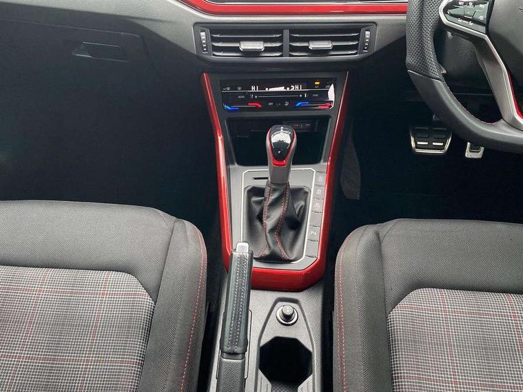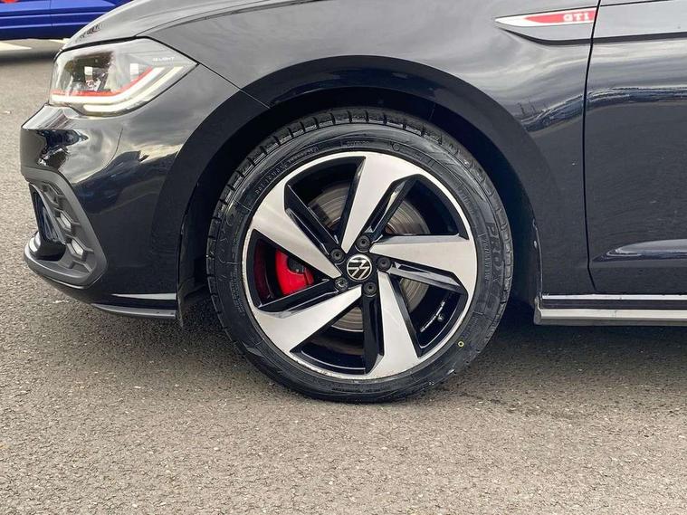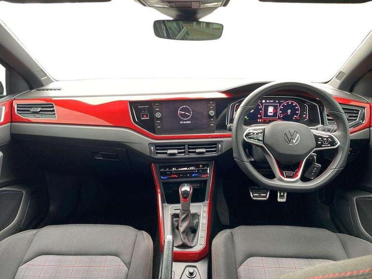 Adaptive cruise control with follow-to-stop and speed limiter, Bluetooth mobile phone interface, Digital Cockpit Pro with 10.25" Display, Driver alert system, Dynamic road sign display, Eco mode, Emergency call service, Power assisted speed sensitive steering, Preparation for We connect and We connect plus, Speedo and rev counter, electronic odometer, trip, service interval display and fuel gauge, Travel Assist - Lane keeping system and traffic jam assist, Travel assist including emergency assist, Trip computer, Warning signal and warning light for front and rear seatbelts not fastened, Washer fluid level indicator, Wireless app connect, Adaptive chassis control, Front wheel drive, Heavy duty rear axle, Rear shock absorpion sports version, Sports select suspension lowered by 15mm, Start-stop system with battery regeneration (recuperation - energy recovery during braking), DAB Digital radio, Diversity antenna for FM reception, Front and rear 6 speakers, Body colour bumpers, Body colour door handles, Electric front windows, Front scuff plates in aluminium with GTI logo, Heat insulating darkened glass in side and rear windows, Heat insulating glass windscreen, Power folding adjustable/heated exterior mirrors and front passenger exterior mirror lowering function, Rain sensor, Rear electric windows, Rear fog light, Rear side wing doors, Rear windscreen washer and wiper with interval delay, Sport bumpers with air intakes with honeycomb structure, Third brake light, Twin chrome exhaust tailpipes, 12V power socket in centre console, 2 USB-C ports in the front, 2 USB-C charging sockets on the center console in the rear, 3 rear head restraints, 60/40 split folding rear seat and rear seat bench not split, Air care climatronic air conditoning system with active combination filter and 2-zone temperature control, Black roof lining, Chrome plated radiator grille inserts, air vent surrounds and light switch surrounds, Door and side trim panel, Driver and front passenger seat height adjustment, Driver/passenger sunvisors with illuminated vanity mirrors, Front + rear carpet mats in recycled material, Front centre armrest, Front footwell illumination, Front seat backrest storage pockets, GTI sports gearshift knob in aluminium leather, Handbrake lever handle in leather, Headliner in recycled material, Isofix child seat preparation easy-fit (for two outer rear seats, and front passenger seat) compatible with I-size, LED interior light with switch off delay and dimmer, 2 reading lights front and rear, Luggage compartment cover, Luggage compartment floor, Luggage compartment lighting, Single front passenger seat, Stainless steel pedals, Standard pedal cluster, Three spoke leather wrapped multifunction sports steering wheel with shifting paddles, IQ LED matrix headlights pack - Polo, Light and sight pack - Polo GTI, 3 point height adj front seatbelts + pretensioners, 3x3 point rear seatbelts, ABS, Driver and front passenger airbag with front passenger airbag deactivation, Drivers and front passengers safety optimised head restraints, ESC (Electronic stability control) + EDL (Electronic Differntial lock) and ASR (Traction control), Extended and predictive pedestrian/ cyclist protection, Front and rear disc brakes with red brake calipers, Front curtain and side airbags with center airbag, Hill hold control, Manual child lock in rear doors, Two tone horn, Tyre pressure loss indicator, Alarm with interior protection, Anti-theft alarm system with interior monitoring, backup horn, and towing protection, Anti-theft wheel bolts, Electronic engine immobiliser, Chrome applications on rotary light, mirror adjustment, window regulator switches, outlet with frame in black, Low rolling resistance tyres,