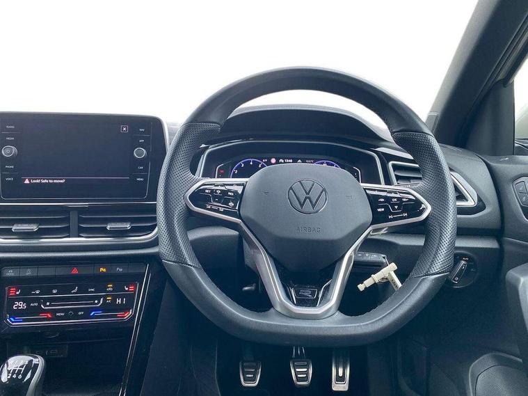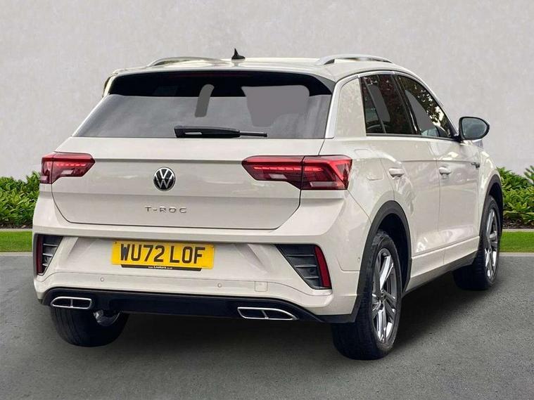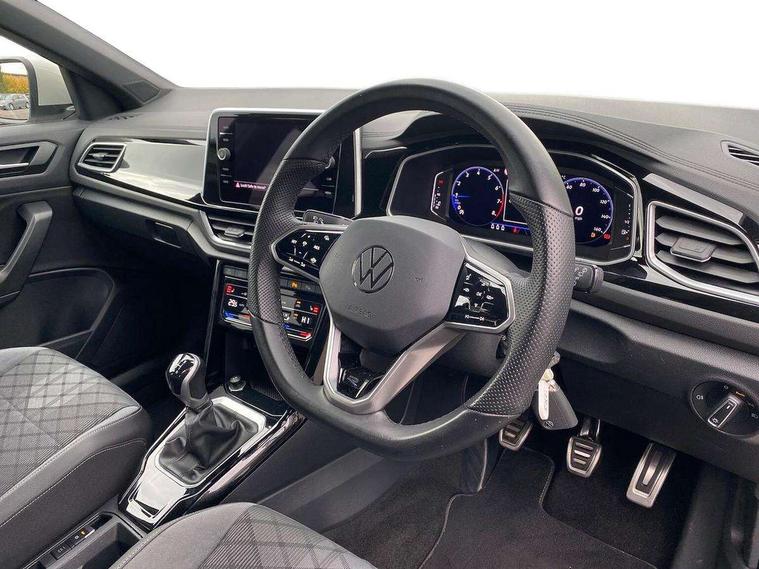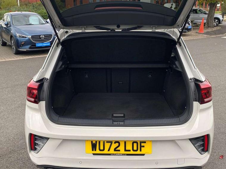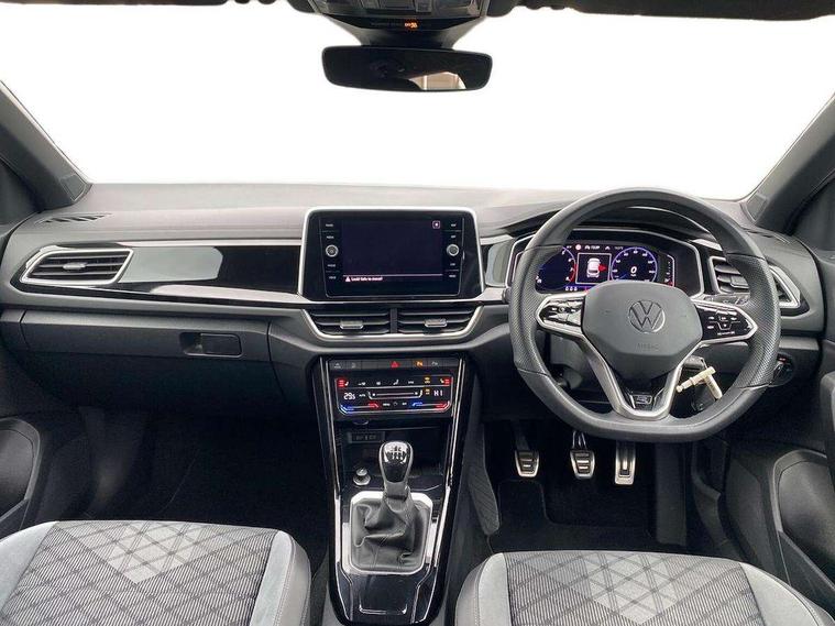 10.25" Digital cockpit pro, Bluetooth mobile phone interface, Driver alert system with fatigue detection, Driver tips and journey analysis, Emergency call service, Lane keeping system Lane Assist, Modified key software - reduce switch off time for key status change to Long no motion, Online services, Park assist including front and rear parking sensors, Service interval indicator, Tailgate/trunk lid release from outside, Think blue trainer driver tips and journey analysis, Warning sound and light for front seatbelts unfastened, Wireless app connect, Battery regeneration during braking, Start/stop function with battery regeneration, Diversity antenna for FM reception, Front and rear 6 speakers, Music playback - MP3, WMA and AAC files, Premium USB cable in choice of either Apple or Android smartphone compatibility, SD card slot, Simultaneous pairing of 2 compatible mobile devices, Title and cover art display, We Connect and We Connect Plus functionality, 3rd brake light, Auto dimming interior rear view mirror, Automatic hazard lights activation under emergency braking, Automatic headlight control with LED separate daytime running lights with coming/leaving home function, Extended roof spoiler, Exterior mirrors aspherical on driver side, convex on front passenger side, External USB type C socket and charging sockets, Front windscreen wiper with intermittent wipe and 4 position delay, Heated rear window, LED Plus headlamps, LED rear combination lamps, LED rear number plate lights, LED tail lamp rear comination lamps, Power windows with comfort operation and circuit breaker, R-Line design body coloured bumpers, Rain sensor, Rear exhaust tailpipe, Rear fog light on one side and reversing lights on both sides, Rear side wing doors, Rear wash/wipe with intermittent wipe setting, Remote electrically foldable door mirrors, puddle lights and reverse activated passenger's door mirror, 12V power socket in centre console, 3 rear head restraints, 3 seat bench in 2nd row, 4 load lashing points in luggage compartment, Air care climatronic air conditoning system with active combination filter and 2-zone temperature control, Black roof lining, Chrome plated radiator grille inserts, air vent surrounds and light switch surrounds, Door and side trim panel with leatherette insert, Drawer under drivers seat, Front + rear carpet mats, Front centre armrest, Front cupholders x 2, Front footwell illumination, Front reading light, Front scuff plates with R logo, Instrument lighting, white adjustable panel illumination, Interior ambient lighting and surround lighting, Interior light delay, Isofix child seat preparation, Leather gearshift handle, Load-through provision with cup holder when folded down ('Unsplit rear seat bench, split folding backrest, with centre armrest), Luggage compartment lighting, Single front passenger seat, Stainless steel pedals, Storage compartment in left and right luggage area, Storage compartment in rear doors, Storage compartments in driver and front passenger doors, Sunvisors with illuminated vanity mirrors, Variable boot floor, height adjustable and removable, Driver assistance pack without proactive passenger protection - T-Roc, 3 point height adj front seatbelts + pretensioners, 3 point seatbelts in outer rear with ECE label, ABS, Child locks on rear doors, Driver and front passenger airbag with front passenger airbag deactivation, Driver and front passenger safety-optimised head restraints, Drivers seatbelt reminder, Electronic parking brake, Electronic Stability Control (ESC) inc EDL (Electronic Differential Lock) and ASR (Traction Control), Front and rear passengers curtain airbag system including front side airbags, Front assist with city emergency braking and pedestrian monitoring, Front seat side impact airbags, Hill start assist, Predictive pedestrian protection, Rear disc brakes, Single tone horn, Tyre pressure loss indicator, Volkswagen roadside assistance, Alarm with interior protection, Anti-theft alarm system with interior monitoring, backup horn, and towing protection, Remote central locking with SAFELOCK, radio remote control with 2 remote control folding keys, Trims for alloy wheels,