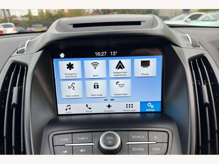 EPAS, Rear parking sensor, SYNC Emergency Assistance, Trip computer, Auxiliary socket for external device, Remote audio controls on steering wheel, USB connection, Auto dimming rear view mirror, Automatic headlights, Body colour bumpers, Body colour rear spoiler, Electric folding mirrors, Electrically heated door mirrors, Front scuff plate, LED daytime running lights, Power front and rear windows, Quickclear heated windscreen, Rain sensor windscreen wipers, Rear diffuser, Tailgate wash/wipe, Twin exhaust pipes, 6 way manually adjustable passenger seat, 60/40 split/folding rear back and cushion, Auxiliary power socket in luggage area, Centre console with stowage tray/bottle holder/CD stowage/front and rear 12V power point, Cloth/Salerno leather upholstery, Driver seat lumbar adjustment, Driver/passenger front seatback pockets, Driver/passenger seats fore/aft adjustment, Dual electronic automatic temperature control, Folding rear centre armrest, Footwell courtesy lights front and rear, Front floor mats, Front head restraints, Front overhead courtesy lights with theatre style dimming and delay, Front/rear reading lights, Isofix system on outer rear seats, Leather gearknob, Leather steering wheel, Memory for drivers seat/door mirrors, Multi-colour ambient interior lighting, Passenger lumbar support, Reach + rake adjustable steering column, Rear floor mats, Rear head restraints, Sports style front seats, Stowage unit in upper instrument panel, Tie down hooks, Tonneau cover, Variable intensity instrument illumination, 3 point seatbelts on all 3 rear seats, ABS/EBD, Driver and passenger airbags, Driver and passenger side airbags, Electric traction assist system, Electronic parking brake, ESP+EBA, Front and rear curtain airbags, Hill start assist, Intelligent Protection System (IPS), Tyre pressure monitoring system, Immobiliser, Keyless entry, Keyless Start, Locking wheel nuts, Remote central locking, Thatcham Cat.1 alarm, Mini steel spare wheel,