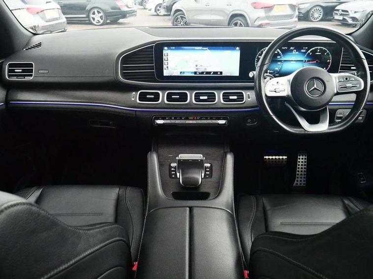 Attention assist, Brake wear warning display, Cockpit display 12.3" widescreen digital instrument cluster, Direct steer speed sensitive steering, DYNAMIC SELECT with a choice of driving modes (ECO, Comfort, Sport and Individual), Easy-pack tailgate - Powered opening/closing automatically, ECO start/stop function, Geofencing, Hard-disk navigation, Hey Mercedes Voice activation, High resolution 12.3" multimedia colour display, Mercedes me connect including emergency call system, accident recovery, breakdown and maintenance management, Outside temperature display, Remote boot release, Service indicator (ASSYST), Smartphone integration with Apple CarPlay and Android auto, Status display for rear seat belts in instrument cluster, Traffic Sign Assist, Traffic sign recognition including wrong way warning function and display of posted speed limits in the instrument cluster, Trip computer in multifunction display showing current fuel consumption, Wireless charging system for mobile devices, 85 litre fuel tank, Agility control suspension with selective damping system and lowered by 15mm, Diesel particulate filter (DPF), Incorrect fuelling protection, Additional USB connection, Burmester surround sound system, DAB Digital radio, Dual bluetooth interface, 2 USB ports (type C), MBUX multimedia system with DAB digital radio and touchpad including satellite navigation, 3rd brake light, Adaptive brake lights, Adaptive high beam assist, Aerial for GPS, Aluminium look, illuminated running boards with rubber studs, AMG bodystyling front and rear aprons and side skirts in polished aluminium, Body colour door mirrors, Body coloured bumpers, Daytime running lights, Electric windows with one touch opening/closing and obstruction sensors, Exterior mirrors heated and electronically adjustable, Front green tinted glass, LED rear lights, Multi beam LED headlights, Panoramic sunroof, Privacy glass - heat insulating dark tinted glass, Radiator grille with integrated star and single louvre in matt iridium silver with chrome trim, Radio aerial integrated into rear window, Rain sensing windscreen wipers, Rear side wing doors, Rear wiper, Roof rail system, Top surround of side windows in polished aluminium, Visible twin pipe exhaust system integrated into bumper, Waistline in polished aluminium, 3 spoke AMG multifunction steering wheel with touch control buttons, trimmed in black nappa leather with flattened bottom section, 3rd row of seats for 2 people, 4 way adjustable front head restraints and 2 way rear head restraints, 4 way lumbar support, 40:20:40 split folding rear seats, AMG brushed stainless steel sports pedals with rubber studs, AMG floor mats with AMG lettering, Artico man-made leather upper dashboard with contrast topstitching, Automatic child seat recognition sensor, Black fabric roof liner, Central stowage compartment with 12 V socket in centre console, Chrome door pins, Courtesy lights in rear grab handles with reading light functionality, Electric folding second row seats adjustments, Electronically adjustable three second row seats, Four way partially front electric seat adjustment, Front centre armrest with stowage compartment and illuminated grab handles, Gearshift paddles on steering wheel, Glasses compartment in overhead control panel, Glove compartment - lockable, air conditioned and illuminated, Heated front seats, Interior lighting - 64 colour Ambient lighting, Nappa leather upholstery, Seat occupancy sensor for front passenger seat, Second row three seats, Single front passenger seat, Sports steering wheel, Steering column manually adjustable for height and reach, Sunvisors with illuminated vanity mirrors, Thermotronic automatic 4 zone climate control, Touchpad, Air balance package - GLE, Anti theft Protection package - GLE, Driving assistance pack - GLE Premium Plus/GLE 53, Energizing comfort package - GLE, Keyless go comfort package - GLE, Memory package - GLE, Mirror package - GLE, Parking package with 360 camera - GLE, Active bonnet, Adaptive brake system with HOLD function and brake drying in the wet, Airbags - driver and front passenger, with extended adaptivity for front passenger airbag, Airbags - sidebag for driver and front passenger with combined thorax/pelvis bag, Airbags - windowbags, Anti-lock braking system (ABS), Childproof locks manually operated for rear doors and electrically operated for rear power windows, Drivers knee airbag, Electronic parking brake, Electronic Stability Programme (ESP), ISOFIX child seat attachment points two outer rear seats, Perforated front brake discs and brake calipers with Mercedes-Benz lettering, Three point rear seat belts, Tyre pressure monitoring system and loss warning system, Warning triangle and first aid kit, Alarm system/interior protection/immobiliser, Central locking with interior switch, automatic locking and crash sensor with emergency opening function, Chrome surround in electric key, Dashboard and door, anthracite open pore oak wood trim, Trim - Centre console, anthracite open pore oak wood trim, 21" AMG multi spoke light alloy wheels painted in black with a high sheen finish, Summer tyres with noise reducing absorber, TIREFIT with tyre inflation compressor,
