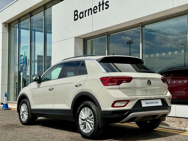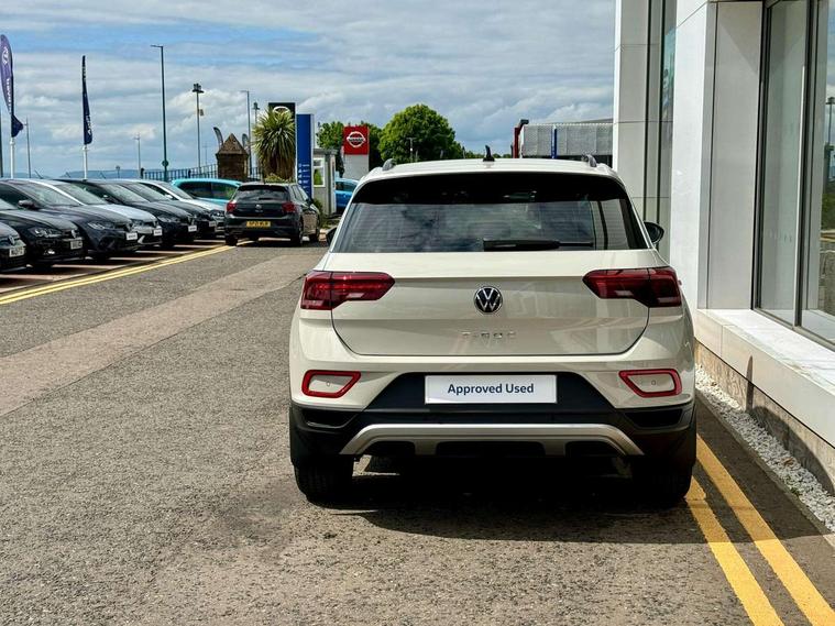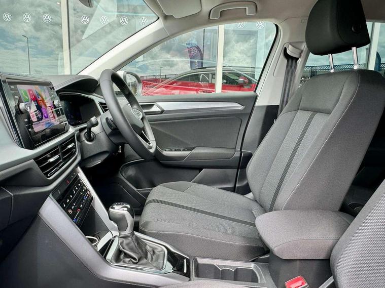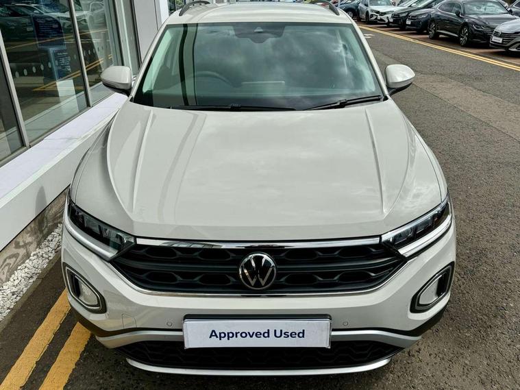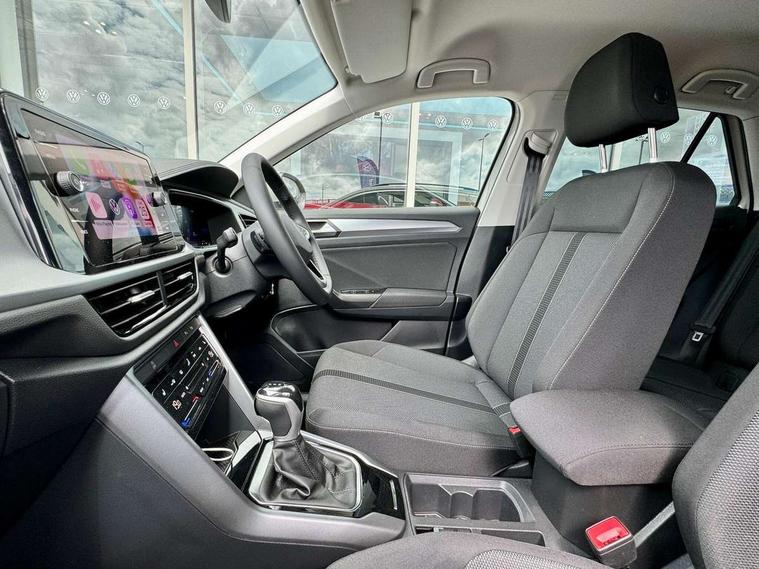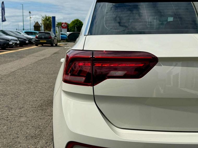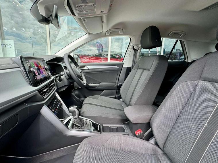Bluetooth mobile phone interface, Driver alert system with fatigue detection, Driver tips and journey analysis, Emergency call service, Lane keeping system Lane Assist, Modified key software - reduce switch off time for key status change to Long no motion, Online services, Park assist including front and rear parking sensors, Power assisted speed sensitive steering, Service interval indicator, Tailgate/trunk lid release from outside, Think blue trainer driver tips and journey analysis, Warning sound and light for front seatbelts unfastened, Wireless app connect, Battery regeneration during braking, Front shock absorption, Rear shock absorption chassis with increased ride height, Start/stop function with battery regeneration, DAB Digital radio, Diversity antenna for FM reception, Front and rear 6 speakers, Music playback - MP3, WMA and AAC files, Premium USB cable in choice of either Apple or Android smartphone compatibility, SD card slot, Simultaneous pairing of 2 compatible mobile devices, Title and cover art display, We Connect and We Connect Plus functionality, 3rd brake light, Auto dimming interior rear view mirror, Automatic hazard lights activation under emergency braking, Automatic headlight control with LED separate daytime running lights with coming/leaving home function, Black roof rails, Body coloured bumpers and radiator grille with chrome trim and front fog lamps with chrome bezel, Body coloured exterior mirror housings and door handles, Extended roof spoiler, Exterior mirrors aspherical on driver side, convex on front passenger side, External USB type C socket and charging sockets, Front windscreen wiper with intermittent wipe and 4 position delay, Heated rear window, LED Headlights, LED rear combination lamps, LED rear number plate lights, LED tail lamp rear comination lamps, Power windows with comfort operation and circuit breaker, Rain sensor, Rear exhaust tailpipe, Rear fog light on one side and reversing lights on both sides, Rear side wing doors, Rear wash/wipe with intermittent wipe setting, Remote electrically foldable door mirrors, puddle lights and reverse activated passenger's door mirror, 12V power socket in centre console, 3 rear head restraints, 3 seat bench in 2nd row, 4 load lashing points in luggage compartment, Air care climatronic air conditoning system with active combination filter and 2-zone temperature control, Ambient lighting with mirror logo projection, Cloth upholstery, Door and side trim panel in cloth, Drawer under drivers seat, Driver/front passenger seat height adjustment, Front centre armrest, Front comfort sports seats, Front cupholders x 2, Front reading light, Instrument lighting, white adjustable panel illumination, Interior light delay, Isofix child seat preparation, Leather gearshift handle, Load-through provision with cup holder when folded down ('Unsplit rear seat bench, split folding backrest, with centre armrest), Luggage compartment lighting, Lumbar support for driver's and front passengers seat, Non-folding front passenger seat backrest, Single front passenger seat, Storage compartment in left and right luggage area, Storage compartment in rear doors, Storage compartments in driver and front passenger doors, Sunvisors with illuminated vanity mirrors, Variable boot floor, height adjustable and removable, Driver assistance pack without proactive passenger protection - T-Roc, 3 point height adj front seatbelts + pretensioners, 3 point seatbelts in outer rear with ECE label, ABS, Child locks on rear doors, Driver and front passenger airbag with front passenger airbag deactivation, Driver and front passenger safety-optimised head restraints, Drivers seatbelt reminder, Electronic parking brake, Electronic Stability Control (ESC) inc EDL (Electronic Differential Lock) and ASR (Traction Control), Front and rear passengers curtain airbag system including front side airbags, Front assist with city emergency braking and pedestrian monitoring, Front disc brakes, Front seat side impact airbags, Hill start assist, Predictive pedestrian protection, Rear disc brakes, Single tone horn, Tyre pressure loss indicator, Volkswagen roadside assistance, Alarm with interior protection, Anti-theft alarm system with interior monitoring, backup horn, and towing protection, Remote central locking with SAFELOCK, radio remote control with 2 remote control folding keys, Pewter matt decorative inserts for intrument panel, centre console and door panels at the front, Trims for alloy wheels,