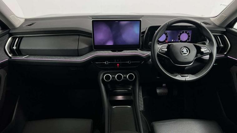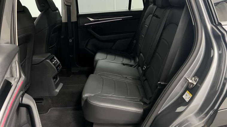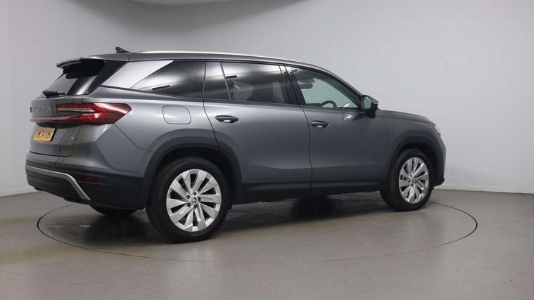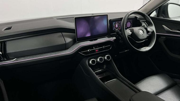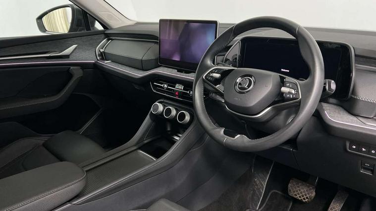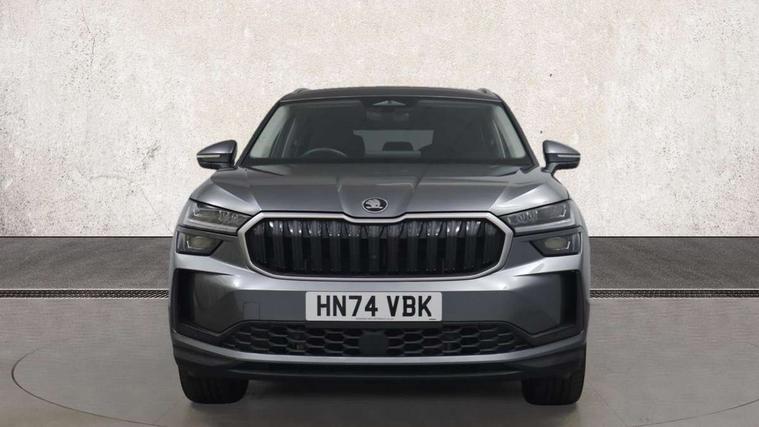 13" satellite navigation touchscreen display, Blind spot detection with door exit warning, Bluetooth system, ChatGPT functionality, Drive mode selector, Driver alert with fatigue sensor, Driver drowsiness alert system, Dry display cleaner, e call+, Front cross traffic assist, Lane assist, PAS, Rear traffic assist, Tailgate unlocking from outside, Traffic sign recognition, USB C Port x 2 in front centre console, Virtual Cockpit - 10.25" digital display, Voice control system, Wireless charging for two smartphones (15W) with cooling function, Wireless SmartLink for Apple CarPlay and Android Auto, 32A charging cable, Stop/start function, 2x USB-C in the rear, DAB Digital radio, Aero front windscreen wipers with intermittent function, Auto dimming rear view mirror, AWL (all weather lighting) and all weather light with cornering function, Black wheel arch surrounds, Body colour bumpers, Body colour door mirrors and handles, Cornering light and poor weather light, Electric folding /adjustable/separted heated/folding door mirrors, auto dimming with boarding sports and memory function, Electric front and rear windows, Exterior black decorative trims, Heat insulating glass in windshield, Heated rear window, Ice scraper in fuel tank cap, Invisible tailpipe, LED daytime running lights, LED rear fog light, LED third brake light in rear spoiler, Light assistant with automatic headlight control and coming home feature, Logo projection in door mirrors, Privacy glass, Rear side wing doors, Rear spoiler, Rear window wiper, Red decorative strip between rear LED lights, Safety reflectors on front and rear doors, Window control switches with black trim, Windscreen wipers with rain sensor, Without engine designation, 1.5l bottle holder points in all door, 12V socket in boot, 1x centre rear reading light, 3 configurable smart dials with 32mm coloured display, 3 seat bench in 2nd row, 4 foldable roof handles with rear coat hooks, Ambient interior lighting - Dashboard, front-door stowage compartments, front and rear door panels and footwell lighting, Automatic gear selector on steering wheel, Chrome interior door handles, Driver/front passenger reading lights, Fabric headlining, Fixed bench 40:60:40 split folding backrests, Front and rear floor mats, Front centre armrest with jumbo box storage compartment, cup holder and 12V socket, Front courtesy lights, Height adjustable front headrests, Isofix child seat fittings in outer rear seats and front passenger with top tether, iV badging on boot, Manually adjustable steering column, Pollen filter, Rear centre armrest with cupholders, Rear seat boot backrest release, Retractable luggage compartment cover, Single front passenger seat, Sliding trunk cover, Small Bags on the inner sides of the front backrests, Storage pocket including mobile phone pockets on the backs of the front seats, Sunvisors with illuminated vanity mirrors, Three rear height adjustable headrests, Ticket holder on A Pillar, Tri zone climate control, Umbrella in door panel x1 made from sustainable materials, Upper and lower glovebox with card holder and coin compartment, USB C port by rear view mirror for charging only (15W), Exterior styling pack - Kodiaq, Auto door release and activation of warning lights in the event of an accident, Driver and front passenger airbag with knee airbag and front passenger airbag deactivation, Electric child locks, Electronic parking brake, ESC (incl. ABS+EMD+MSR+ASR+EDL+HBA+DSR+RBS+ESBS+MCB+TSA+XDS), Front assist with braking reaction to vehicles, pedestrians and cyclists, Front disc brakes, Fuel cut off safety device, Height adjustable front 3 point seatbelts + pretensioners, Hill hold control, Junction assist with automatic emergency braking, Rear disc brakes, Safety vest holder in door, Seat belt reminder for all seats, Three point rear seat belts, Two tone horn, Tyre pressure monitor, Anti-theft wheel bolts, Immobiliser, Remote central locking with 2 keys, Breakdown kit,