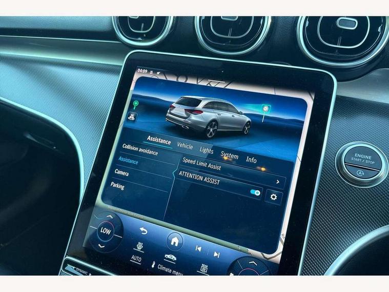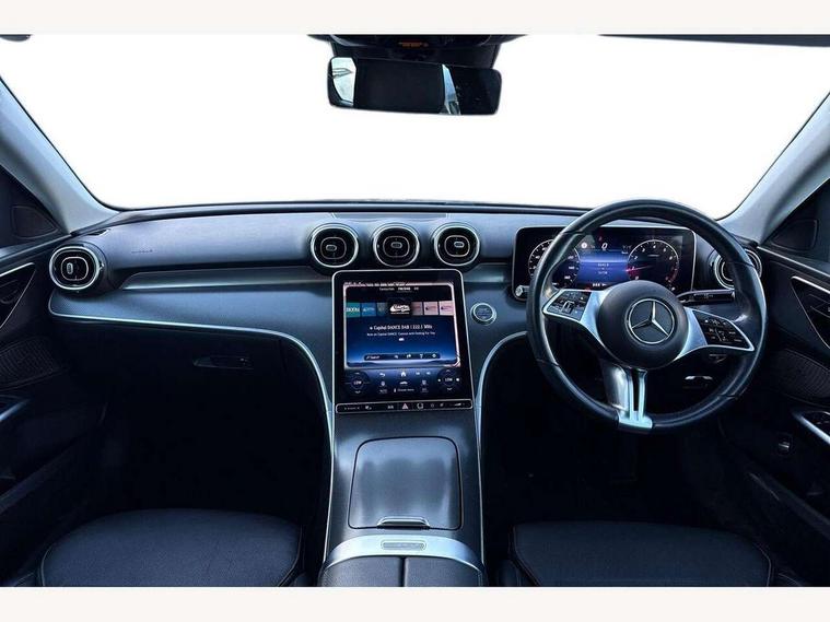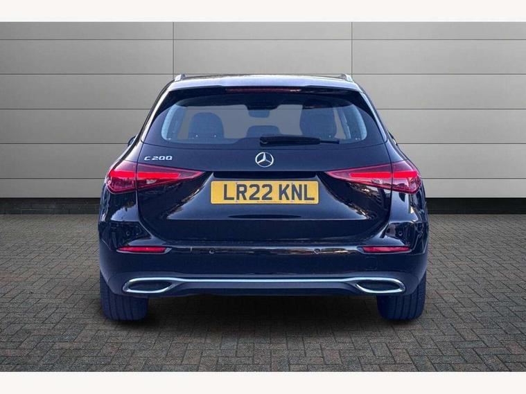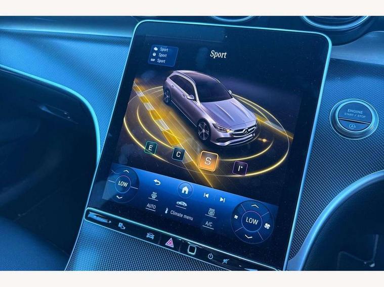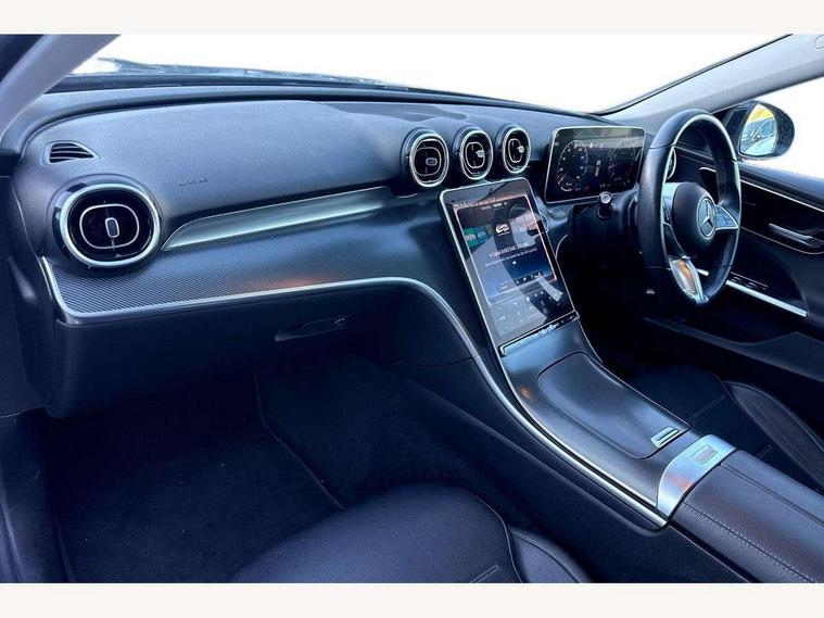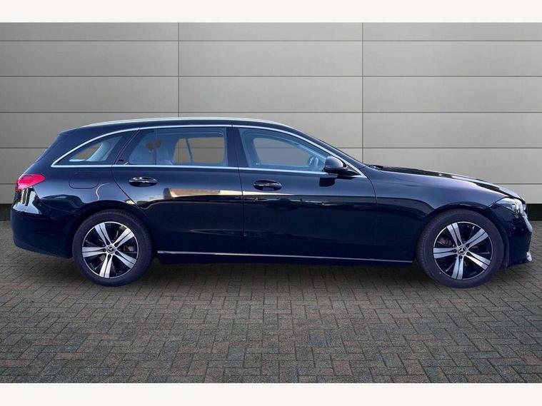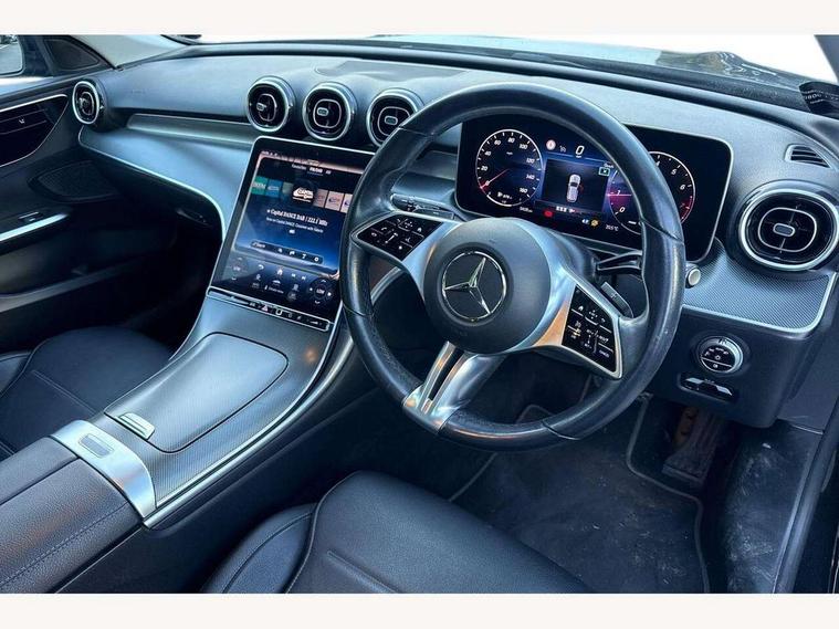 11.9" high resolution multimedia colour display, 12.3" digital instrument cluster display, Active blind spot assist, Active brake assist plus, Active lane keeping assist, Attention assist, Cruise control with speedtronic variable speed limiter, Direct steer speed sensitive steering, DYNAMIC SELECT with a choice of driving modes (ECO, Comfort, Sport, Sport+ and Individual), E-call, Easy pack automatic powered tailgate, Extended MBUX functions, Finger print sensor, Fluorescent jacket for driver, MBUX navigation premium, MBUX voice control activated by keywords "Hey Mercedes", Mercedes connect me, Mercedes me remote services, Outside temperature gauge, Pre-installation for digital key transfer, Remote boot release, Service indicator (ASSYST), Smartphone integration, Status display for rear seat belts in instrument cluster, 66l fuel tank with increased capacity, 9G TRONIC 9 speed automatic transmission, Agility control comfort suspension with selective damping system and lowered by 15mm, Petrol Particulate Filter, DAB Digital radio, MBUX multimedia system, Multifunction steering wheel with audio and onboard settings control, Adaptive brake lights, Adaptive high beam assist, B-pillar trim in glossy black, Body coloured bumpers, Body coloured door mirrors, Chrome beltline trim, Chrome roof rails, Daytime running lights, Dynamic design front bumper with chrome trims and air intakes in black, Electric windows with one touch opening/closing and obstruction sensors, Electrically adjustable and heated door mirrors, Green tinted glass, LED high performance headlamps, LED Indicators, LED tail lights, LED third brake light, Non visible exhaust pipes, Powerdomes on bonnet, Radiator grille with integrated star and single louvre in matt iridium silver with chrome trim, Radio aerial integrated into rear window, Rain sensor with automatic windscreen wiper activation, Rear bumper in vehicle colour with chrome wing in centre, Rear side wing doors, Rear wiper, Side skirts in vehicle colour, Side windows surround in polished aluminium, 3 spoke leather multi function steering wheel with silver chrome trim and perforated leather in grip area, 40:20:40 split folding rear bench seat, Auto Mercedes-Benz child seat recognition sensor, Black air vents with silver chrome elements, Black floor mats, Black roof liner, Door trim elements high gloss black with silver chrome surroundings and switches, Double cupholder in centre console, Folding rear seat backrest, Front and rear head restraints, Front centre armrest with storage compartment, Front door sills with Mercedes Benz lettering, Gearshift paddles on steering wheel, Heated front seats, Illuminated glove compartment stowage, Leather upholstery, Load compartment cover, Manually height and reach adjustable steering column, Overhead control unit in high gloss black, Rear top tether child seat ISOFIX attachment, Single front passenger seat, Sunvisors with illuminated vanity mirrors, THERMATIC 2 zone automatic climate control, Interior lighting package - C Class, Mirror pack - C Class, Parking package with reversing camera - C Class, Seat comfort pack - C Class, Stowage space pack - C Class, USB package - C Class, 3 rear 3 point seatbelts, Active bonnet pedestrian safety measure which detects an impact and raises bonnet, Adaptive brake system with HOLD function and brake drying in the wet, Anti-lock braking system (ABS), Black seat belts, Child proof door locks, Drivers knee airbag, Drivers pelvis airbag, Dual stage driver/passenger airbags, Electric parking brake, Electronic Stability Programme (ESP), Front centre airbag between driver and front passenger seats, Front side airbags, Rear passenger airbag, Rear seatbelt warning indicator, Tyre pressure monitoring system, Warning triangle and first aid kit, Window airbags, Central locking with interior switch, automatic locking and crash sensor with emergency opening function, Chrome surround electric key, Urban guard vehicle protection - Thatcham Category 1 consisting of breakin, anti-theft alarm system (ATA), interior monitoring and tow away protection, Centre console trim in silver grey diamond pattern, Dashboard in black with contrast stitching, 17" 5 spoke design alloy wheels painted in black with high sheen finish, Summer tyres, TIREFIT with tyre inflation compressor,