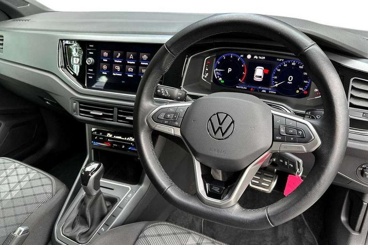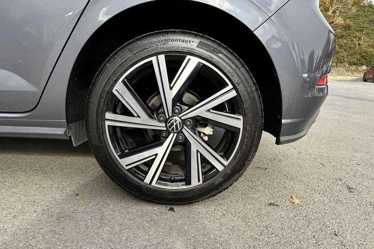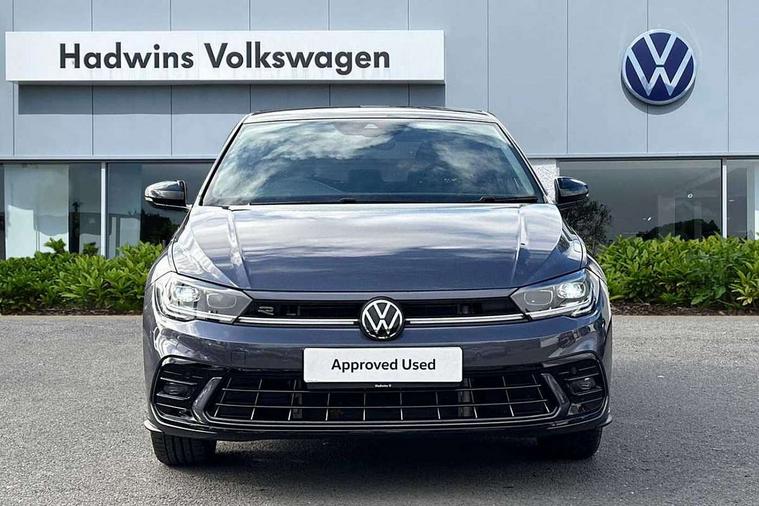 Adaptive cruise control with follow-to-stop and speed limiter, Advanced driver attention and drowsiness monitor, Bluetooth mobile phone interface, Digital Cockpit Pro with 10.25" Display, Dynamic road sign display, Emergency call service, Multifunction camera, Power assisted speed sensitive steering, Preparation for We connect and We connect plus, Speedo and rev counter, electronic odometer, trip, service interval display and fuel gauge, Standard rear axle, Travel Assist - Lane keeping system and traffic jam assist, Travel assist including emergency assist, Trip computer, Warning signal and warning light for front and rear seatbelts not fastened, Washer fluid level indicator, Wireless app connect, Front wheel drive, Rear shock absorpion, Start-stop system with battery regeneration (recuperation - energy recovery during braking), DAB Digital radio, Diversity antenna for FM reception, Front and rear 6 speakers, Body colour bumpers, Body colour door handles, Electric front windows, Front scuff plates with Black edition logo, Heat insulating glass windscreen, Power folding adjustable/heated exterior mirrors and front passenger exterior mirror lowering function, Rear electric windows, Rear fog light, Rear side wing doors, Rear windscreen washer and wiper with interval delay, Third brake light, 12V power socket in centre console, 2 USB-C ports in the front, 2 USB-C charging sockets on the center console in the rear, 3 rear head restraints, 60/40 split folding rear seat and rear seat bench not split, Air care climatronic air conditoning system with active combination filter and 2-zone temperature control, Black roof lining, Carpet mats, front and rear, Chrome plated radiator grille inserts, air vent surrounds and light switch surrounds, Door and side trim panel, Driver and front passenger seat height adjustment, Driver/passenger sunvisors with illuminated vanity mirrors, Front centre armrest, Front footwell illumination, Front seat backrest storage pockets, Front sports comfort seats, Handbrake lever handle in leather, Headliner in recycled material, Heated front seats, Isofix child seat preparation easy-fit (for two outer rear seats, and front passenger seat) compatible with I-size, Karoso artvelours cloth upholstery, Leather trimmed gear knob, LED interior light with switch off delay and dimmer, 2 reading lights front and rear, Luggage compartment cover, Luggage compartment floor, Luggage compartment lighting, Lumbar adjustment for front seats, Single front passenger seat, Stainless steel pedals, Standard pedal cluster, Three spoke leather wrapped multifunction steering wheel with shifting paddles, Black roof pack - Polo, IQ LED matrix headlights pack - Polo, Light and sight pack - Polo R-Line/Black Edition, 3 point height adj front seatbelts + pretensioners, 3x3 point rear seatbelts, ABS, Driver and front passenger airbag with front passenger airbag deactivation, Drivers and front passengers safety optimised head restraints, ESC (Electronic stability control) + EDL (Electronic Differntial lock) and ASR (Traction control), Extended and predictive pedestrian/ cyclist protection, Front curtain and side airbags with center airbag, Front/rear disc brakes, Hill hold control, Manual child lock in rear doors, Single tone horn, Tyre pressure loss indicator, Alarm with interior protection, Anti-theft alarm system with interior monitoring, backup horn, and towing protection, Anti-theft wheel bolts, Electronic engine immobiliser, Black dashboard, Chrome applications on rotary light, mirror adjustment, window regulator switches, outlet with frame in black, Dark grey anodised matt decorative inserts in dash and front door panels, 17" York alloy wheels, Low rolling resistance tyres,