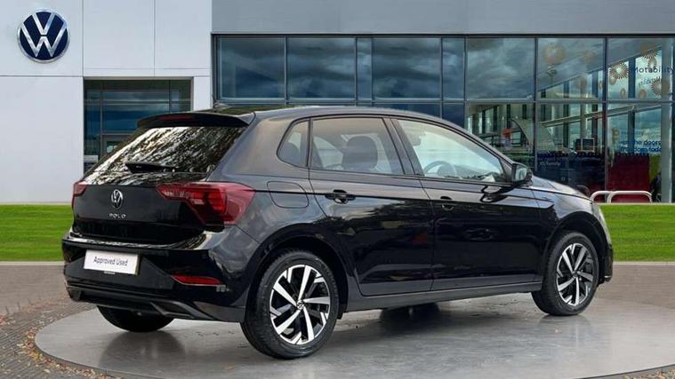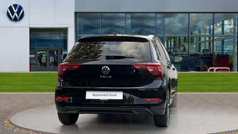 Advanced driver attention and drowsiness monitor, Bluetooth mobile phone interface, Dynamic road sign display, Emergency call service, Multifunction front facing camera for distance control, Park distance control, Power assisted speed sensitive steering, Predictive adaptive cruise control without follow-to-stop and speed limiter, Preparation for navigation system with media and internet package, Preparation for We connect and We connect plus, Rear view camera, Speedo and rev counter, electronic odometer, trip, service interval display and exterior temperature gauge, Standard rear axle, Travel Assist - Lane keeping system and traffic jam assist, Travel assist including emergency assist, Trip computer, Warning signal and warning light for front and rear seatbelts not fastened, Washer fluid level indicator, Wireless app connect, Front wheel drive, Rear shock absorpion, Start-stop system with battery regeneration (recuperation - energy recovery during braking), DAB Digital radio, Diversity antenna for FM reception, Front and rear 6 speakers, Automatic dimming interior rear view mirror, Automatic headlight control with LED separate daytime running lights with coming/leaving home function, Body colour bumpers with chrome inserts, Body colour door handles, Body colour door mirrors, Electric front windows, Engine badge deletion, Headlight range adjustment, Heat insulating and laminated safety glass windshield, LED Headlights, LED rear combination lamps, Power folding adjustable/heated exterior mirrors and front passenger exterior mirror lowering function, Rain sensor, Rear electric windows, Rear fog light, Rear side wing doors, Rear tinted glass from B-pillar backwards approx 65% tinted, Rear windscreen washer and wiper with interval delay, Third brake light, 12V power socket in centre console, 2 front and 2 rear reading lights with switch off delay and dimmer, 2 USB-C ports in the front, 2 USB-C charging sockets on the center console in the rear, 3 rear head restraints, 60/40 split folding rear seat and rear seat bench not split, Ceramique roof lining, Chrome plated radiator grille inserts, air vent surrounds and light switch surrounds, Door and side trim panel, Driver and front passenger seat height adjustment, Driver/passenger sunvisors with illuminated vanity mirrors, Front centre armrest, Front seat backrest storage pockets, Front standard seats, Handbrake lever handle in leather, Hartley/Thomas cloth upholstery, Headliner in recycled material, Isofix child seat preparation easy-fit (for two outer rear seats, and front passenger seat) compatible with I-size, Leather trimmed gear knob, Luggage compartment cover, Luggage compartment lighting, Removable luggage compartment floor, Single front passenger seat, Standard climatic zones, Standard pedal cluster, Three spoke leather wrapped multifunction steering wheel with shifting paddles, Light and vision pack - Polo, 3 point height adj front seatbelts + pretensioners, 3 point seat belt for centre rear seat, 3 point seatbelts, outer rear with ECE lable, ABS, Driver and front passenger airbag with front passenger airbag deactivation, Drivers and front passengers safety optimised head restraints, ESC (Electronic stability control) + EDL (Electronic Differntial lock) and ASR (Traction control), Extended and predictive pedestrian/ cyclist protection, Front assist with autonomous emergency braking (for Adaptive Cruise Control ACC up to 130 mph), Front curtain and side airbags with center airbag, Front disc brakes, Hill hold control, Manual child lock in rear doors, Rear drum brakes, Single tone horn, Tyre pressure loss indicator, Alarm with interior protection, Anti-theft alarm system with interior monitoring, backup horn, and towing protection, Anti-theft wheel bolts, Electronic engine immobiliser, Lava stone black gloss/matt decorative inserts in dash and front door panels, 16" Torsby alloy wheels, Low rolling resistance tyres,