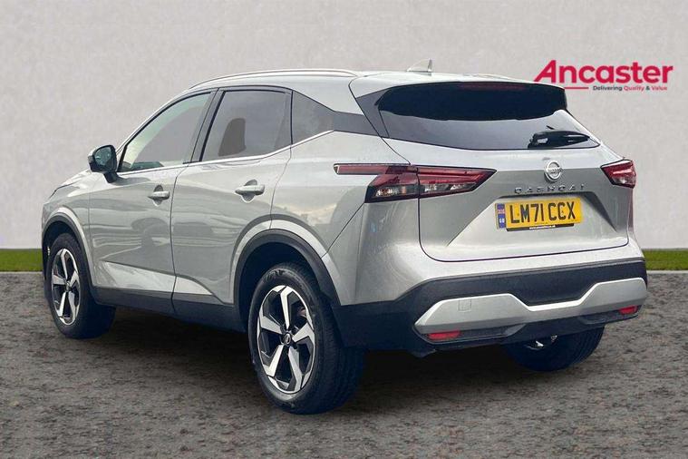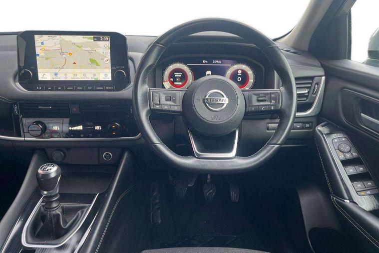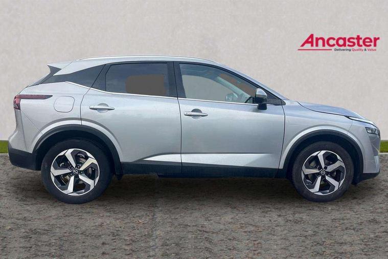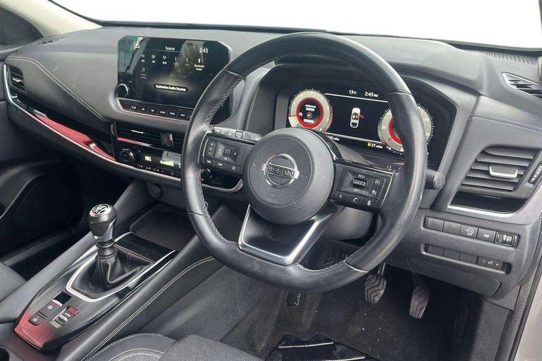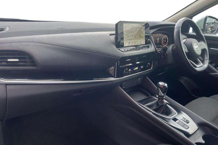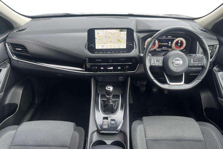 7" High definition full colour TFT screen combimeter, Blind spot warning, Drive modes (sport, normal, eco), Electric speed sensitive power steering, Emergency and breakdown call, Front and rear parking sensors, Idle stop/start system, Intelligent Cruise control (ICC), Intelligent driver alert system, Intelligent forward collision warning, Intelligent lane intervention, Lane departure prevention, Lane departure warning system, Maximum speed limiter, Moving object detection, Push button starter, Rear cross traffic alert, Traffic sign recognition with legal speed adjustment, Trip computer, 6 speakers, AM/FM audio system with DAB, Bluetooth audio streaming, Front USB connections (Type-A and Type-C), Rear USB charging only ports (Type-A and Type-C), Auto dimming rear view mirror, Auto rear wiper when reversing, Body colour mirror caps, Body coloured door handles, Bodyside mouldings, Chrome side window finisher, Electric auto folding door mirrors, Electrically adjustable and heated door mirrors with LED turn indicator, Follow me home headlights, High beam assist, Intelligent auto headlights, LED daytime running lights, LED Headlights, LED rear lights, One touch front and rear electric windows with remote opening and closing, Partially body coloured bumpers, Privacy glass, Rear reversing light (bulb lighting), Rear roof spoiler, Rear styling plate, Shark fin antenna, Splash free rain sensing wipers, Super UV and infrared cut glass, Three blink turn signal, 12v power socket in dashboard and luggage, 2 way electrical driver lumbar adjustment, 2x Rear coat hooks, 3 rear headrests, 4 grab handles, 6 Luggage hooks - 4 on floor, 2 on side, 60/40 split folding rear seat, Ambient lighting around centre console, Centre console storage tray, Chrome interior door handles, Cloth monoform upholstery, Driver and front passenger sunvisors with illuminated vanity mirrors, Driver seat back pocket, Dual zone automatic climate control with pollen filter, Front centre console and armrest, Front cupholder, Front door with bottle holders, Glovebox with light, Hard trunk cover, Height adjustable driver's seat, Height adjustable front headrests, Leather shift knob, Leather steering wheel, Luggage board system, Luggage space lighting, Manually adjustable passenger (slide recline + lifter), Multifunction steering wheel, Passenger seat back pocket, Rear armrest with 2 cupholders, Rear door bottle holders, Soft PVC kneepad, Steering wheel switches, Sunglasses holder, Tilt/telescopic adjustable steering wheel, Two rear isofix child seat anchorage points with top tether, Welcome light and console tray ambient lighting, Connectivity Pack - Qashqai, 3x3 point rear seatbelt pretensioners + load limiters, ABS, ESP, EBD and brake assist, Active brake limited slip, Auto hold function, Child locks on rear doors, Curtain and front side, far side airbags, Driver and passenger airbags, Driver, passenger and 2nd row rear seat belt reminder, Electronic parking brake, Front seatbelt pretensioners + load limiters, Height adjustable front seatbelts, Hill start assist, Intelligent blind spot intervention, Intelligent front emergency braking with pedestrian, cyclist recognition and junction assist, Intelligent rear automatic braking, Tyre pressure monitoring system, Vehicle dynamic control, Capless fuel filler, Engine immobiliser, Nissan i-key, Remote central door locking with deadlocking, Thatcham Cat.1 alarm, 18" Diamond cut alloy wheels,