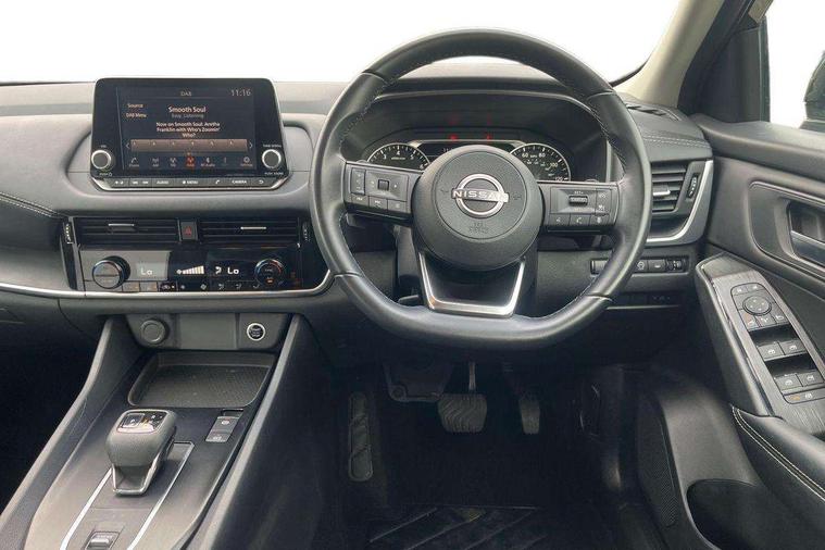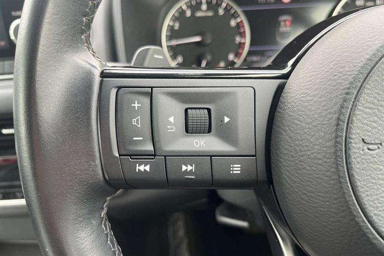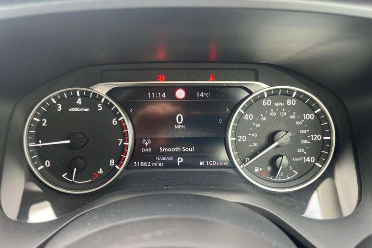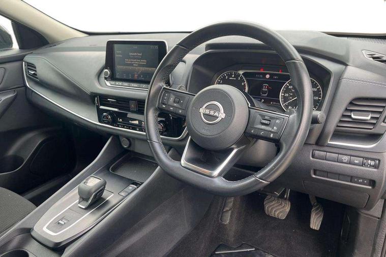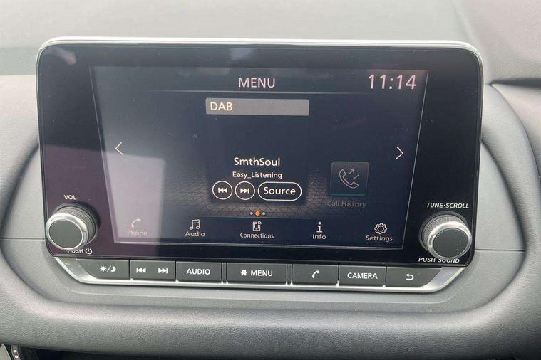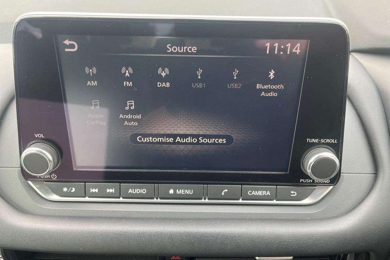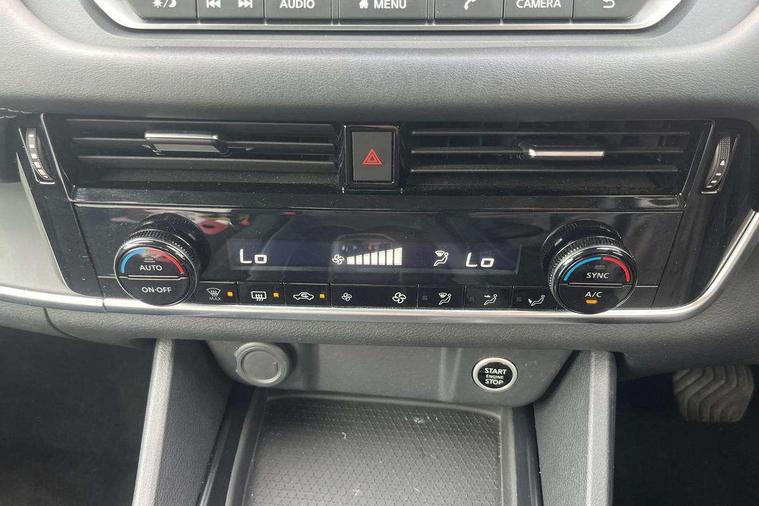 7" High definition full colour TFT screen combimeter, Android auto/Apple CarPlay (Wired), Blind spot warning, Drive modes (sport, normal, eco), Electric speed sensitive power steering, Emergency and breakdown call, Idle stop/start system, Intelligent Cruise control (ICC), Intelligent driver alert system, Intelligent forward collision warning, Intelligent lane intervention, Lane departure prevention, Lane departure warning system, Maximum speed limiter, Nissan connect 8" touchscreen infotainment system, Push button starter, Rear cross traffic alert, Rear parking sensors, Rear view camera, Traffic sign recognition with legal speed adjustment, Trip computer, 6 speakers, AM/FM audio system with DAB, Bluetooth audio streaming, Front USB connections (Type-A and Type-C), Auto dimming rear view mirror, Auto rear wiper when reversing, Automatic hazard signal with emergency stop signal, Body colour mirror caps, Body coloured door handles, Bodyside mouldings, Chrome side window finisher, Door handle with button, Electric auto folding door mirrors, Electrically adjustable and heated door mirrors with LED turn indicator, Follow me home headlights, High beam assist, Intelligent auto headlights, LED daytime running lights, LED Headlights, LED rear lights, One touch front and rear electric windows with remote opening and closing, Partially body coloured bumpers, Rear reversing light (bulb lighting), Rear roof spoiler, Rear side wing doors, Shark fin antenna, Splash free rain sensing wipers, Three blink turn signal, 12v power socket in dashboard and luggage, 2x Rear coat hooks, 3 bench rear seats in 2nd row, 3 rear headrests, 4 folding assist grip, 6-way manually adjustable driver's seat, 60/40 split folding rear seat bench, Centre console storage tray, Chrome interior door handles, Cloth monoform upholstery, Driver and front passenger sunvisors with illuminated vanity mirrors, Driver seat back pocket, Dual zone automatic climate control with pollen filter, Electrically adjustable lumbar support for driver, Front and rear door storage, Front centre console and armrest, Front cupholders x 2, Front door with bottle holders, Glovebox with light, Hard trunk cover, Height adjustable driver's seat, Height adjustable front headrests, Height adjustable passenger seat, Leather steering wheel, Luggage space lighting, Manually adjustable passenger (slide recline + lifter), Multifunction steering wheel, Passenger seat back pocket, Rear armrest with 2 cupholders, Rear door bottle holders, Single front passenger seat, Steering wheel gearshift paddles, Steering wheel switches, Sunglasses holder, Tilt/telescopic adjustable steering wheel, Two rear isofix child seat anchorage points with top tether, 3x3 point rear seatbelt pretensioners + load limiters, ABS with EBD and brake assist, Active brake limited slip, Auto hold function, Child locks on rear doors, Curtain and front side, far side airbags, Driver and passenger airbags, Driver, passenger and 2nd row rear seat belt reminder, Electronic parking brake, Front seatbelt pretensioners + load limiters, Height adjustable front seatbelts, Hill start assist, Intelligent blind spot intervention, Intelligent front emergency braking with pedestrian, cyclist recognition and junction assist, Intelligent rear automatic braking, Tyre pressure monitoring system, Vehicle dynamic control, Capless fuel filler, Engine immobiliser, Intelligent Key, Remote central door locking with deadlocking, Thatcham Cat.1 alarm, Interior instrumental panel A finisher, 17" Alloy wheels, Tyre puncture repair kit,