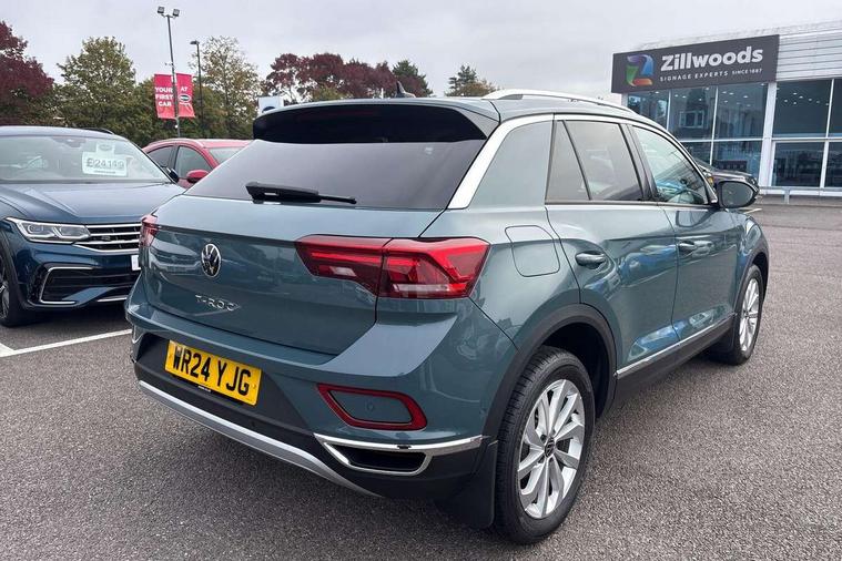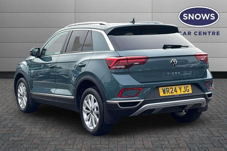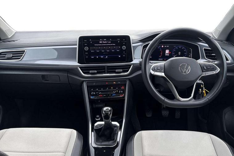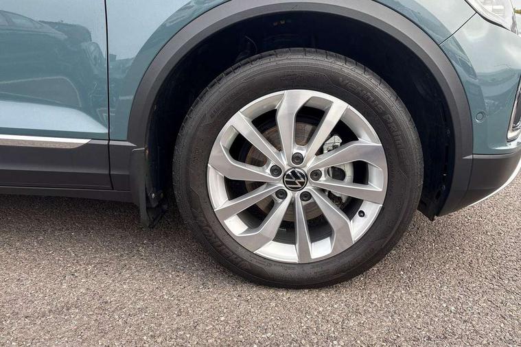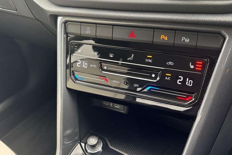 10.25" Digital cockpit pro, Bluetooth mobile phone interface, Driver alert system with fatigue detection, Driver tips and journey analysis, Dynamic road sign display, Emergency call service, Lane keeping system Lane Assist, Modified key software - reduce switch off time for key status change to Long no motion, Online services, Park assist including front and rear parking sensors, Power assisted speed sensitive steering, Service interval indicator, Tailgate/trunk lid release from outside, Think blue trainer driver tips and journey analysis, Warning sound and light for front seatbelts unfastened, Wireless app connect, Battery regeneration during braking, Front shock absorption, Rear shock absorption chassis with increased ride height, Start/stop function with battery regeneration, Diversity antenna for FM reception, Music playback - MP3, WMA and AAC files, Premium USB cable in choice of either Apple or Android smartphone compatibility, SD card slot, Simultaneous pairing of 2 compatible mobile devices, Title and cover art display, We Connect and We Connect Plus functionality, 3rd brake light, Auto dimming interior rear view mirror, Automatic hazard lights activation under emergency braking, Automatic headlight control with LED separate daytime running lights with coming/leaving home function, Body colour sports bumpers with silver metallic underbody fascia, Dynamic headlight range control with self adjusting whilst driving, Extended roof spoiler, Exterior mirrors aspherical on driver side, convex on front passenger side, External USB type C socket and charging sockets, Front windscreen wiper with intermittent wipe and 4 position delay, Heated rear window, LED rear combination lamps, LED rear number plate lights, LED tail lamp rear comination lamps, Light mode for poor weather, rain, fog or snow, Power windows with comfort operation and circuit breaker, Rain sensor, Rear exhaust tailpipe, Rear fog light on one side and reversing lights on both sides, Rear side wing doors, Rear wash/wipe with intermittent wipe setting, Remote electrically foldable door mirrors, puddle lights and reverse activated passenger's door mirror, 12V power socket in centre console, 3 rear head restraints, 3 seat bench in 2nd row, 4 load lashing points in luggage compartment, Air care climatronic air conditoning system with active combination filter and 2-zone temperature control, Chrome plated radiator grille inserts, air vent surrounds and light switch surrounds, Door and side trim panel with leatherette insert, Drawer under drivers seat, Front + rear carpet mats, Front centre armrest, Front comfort sports seats, Front cupholders x 2, Front footwell illumination, Instrument lighting, white adjustable panel illumination, Interior ambient lighting and surround lighting, Interior light delay, Isofix child seat preparation, Leather gearshift handle, LED interior light with switch off delay/dimmer and 2 front/rear LED reading lights, Load-through provision with cup holder when folded down ('Unsplit rear seat bench, split folding backrest, with centre armrest), Luggage compartment lighting, Non-folding front passenger seat backrest, Single front passenger seat, Storage compartment in left and right luggage area, Storage compartment in rear doors, Storage compartments in driver and front passenger doors, Sunvisors with illuminated vanity mirrors, Variable boot floor, height adjustable and removable, Driver assistance pack without proactive passenger protection - T-Roc, 3 point height adj front seatbelts + pretensioners, 3 point seatbelts in outer rear with ECE label, ABS, Child locks on rear doors, Driver and front passenger airbag with front passenger airbag deactivation, Driver and front passenger safety-optimised head restraints, Drivers seatbelt reminder, Electronic parking brake, Electronic Stability Control (ESC) inc EDL (Electronic Differential Lock) and ASR (Traction Control), Front and rear passengers curtain airbag system including front side airbags, Front assist with city emergency braking and pedestrian monitoring, Front disc brakes, Front seat side impact airbags, Predictive pedestrian protection, Rear disc brakes, Single tone horn, Tyre pressure loss indicator, Volkswagen roadside assistance, Anti-theft alarm system with interior monitoring, backup horn, and towing protection, Remote central locking with SAFELOCK, radio remote control with 2 remote control folding keys, Trims for alloy wheels,