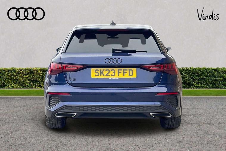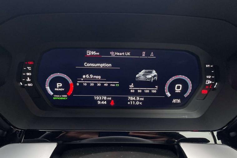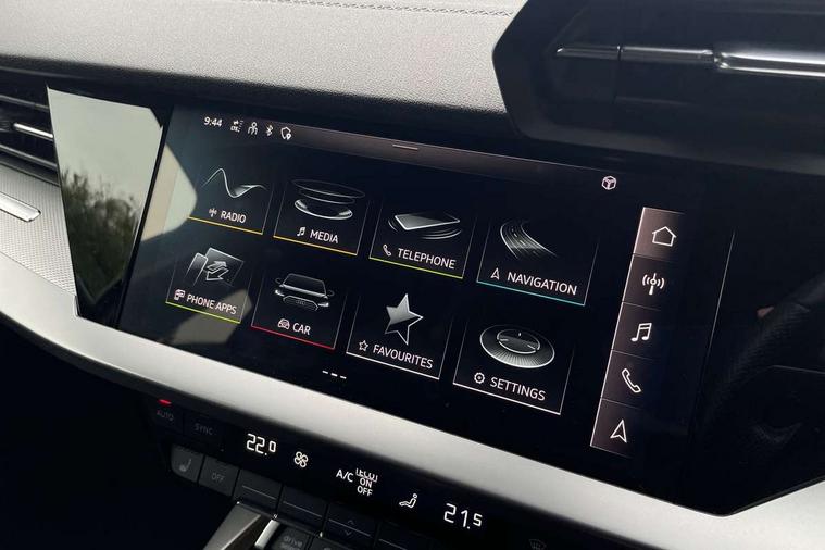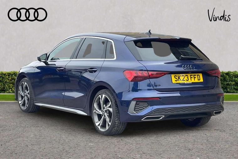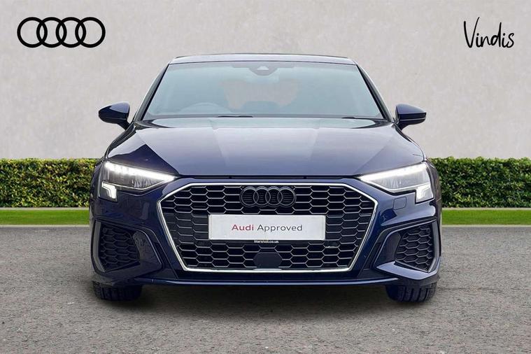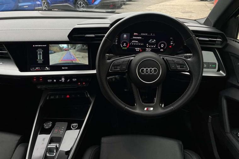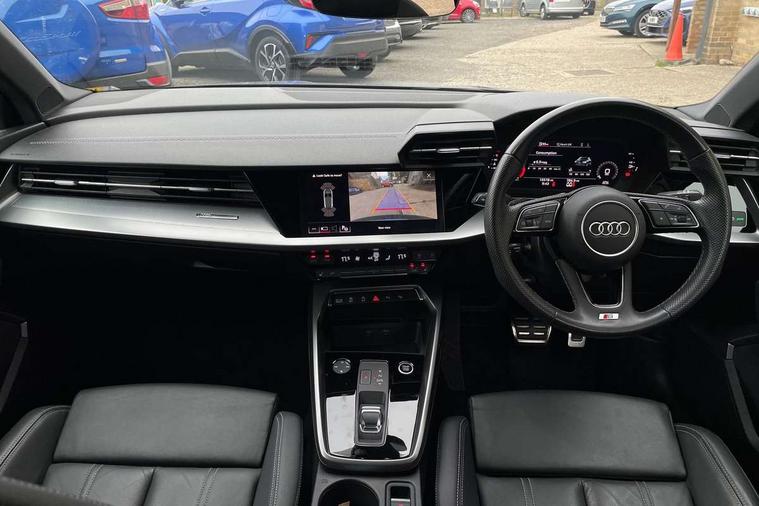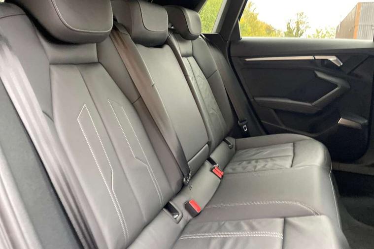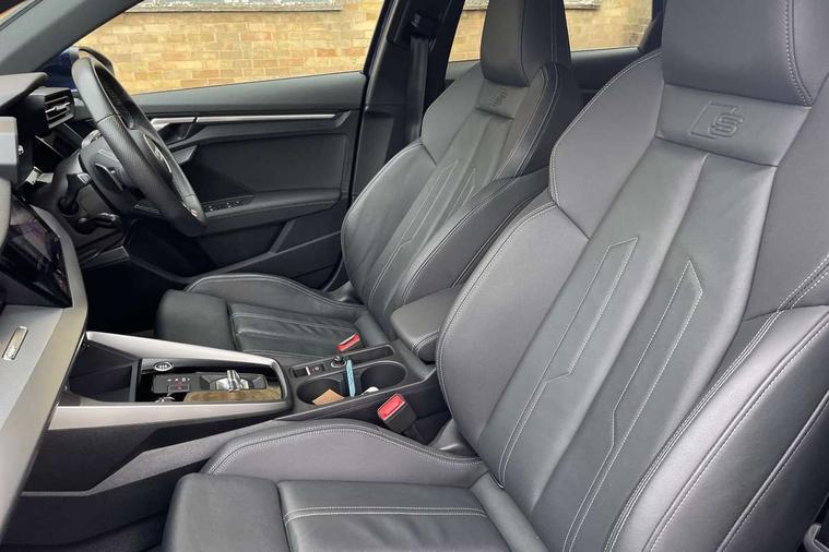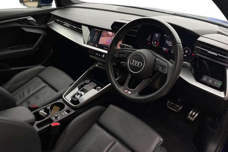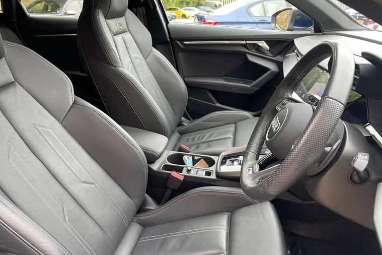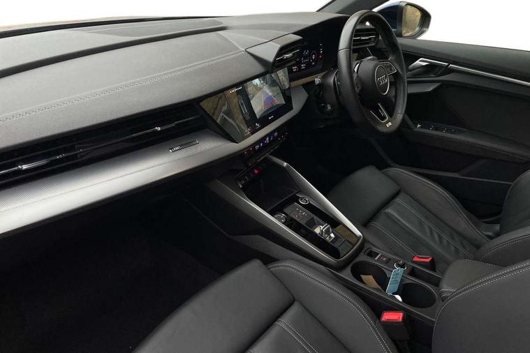 Audi drive select (Auto, Comfort, Dynamic, Efficiency and Individual), Audi smartphone interface, Audi Virtual Cockpit - 10.25" digital and colour instrument cluster, Automatic start/stop system with recuperation, Bluetooth interface, Collision avoidance assistant, e-Call (emergency call), Electromechanical power speed sensitive steering, Lane departure warning system, MMI Navigation Plus with high resolution 10.1" colour touch screen display, Service indicator, Trip computer, Voice control system with natural language interaction, Sports suspension, 2xUSB-C connection with data and charging functions, 6 passive loudspeakers, DAB Digital radio, 3rd brake light, Acoustic glass windscreen, Aluminium window trim, Auto dimming frameless rear view mirror, Body colour exterior mirrors, Electrically adjustable/heated/folding/dimming door mirrors with kerb view includes integrated LED indications + kerb view function for passenger side, Front electric windows, Illuminated aluminium inserts front door sills with S logo, LED daytime running lights, LED headlights with LED rear lights and dynamic rear indicators, Light and rain sensors, Privacy glass - dark tinted rear window, rear door and side windows, Rear electric windows, Rear side air outlets in grained matt black, Rear side wing doors, Rear wiper, S line bumpers, S roof spoiler, 12V socket and storage compartment in front centre console, 3 seat bench in 2nd row, 3 spoke leather multifunction steering wheel with paddle shift, 40/20/40 split folding rear seat bench with cupholder, Black cloth headlining, Dual zone electronic climate control, Front and rear centre armrest in leather, Front and rear headrests, Front/rear floor mats, Height and reach adjustable steering wheel, Illuminated vanity mirror, Interior lighting - glove compartment light and right hand side, Luggage compartment floor covering, Manual boot compartment lid, Manually adjustable front seats, Seat side bolsters, Single front passenger seat, Stainless steel pedals and front footrest in black, Twin leather upholstery with front sports seats S embossed logo, Aluminium interior elements pack - A3 Sportback, LED interior lighting pack - A3 Sportback, S line styling pack - A3 Sportback, 3x3 point rear seat belts, Audi pre sense front, Driver and front passenger airbag with passenger airbag deactivation, Electronic Stabilisation Control (ESC) including ABS, ASR and EDL, First aid kit with warning triangle and 2 safety vests, Front side airbags with head airbags and interaction airbag, Pre-sense front with pedestrian and cyclist detection, Seatbelt monitoring, Tyre pressure loss indicator, Anti theft alarm, Anti-theft wheel bolts, Electronically operated child lock, Immobiliser, Remote control central locking, Accent surfaces in the dashboard and centre console in platinum grey silk effect paint finish, Dark spectrum aluminium inlays,